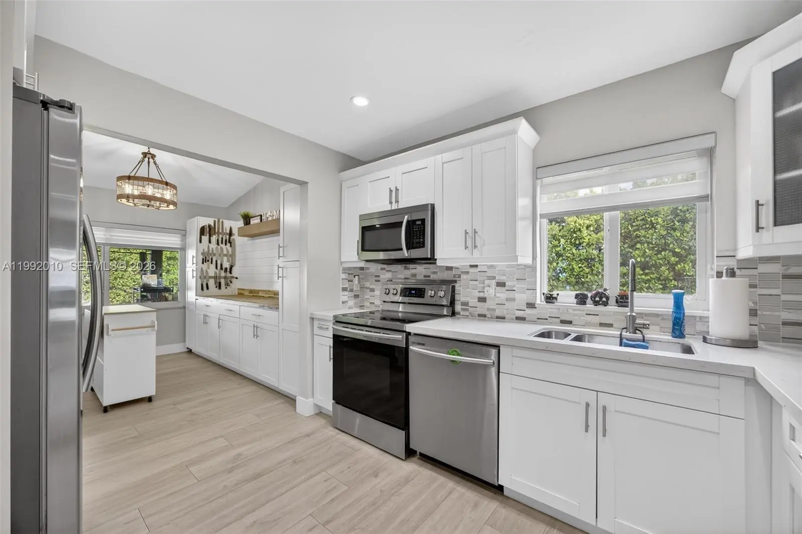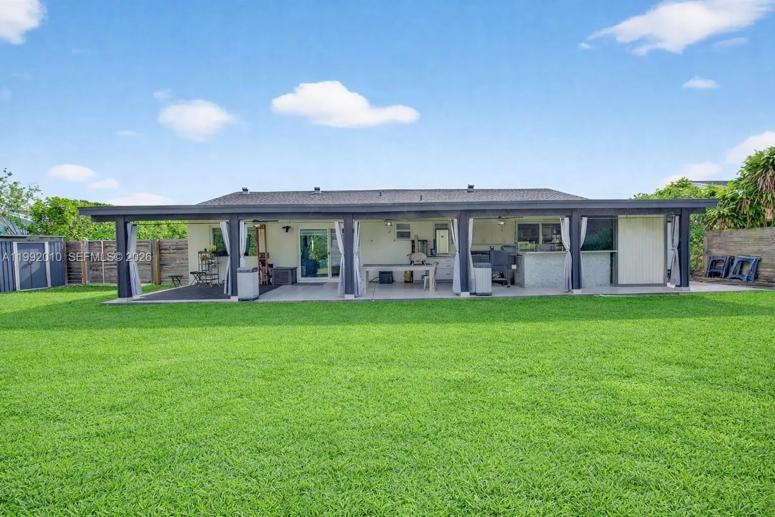 Welcome to this beautifully renovated home in the highly sought-after Bent Tree neighborhood of Kendall! Thoughtfully updated from top to bottom, no detail has been overlooked. Recent improvements include new flooring, exterior paint, new A/C, impact windows and doors, zebra blinds, along with a stunning modern kitchen, with chefs pantry, and 2 fully updated & spacious bathrooms. Step inside to an open and airy layout filled with natural light and serene backyard views from the moment you enter. The home features a formal living and dining area just off the kitchen—perfect for entertaining—plus an additional den/family room for added flexibility. Offering 3 spacious bedrooms plus a versatile extra room ideal for a 4th room, office/den, or guest room- this home is designed to fit a variety of lifestyles! The backyard is truly an entertainer’s dream, featuring a large covered terrace, outdoor kitchen and bar area, ample space for a pool, and two storage sheds for added convenience, huge lot over 9000 SqFt. This move-in ready gem checks every box—don’t miss your opportunity to make it yours!