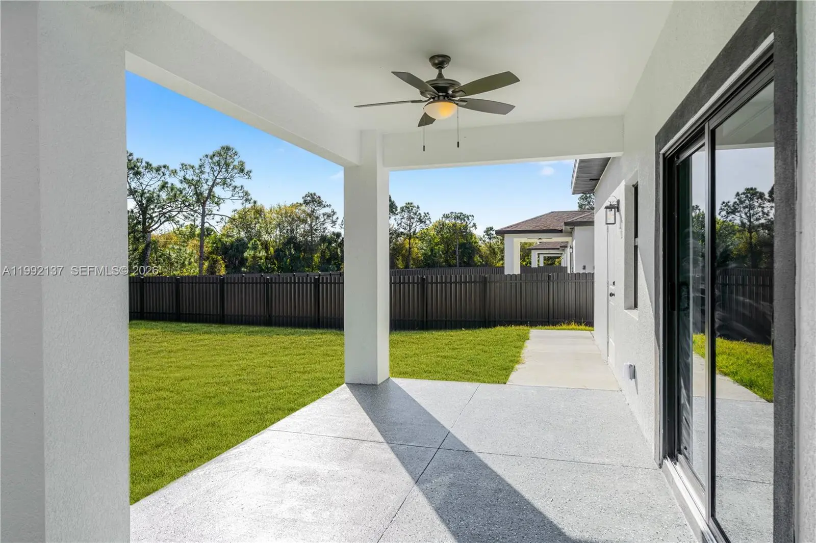 Affordable new construction with closing cost assistance! This elegant home offers 3 bedrooms and 3 bathrooms, featuring a spacious, fully fenced backyard—perfect for privacy and outdoor enjoyment. Enjoy a modern kitchen with high-end finishes and beautifully designed bathrooms that add a touch of luxury throughout the home. The property includes impact-resistant windows and doors for added safety and energy efficiency. Relax or entertain in the covered lanai, ideal for enjoying Florida living year-round. Conveniently located with easy access to SR-82, just minutes from Fort Myers, shopping centers, and schools.