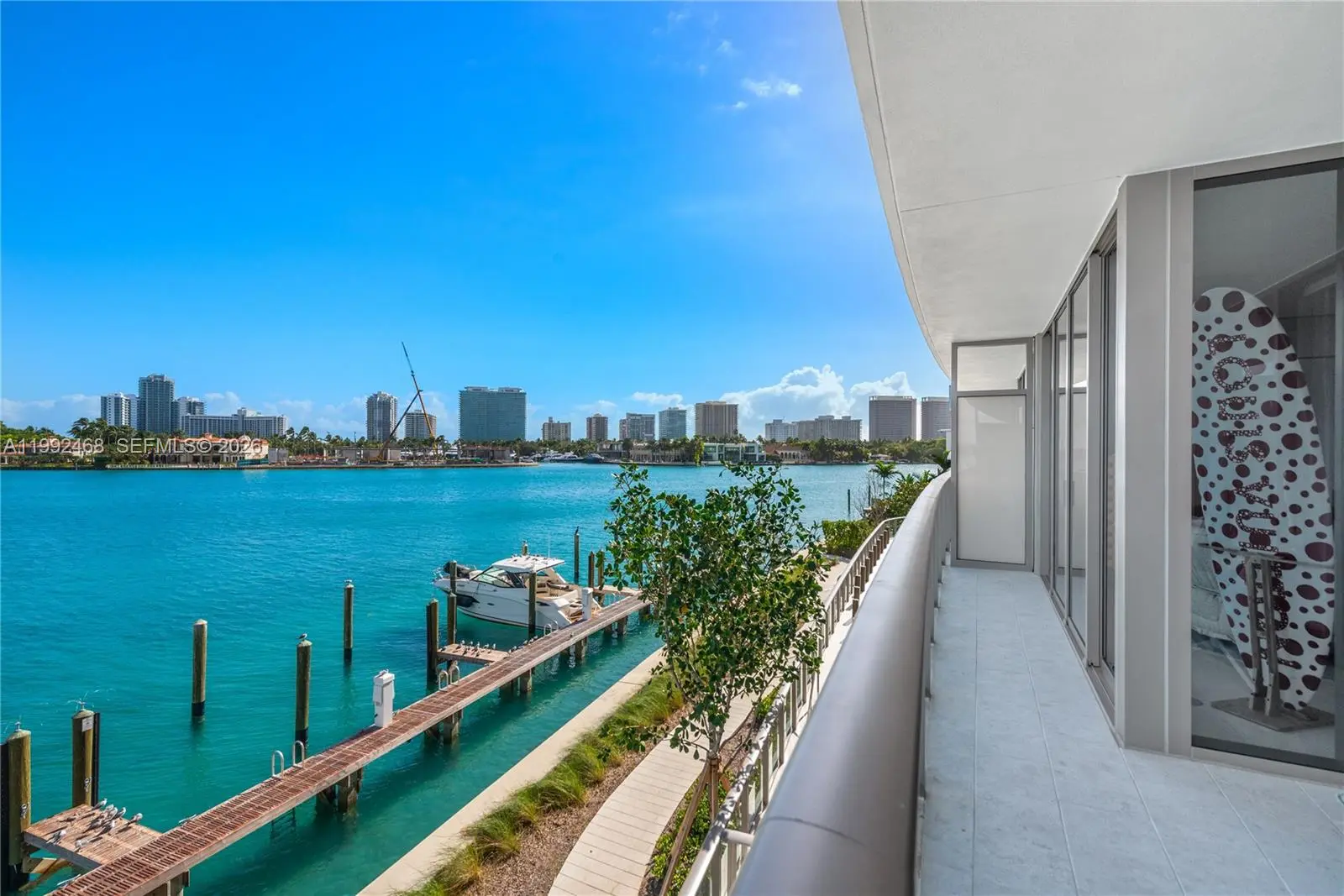 Exceptional fully upgraded and furnished waterfront residence, masterfully curated by a world-class designer. This sophisticated 3-bedroom layout features a stunning primary suite facing the bay, complete with a private terrace that captures serene water views. The second and third bedrooms open onto an expansive, one-of-a-kind terrace of over 300 sq ft, seamlessly blending indoor and outdoor living. A versatile studio/library and TV room add both functionality and refined comfort. Equipped with a spacious fully-equipped laundry room. Every detail has been thoughtfully designed, showcasing iconic interiors, top-of-the-line appliances, and high-end European bathrooms. The primary bathroom offers a spa-like experience with a generous soaking tub and separate glass-enclosed shower. Spacious walk-in closets and custom lighting fixtures further enhance the residence’s elevated aesthetic. Located within a brand-new boutique tower by renowned developer Ugo Colombo, the building reflects impeccable construction quality and timeless design. Residents enjoy a curated selection of luxury amenities, including a rooftop pool with breathtaking bay views, private marina, full-service spa and wellness center, concierge, and valet parking. The highest luxury condominium in the area. Ideally positioned in the quiet, safe, and exclusive enclave of Bay Harbor Islands, just moments from Bal Harbour Shops and the beach. Private marina slip available at an additional cost.