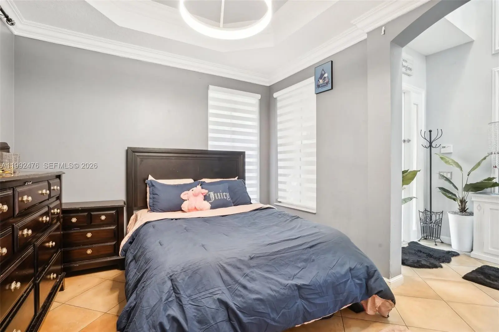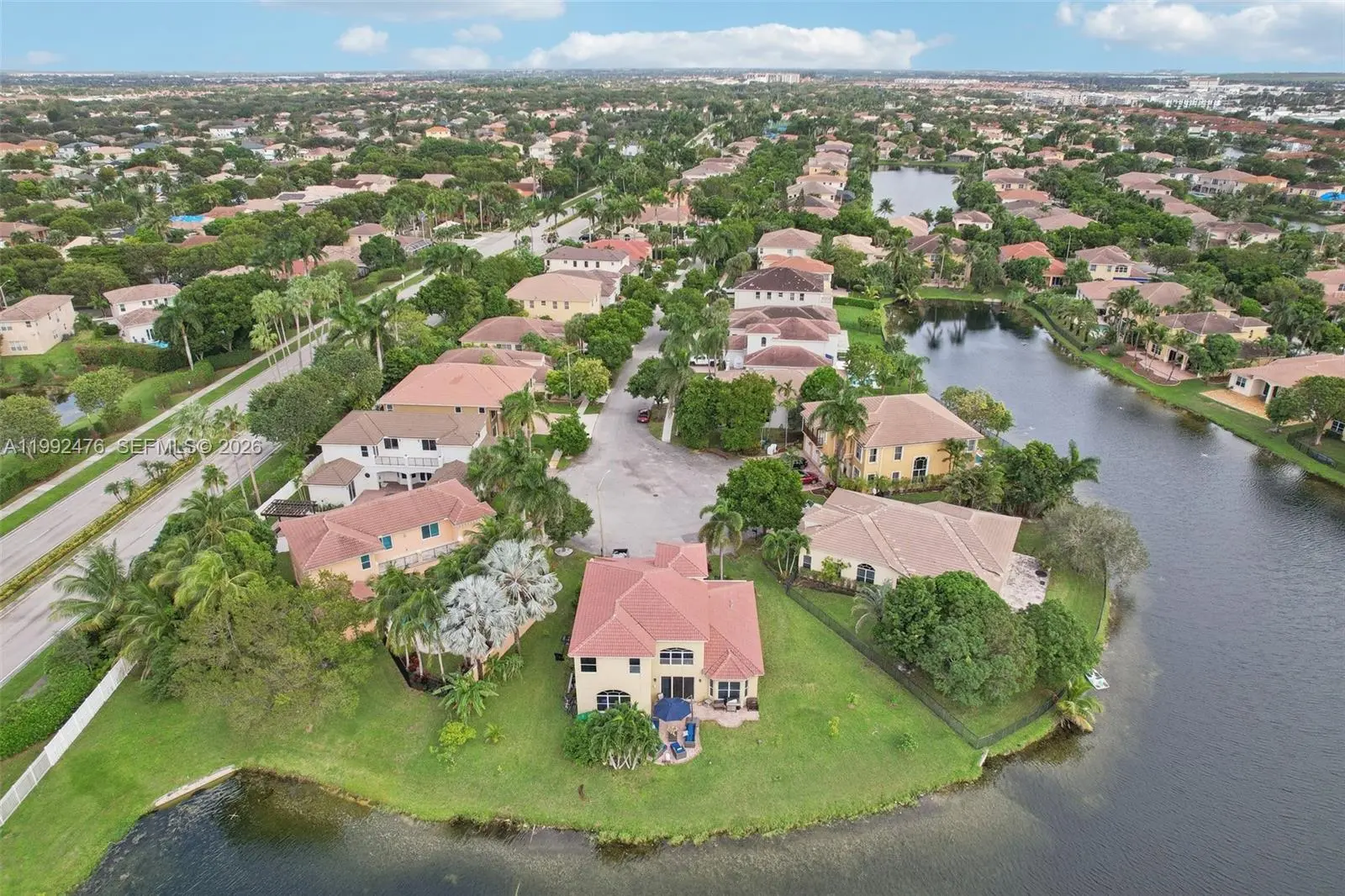 Experience luxury waterfront living in this exceptional two-story residence located in the highly sought after Biltmore Estates. Originally designed as a model home by Lowell Homes, this impressive 4-bedroom, 3.5-bath property showcases elegance and thoughtful design throughout. The spacious open floor plan is enhanced by soaring ceilings, crown molding, custom built-ins, a stylish wet bar, and a formal banquet area perfect for entertaining. The property features formal living and dining areas in addition to a huge family room and office. The expansive eat-in kitchen offers ample space for cooking and gathering, with custom cabinetry, gold granite countertops & new high end appliances. The Large first-floor primary suite provides a private retreat with dual vanities, a soaking tub, and a separate walk-in shower. Upstairs, a second primary suite features its own balcony, In addition there are another 2 large bedrooms adding flexibility and comfort for guests or extended family. Situated on an oversized cul-de-sac lot, the home offers breathtaking lake views from the backyard, creating a serene outdoor setting. Additional highlights include a two-car garage, separate laundry room and low HOA fees. Residents enjoy access to resort-style amenities such as a pool, tennis courts, fitness center, and playground. Conveniently located near top-rated schools, shopping, dining, and major highways, this home perfectly combines luxury, comfort and convenience in a Top gated Community.