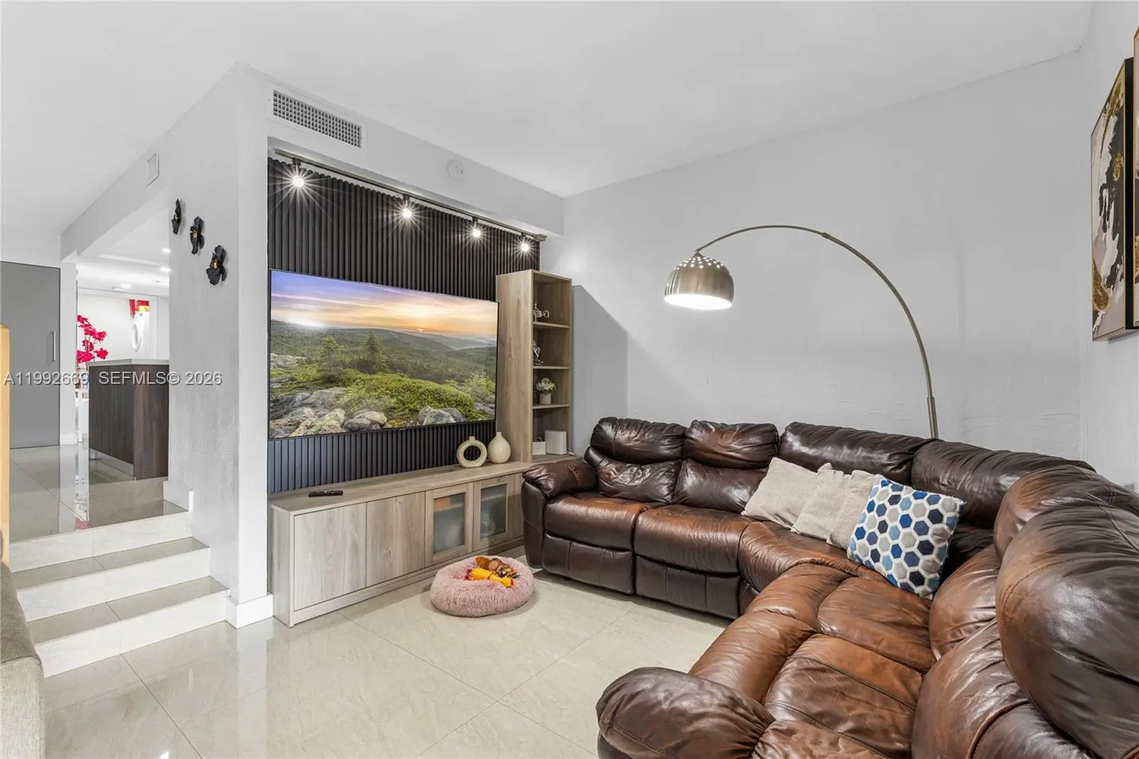Beautiful & cozy corner townhouse with stunning lake views, offering just over 1600 sqft of thoughtfully designed living space. This spacious home features 4 bedrooms & 2.5 bathrooms, including a convenient 1st floor bedroom, ideal for guests or multi-generational living. The primary suite boasts a private balcony, filling the room with natural light & fresh air while showcasing serene lake views. Enjoy an open- concept layout with a unique step-down design separating the dining & living areas, seamlessly connecting to a covered, screened patio with its own outdoor kitchen, perfect for entertaining or relaxing at home. The entire unit features ceramic tile flooring, adding durability & elegance throughout. The modern kitchen includes custom cabinetry, quartz, countertops, & stainless steel appliances. Bathrooms & laundry areas also feature custom cabinetry & quartz surfaces, adding a touch of elegance throughout. The staircase is finished with laminated wood, adding warmth and contemporary style. Roof & A/C are practically new, offering peace of mind to the future owner. This exceptional townhouse creates a truly special atmosphere to call home and build lasting memories for year to come.