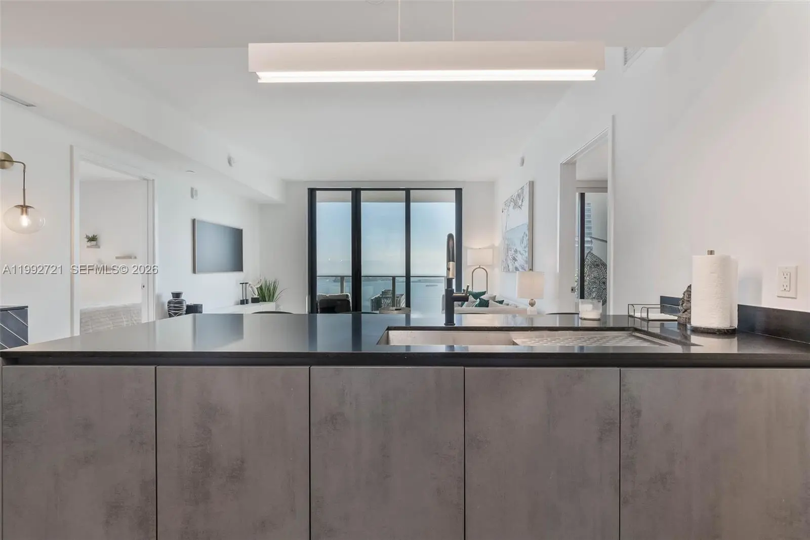 SPECTACULAR WATER AND CITY VIEWS from this turnkey luxury unit in the coveted "03" line, at 1010 Brickell Condo. Enter through your PRIVATE ELEVATOR into this 43rd floor move-in ready spacious condo, with designer and high-end neutral furnishings, and upgraded wood porcelain floors. Split floorplan layout with 2 Bedrooms and 3 Bathrooms + Den. Den has desk for office space, and a couch that doubles as a full-sized bed. Features include top-of-the-line appliances, including washer/dryer, 3 TVs, fully-equipped kitchen, blackout shades, and more. Bring only your toothbrush! 1010 Brickell is centrally located and has every amenity imaginable, including indoor and outdoor pool, spa (cold dip/hot tub/sauna), arcade, running track, squash court and basketball court. SHORT TERM OK - Please inquire for short term pricing. Available June 1 through November 1. Tenant occupied - need 24 hour notice. Showings start April 9.