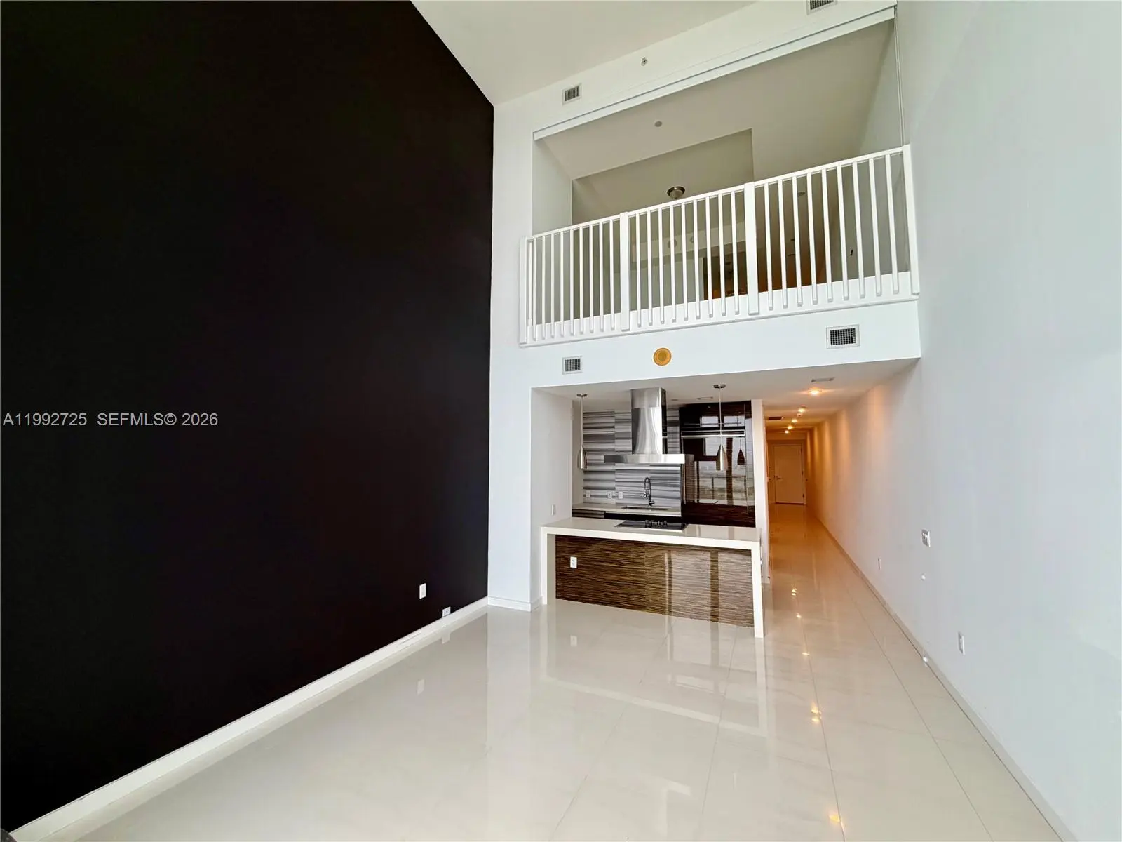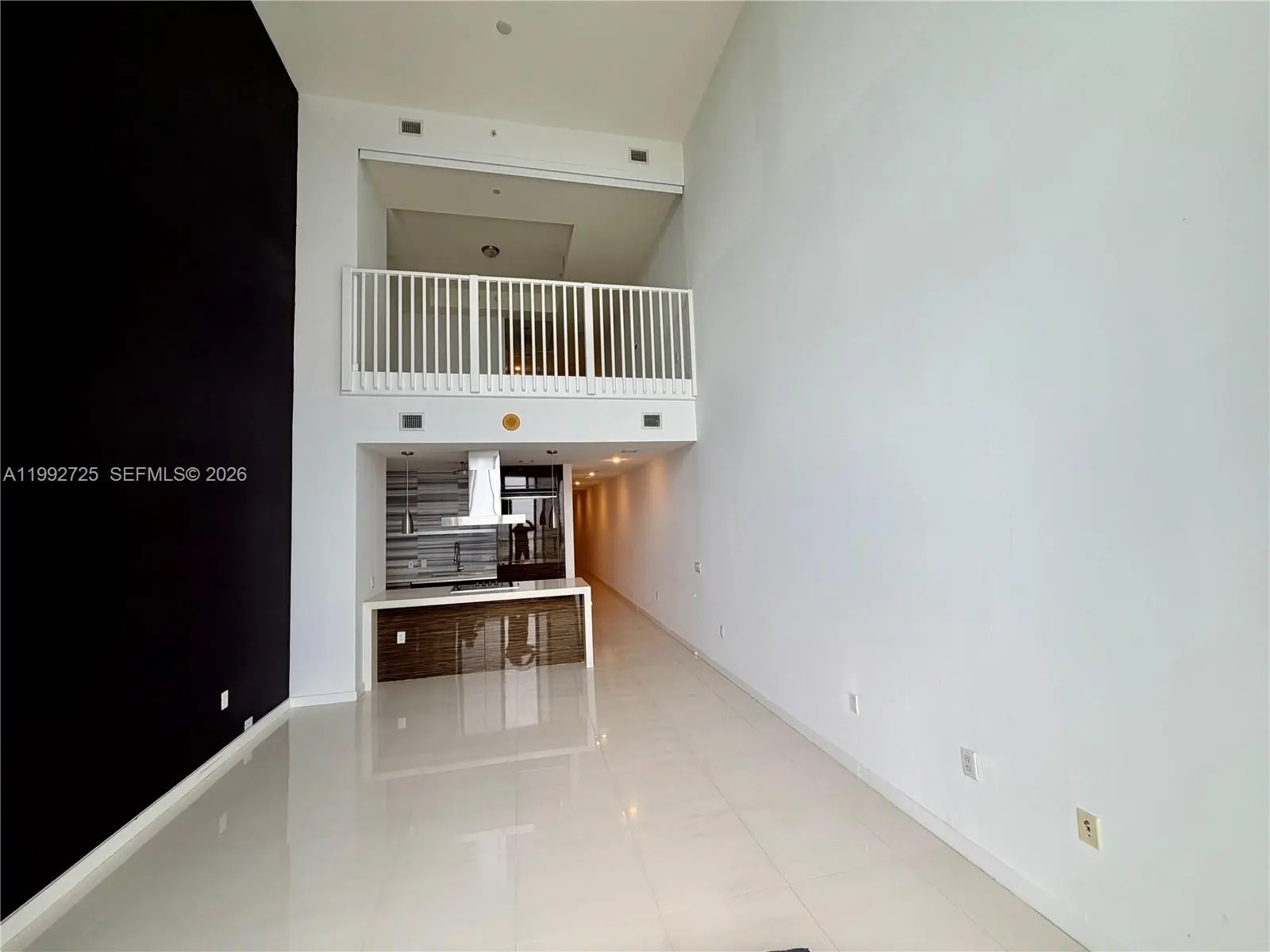 Direct ocean view. Large 1 bedroom + den with 2 full bathrooms. 2 story residence with white floors and 20 ft ceilings. Closet built ins, large laundry room, private spa, fitness center, pool, restaurant.