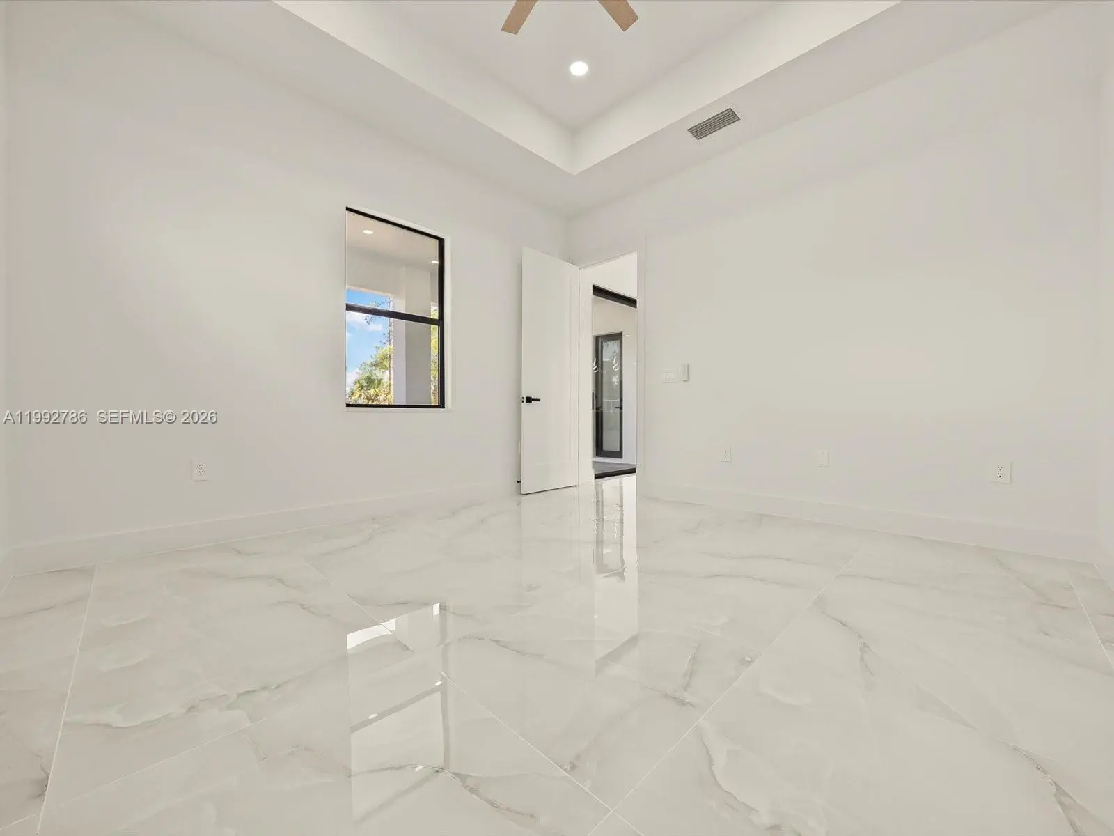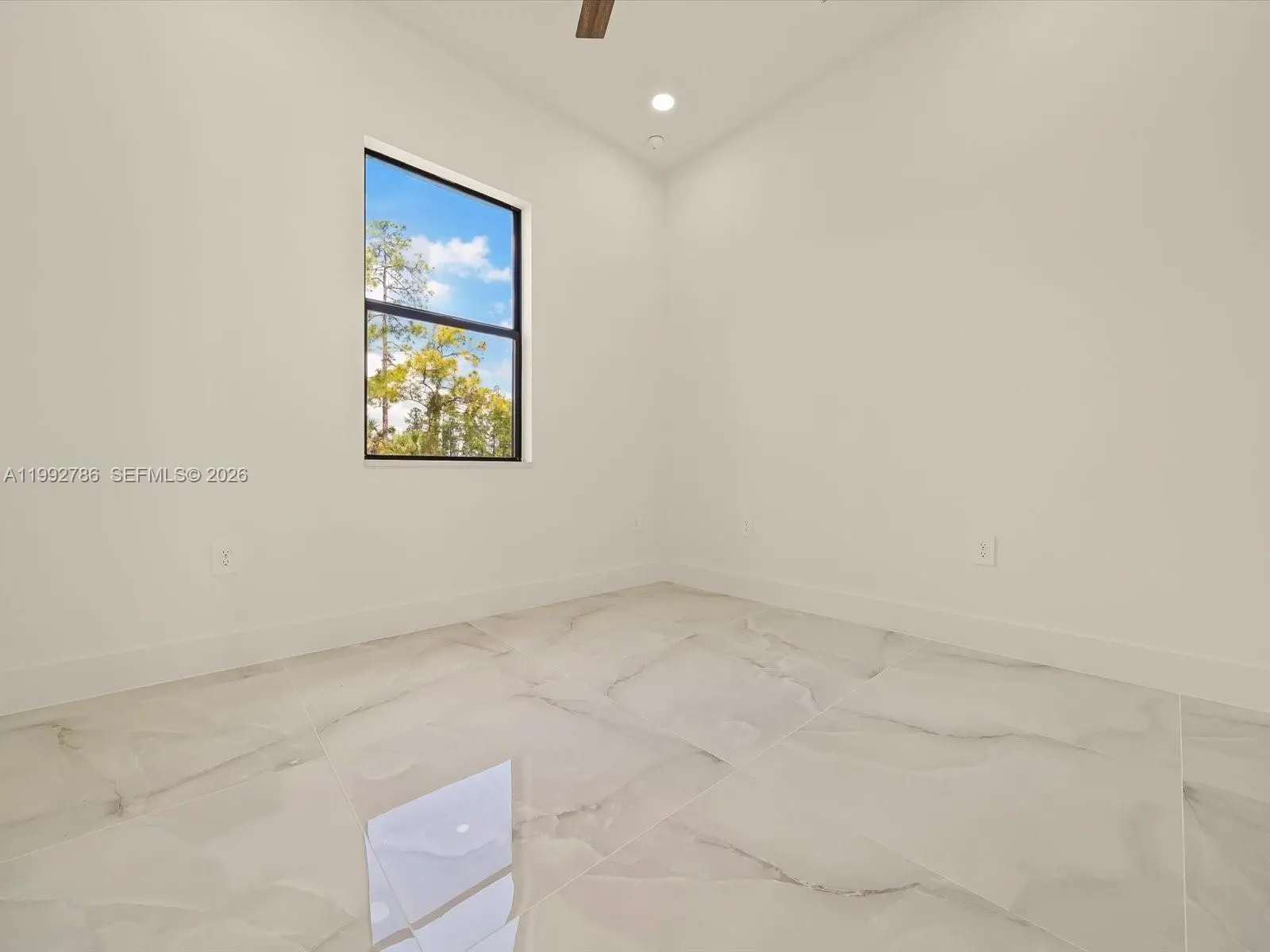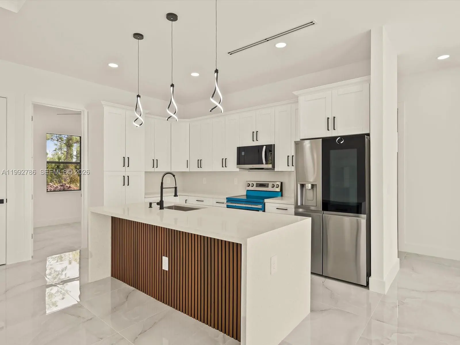 Stunning new construction on a desirable corner lot in Lehigh Acres, featuring high ceilings with varied heights, abundant natural light, and an oversized covered lanai under roof—perfect for outdoor living. This home offers 3 bedrooms + den with ensuite half bath, 2.5 bathrooms, and a spacious open-concept layout designed for versatility and modern living. The corner lot adds exceptional versatility, offering extra space, privacy, additional parking, and convenient side access—ideal for a boat, truck, or future additions such as a guest suite, outdoor upgrades, or expanded living space. Plenty of room for a pool. The interior features large-format porcelain tile flooring throughout, a modern kitchen with center island, quartz countertops, and high-quality appliances from top brands. The primary suite includes dual sinks and two walk-in closets, creating a comfortable and functional retreat. The den with its own bathroom provides the perfect setup for a potential fourth bedroom, office, or guest space. The half bath also offers direct exterior access to the lanai, adding convenience for future pool use. Additional features include a 2-car garage, dedicated laundry/utility room with sink, and impact windows and doors throughout for enhanced safety and energy efficiency. Seller willing to contribute toward buyer’s closing costs.