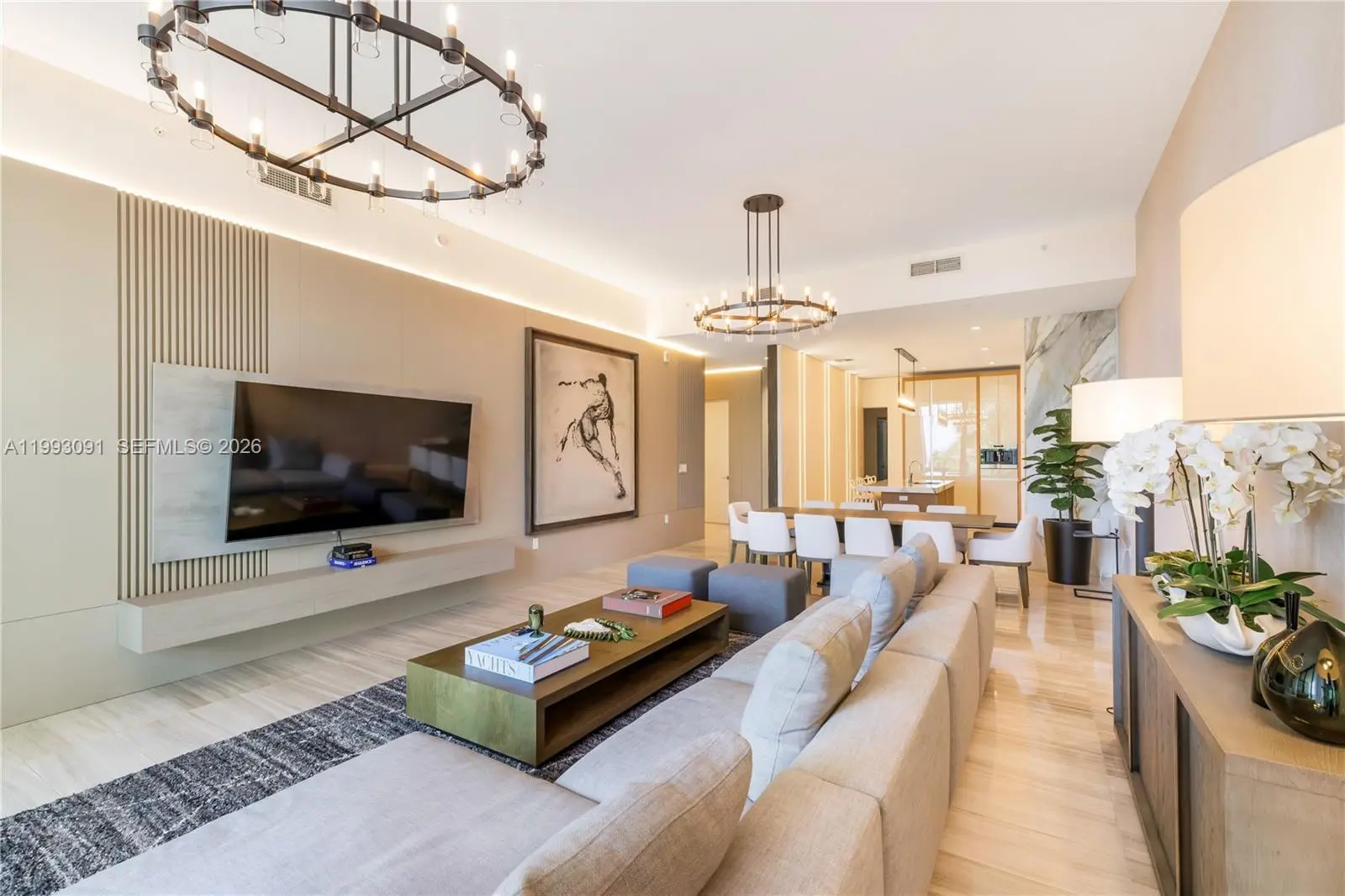 Rarely available 4-bedroom residence at the ultra-prestigious Two Park Grove, offered fully furnished and turnkey. This home features sweeping bay and city views through dramatic 12-foot floor-to-ceiling glass, with refined interiors including Italian cabinetry, stone countertops, and Sub-Zero and Wolf appliances. Park Grove delivers a world-class, full-service lifestyle, with 24-hour concierge and valet, private bayview dining and entertaining spaces, state-of-the-art fitness center with spa and saunas, screening room, wine cellar, and resort-style pools with cabanas. Ideally positioned in the heart of Coconut Grove, just steps from CocoWalk, top-tier dining, Fresh Market, Marina and waterfront parks.