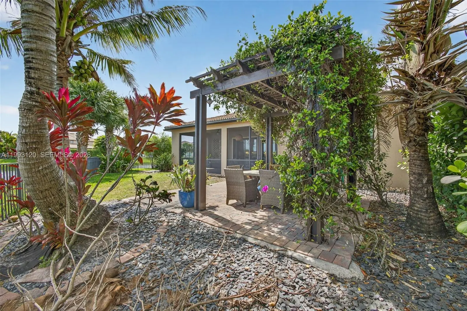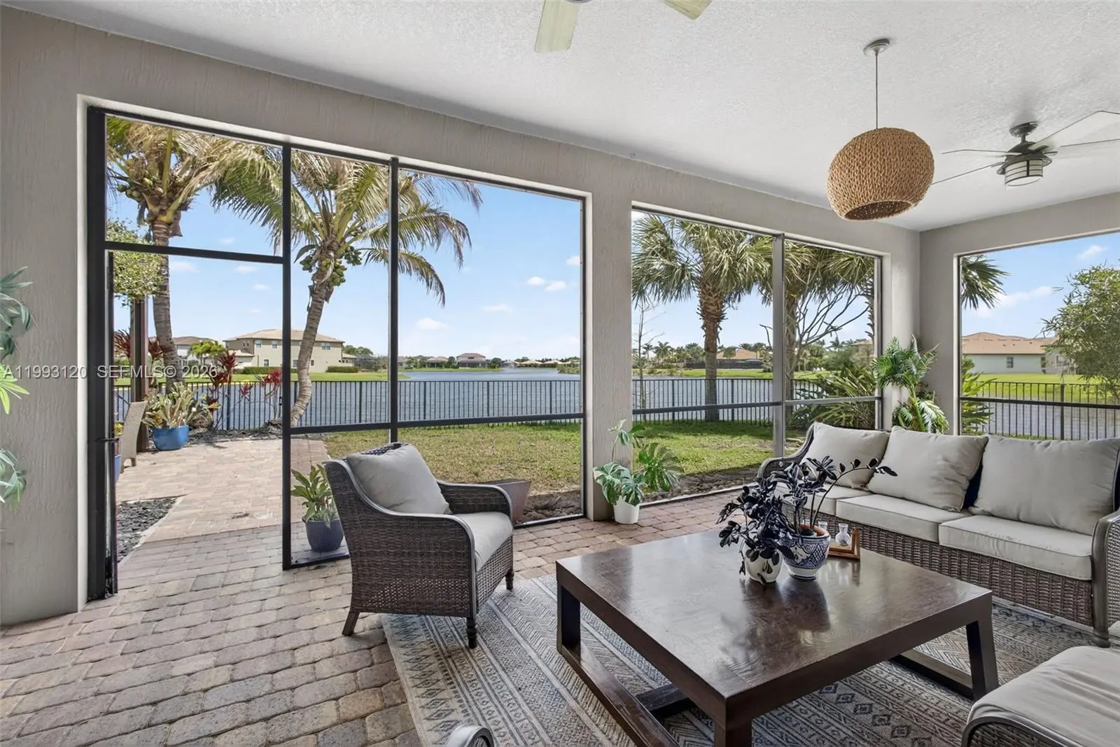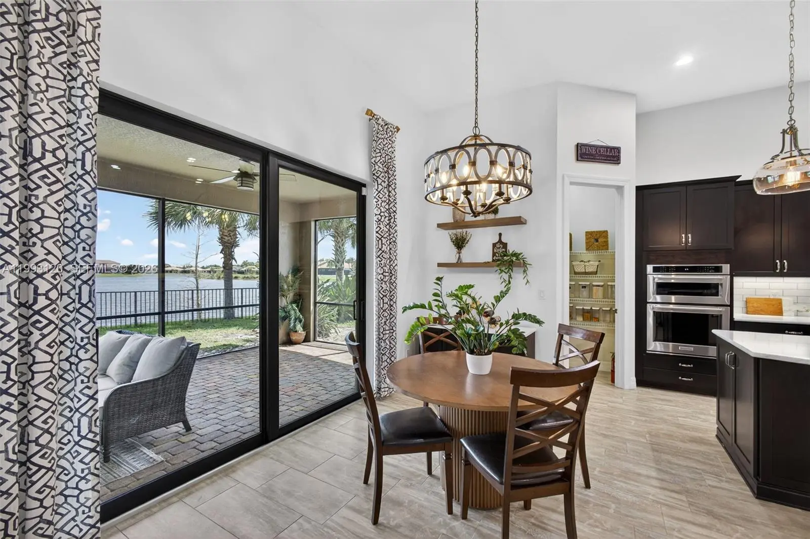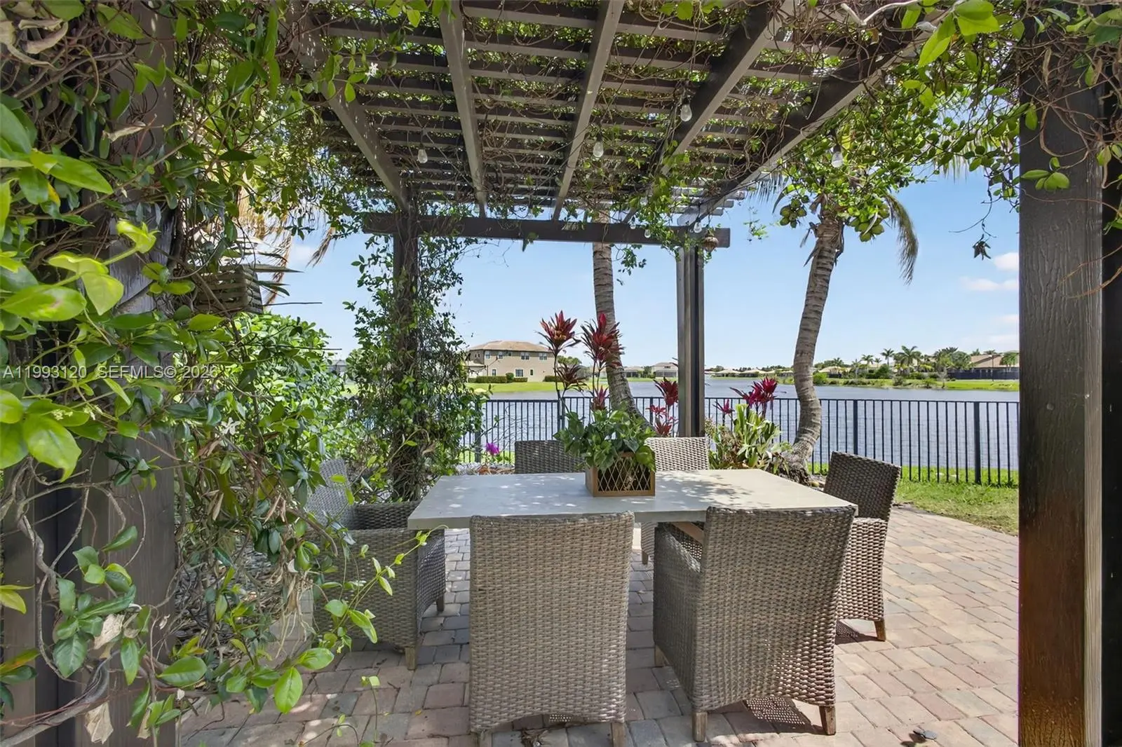 Experience breathtaking wraparound lakefront views from this exceptional 4 bedroom plus flex space, 4 bath Stonewater model home, ideally located on a quiet cul-de-sac within the highly sought after, gated community of Sonoma Isles. An extra long multi car driveway enhances curb appeal and provides ample parking for family and guests. Designed with elegance and functionality in mind, the home features a bright, open floorplan centered around a beautifully upgraded kitchen with espresso cabinetry, quartz countertops, oversized island, gas range, wall oven, & walk in pantry—perfect for entertaining and everyday living. The primary suite offers a peaceful retreat with tray ceilings, custom California closets, and a luxurious spa style bath. Additional highlights include a coffered ceiling great room, generously sized guest bedrooms, and a large second-floor loft/game room w/ kitchenette, private en suite, ideal for guests or multi-generational living. Outdoor living shines with an expansive covered and screened lanai, custom pergola, lush tropical landscaping, fenced yard, and room to add a pool, all overlooking tranquil lake views. A whole house natural gas generator adds convenience and peace of mind. Residents enjoy resort style amenities: clubhouse, pool/spa, fitness center, tennis/pickleball, gathering rooms, fire pit, and tot lot. Minutes from Jupiter’s beaches, golf, shopping, dining, and top rated schools, this home offers luxury Florida living at its finest.