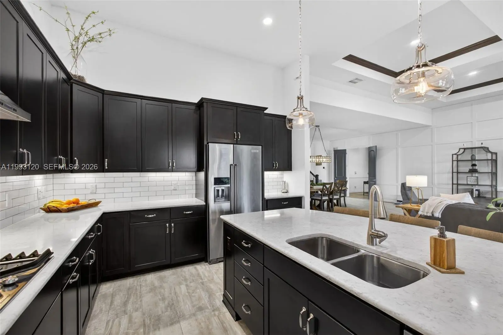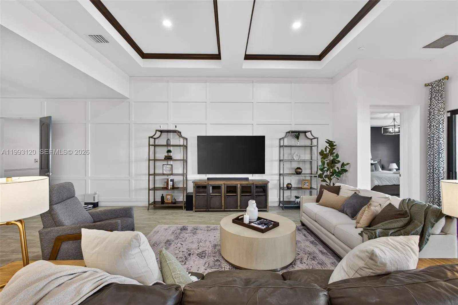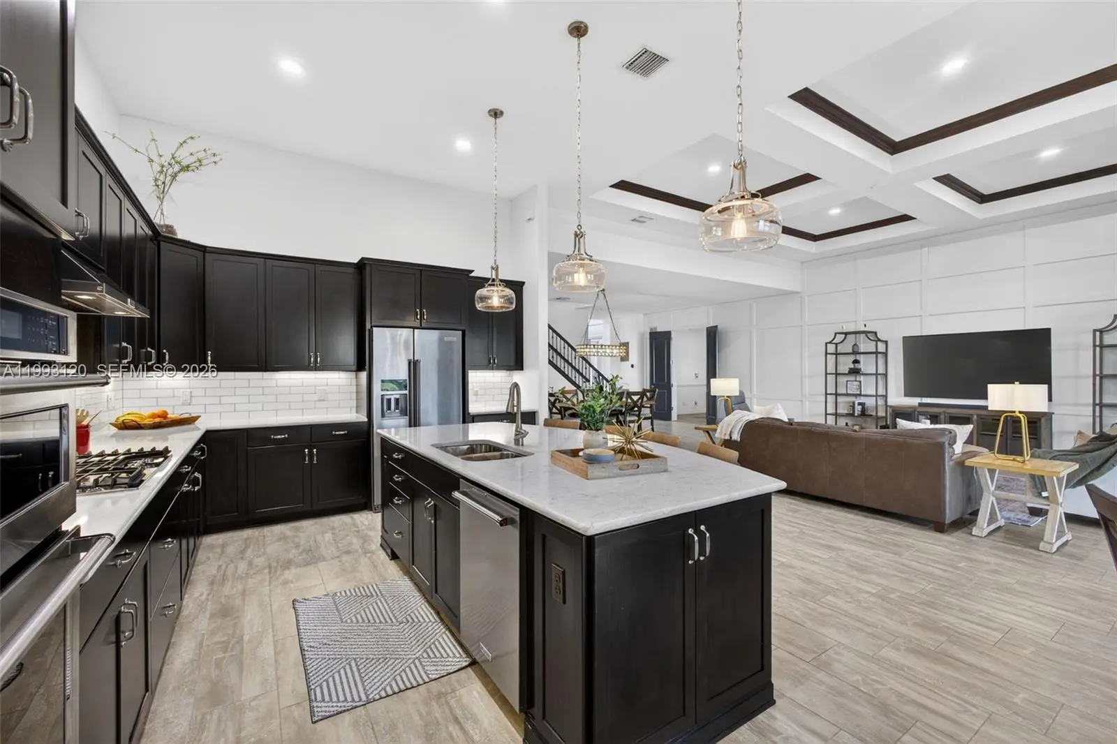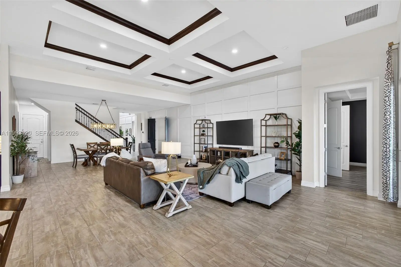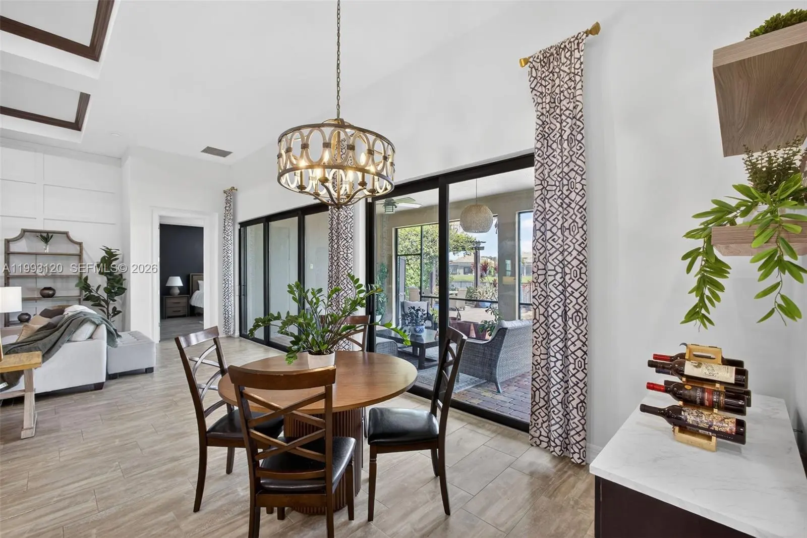 Experience breathtaking wraparound lakefront views from this exceptional 4 bedroom plus flex space, 4 bath Stonewater model home, ideally located on a quiet cul-de-sac within the highly sought after, gated community of Sonoma Isles. An extra long multi car driveway enhances curb appeal and provides ample parking for family and guests. Designed with elegance and functionality in mind, the home features a bright, open floorplan centered around a beautifully upgraded kitchen with espresso cabinetry, quartz countertops, oversized island, gas range, wall oven, & walk in pantry—perfect for entertaining and everyday living. The primary suite offers a peaceful retreat with tray ceilings, custom California closets, and a luxurious spa style bath. Additional highlights include a coffered ceiling great room, generously sized guest bedrooms, and a large second-floor loft/game room w/ kitchenette, private en suite, ideal for guests or multi-generational living. Outdoor living shines with an expansive covered and screened lanai, custom pergola, lush tropical landscaping, fenced yard, and room to add a pool, all overlooking tranquil lake views. A whole house natural gas generator adds convenience and peace of mind. Residents enjoy resort style amenities: clubhouse, pool/spa, fitness center, tennis/pickleball, gathering rooms, fire pit, and tot lot. Minutes from Jupiter’s beaches, golf, shopping, dining, and top rated schools, this home offers luxury Florida living at its finest.