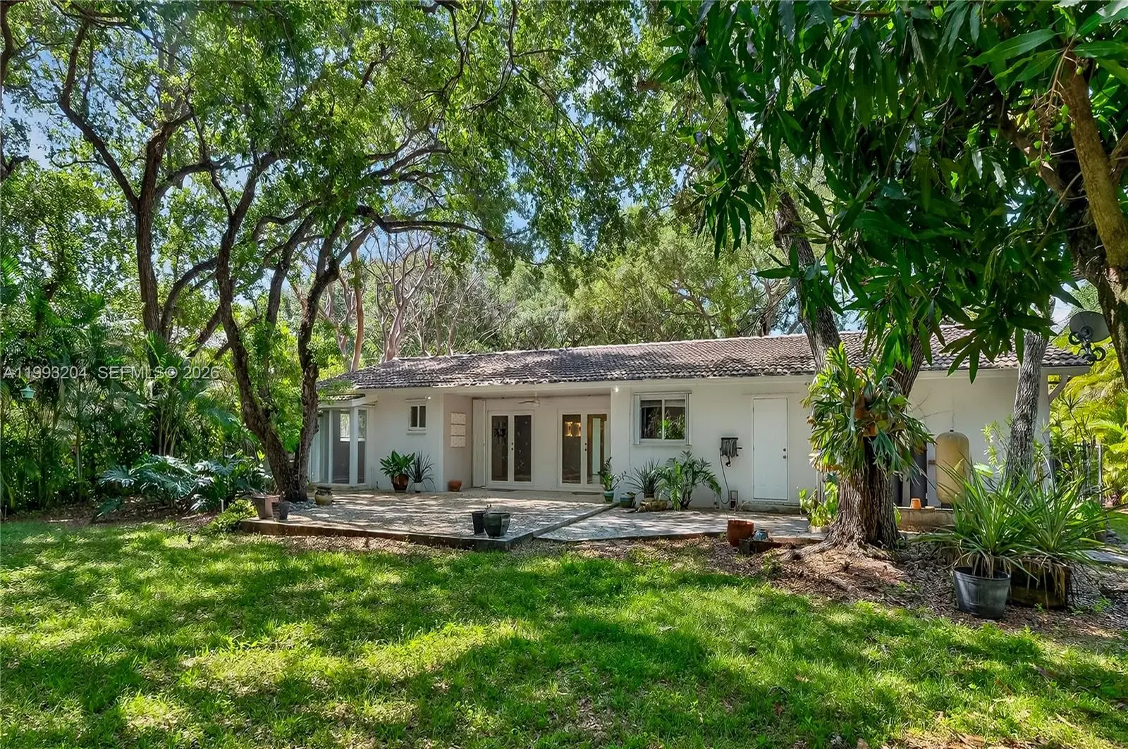 Hidden among the trees and incredible landscaping is a very warm and cozy ranch style home ready for you. Located on a dead end street gives you total privacy. The yard and area is a must see. Backs up to the Nature Preserve. Large open kitchen, living room/great room. Quartz counters, island, cabinets with multiple drawers and lots of space for a family of chefs. Separate dining area and a breakfast nook or sitting area. Tiled throughout, and wooden floors in dining area plus one bedroom, laminate in other bedrooms. Large laundry room in the big work shop/storage area with separate entrance. Easy to show, call LA for Supra info. Yard maintenance included in rent. Mango trees on the property.