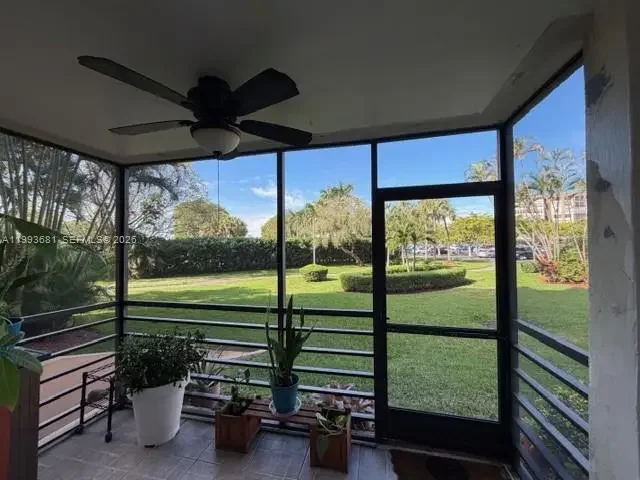 Beautifully updated and move-in ready, this active 55+community, 1 bedroom, 1.5 bath condo offers convenient lobby-level access with both a front entry/exit and a private back-patio entrance/exit. Impact/hurricane-proof windows, sliding glass door, and hurricane-rated back door (including frame) provide excellent protection. Windows feature clear ceramic UV/heat-rejection tint for added efficiency. One of the more spacious units in complex. Interior upgrades include updated bathrooms with handicap-accessible shower, renovated kitchen with upgraded cabinets, countertops, ceiling modernized, energy-efficient appliances, updated plumbing. Electrical upgrades throughout, updated ceiling fans throughout (including bathroom), A beautifully installed barn door, adding both privacy and modern character. A walk-in closet, custom soft-close marble top drawer unit with shelving and built in lighting with discreet electrical outlet. Unit has fresh paint, and professionally power-washed floors. Rheem AC installed November 2019. Storage unit on same level and bicycle storage in front of building. Enjoy an enclosed patio overlooking serene landscaping, surrounded by private walking path. Community features include 4 pools, pickleball and tennis courts, exercise park, round-the-clock security, and an active 55+ lifestyle. Plenty of guest parking plus 1 assigned space conveniently located in front of the building.