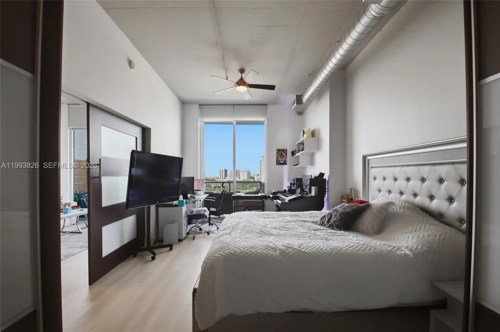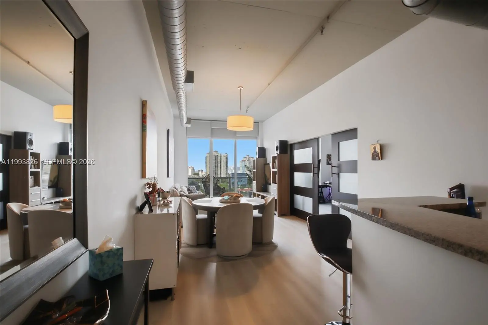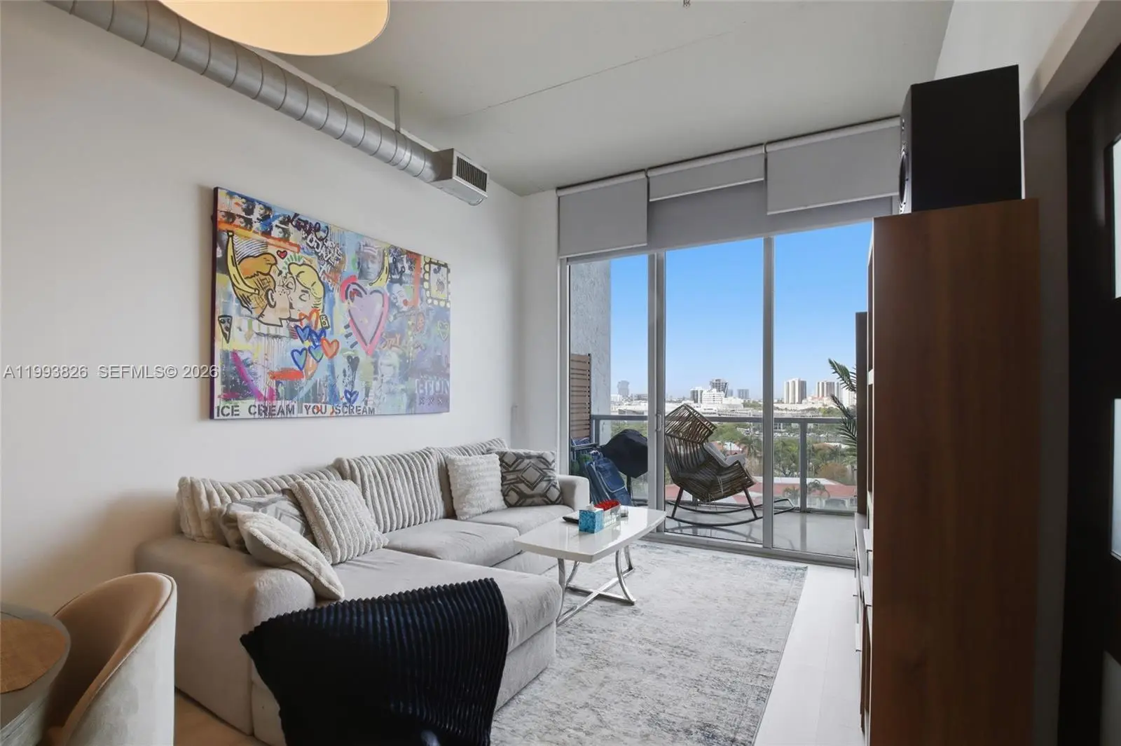Rare opportunity to own a true loft-style residence in the heart of Aventura with soaring 11’ ceilings and dramatic floor-to-ceiling impact windows showcasing beautiful flow-through water and city views. This 3-bedroom, 2-bath home offers 1,362 SF of interior space, complemented by two private terraces, exposed concrete ceilings, and a sleek combination of porcelain tile and laminate flooring, creating a modern, elevated living experience. The building features a full range of amenities including a heated saltwater pool, jacuzzi, fitness center, sauna, steam room, tennis and basketball courts, business center, resident lounge, valet, 24-hour security, and private marina. Pet-friendly community with cable and high-speed internet included in maintenance. Ideally located in one of Aventura’s most convenient pockets — walk to Publix, restaurants, and Aventura Mall, and just a short drive to the beach. An A+ rated school is located directly on the same street, adding exceptional value for end users. A new luxury padel and spa club is set to open next to the building, further enhancing the lifestyle and long-term appeal of this location.