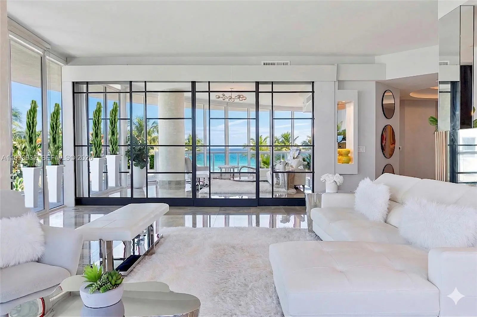 This wonderful spacious 2,508 sq. ft. home w/ tree lined layered views of lush landscaping, sparkling turquoise pools, and the ocean on the horizon is front & center of the world famous Continuum resort. Offering a balcony that wraps the perimeter of the entire residence, each of the large elegant rooms have immediate access to this terrace. As one enters through the private elevator foyer into a bright, light-filled oasis with floor-to-ceiling windows, it truly feels like a private home nestled in a tranquil garden on the water. All this within a 13-acre oceanfront enclave in South of Fifth, residents enjoy 5-star amenities including beach service, pools, fitness center, spa, tennis courts, dining, concierge, valet, and 24-hour security. An ideal residence for a family or those who work from home; this sprawling floor plan offers flexibility and spacial luxury.
