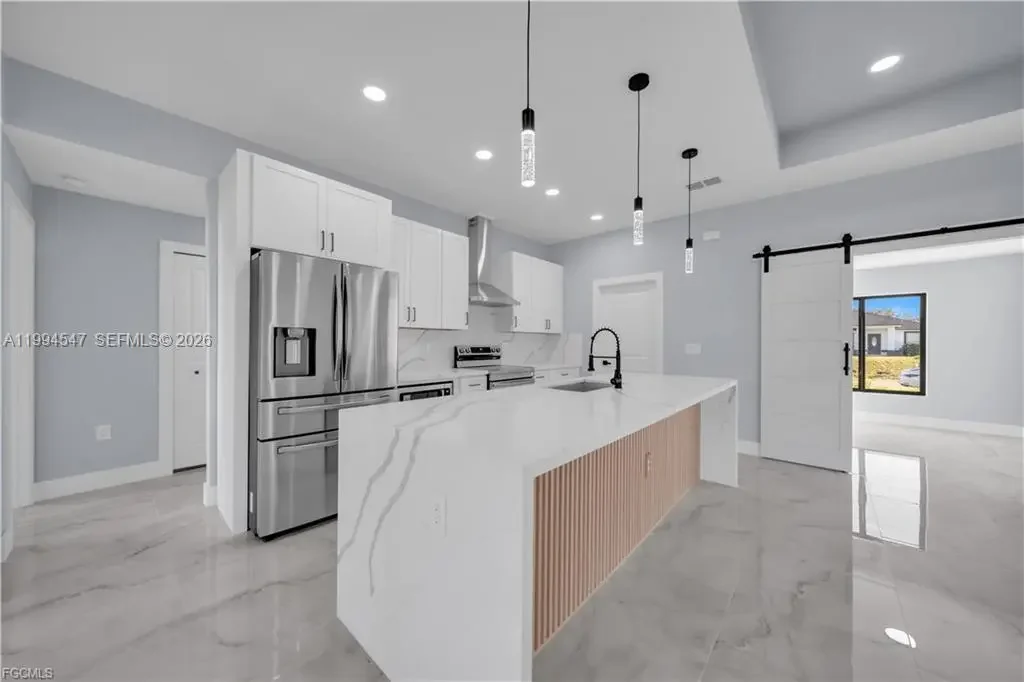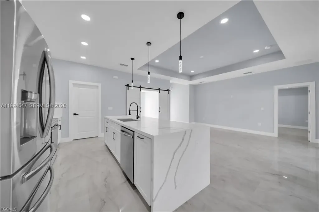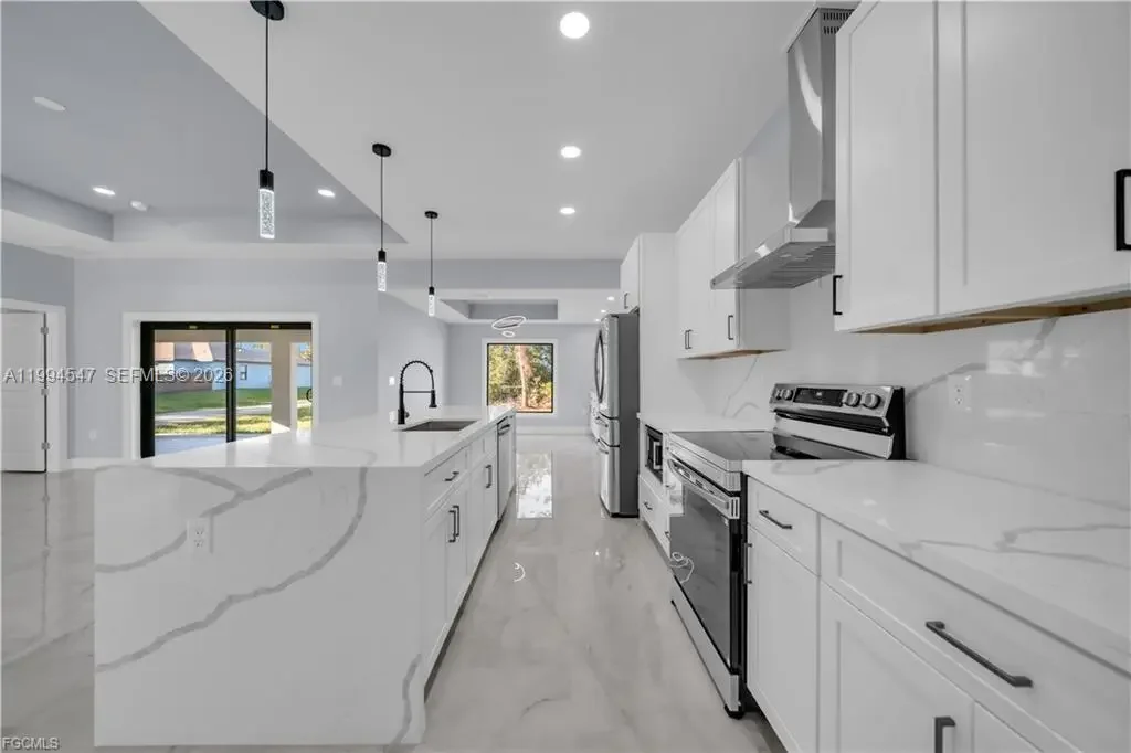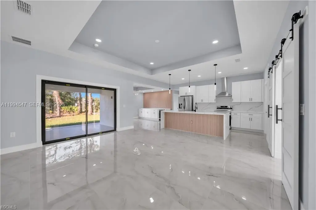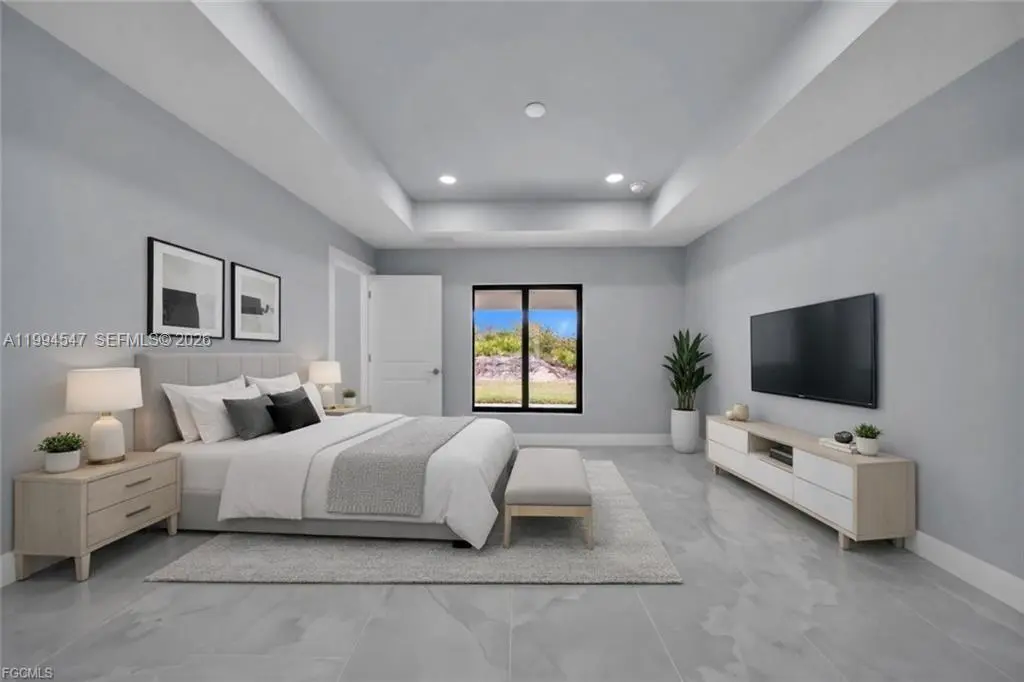 Your Dream Home in Lehigh Acres Awaits!!!!!!!!!! Discover this stunning 2 bath 3 bedroom plus Den Office property that perfectly blends comfort, elegance, and functionality—ideal for families seeking a modern and secure lifestyle. Key Features: Impact-resistant windows and doors for peace of mind Porcelain tile flooring throughout the home for a sleek, low maintenance required. Kitchen and bathrooms with quartz countertops and stainless-steel appliances, Wood cabinets, double vanities in the master bathroom, custom shower and walk-in closet. Tray ceilings adding style and spaciousness. Extended patio and sidewalk surrounding the entire property, connecting to the driveway—perfect for outdoor. Doble car Garage with extra Side exit door for convenience. Dining room with extra Counter-Top and wine cooler, ideal for entertaining family and friends. This house come with an Oversize Lanai and summer kitchen already added, perfect for outdoor activities. This corner lot offered a prime location in Lehigh Acres. close to schools, parks, and shopping. This property is more than just a house—it’s a lifestyle waiting for you. Schedule your visit today. CALL FOR YOU PRIVATE SHOWING!!!!!!!!!