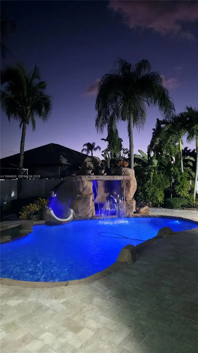 Features a functional 3-bedroom plus den layout with 2.5 bathrooms. The interior is finished with marble, porcelain, and wood flooring upstairs. The kitchen and living areas overlook a private below-ground pool with a garden and gazebo with lights and music system installed. This two-story concrete block home includes a 2-car garage and is situated on a 7,794 sq.ft. lot within a non-HOPA community. Ideally located near major highways, shopping, dining, and schools, this move-in ready home offers both convenience and lifestyle. Pre-approval letter required prior to showing. Showings approved through ShowingTime or text Julio Basulto (Listing Agent) at 305-496-3994. Easy to show Monday-Friday after 5pm and weekends anytime after 10am.