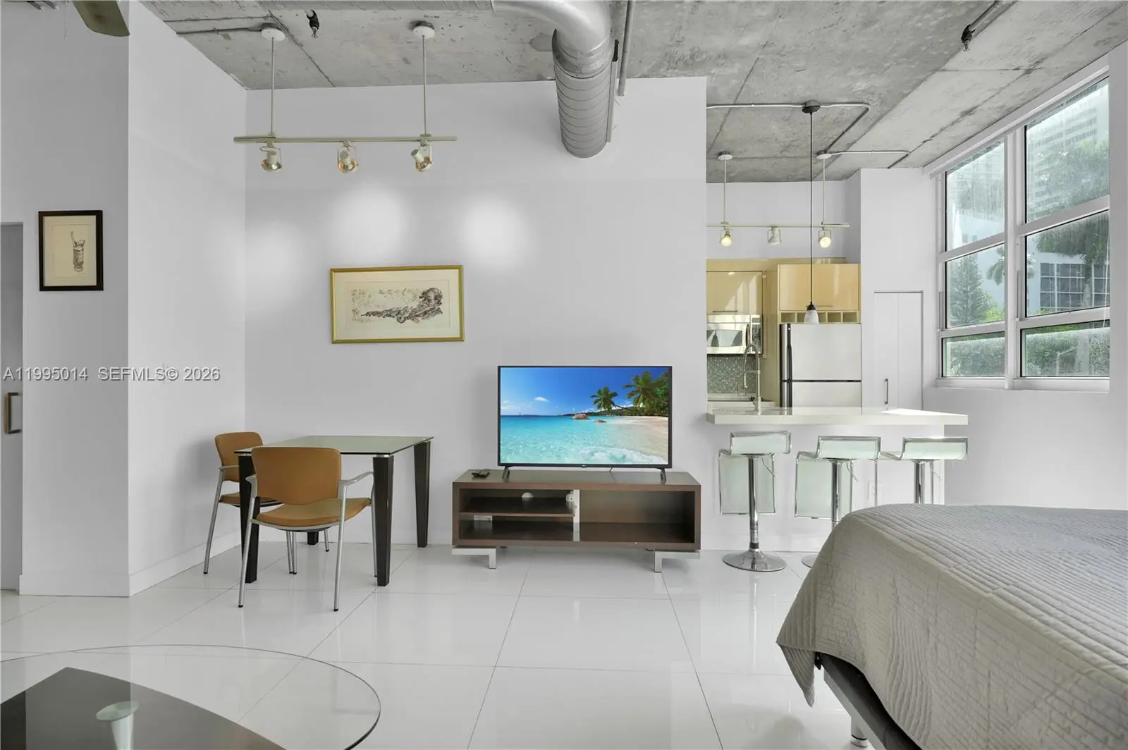 Modern NYC-loft-style studio in Cite on the Bay, located in the heart of Edgewater! This fully furnished unit features extra-high 12ft ceilings, white marble floors, an open kitchen, walk-in closet, impact glass windows, pantry, and inunit washer/dryer. Building amenities include valet, concierge, an impressive gym, pool, Jacuzzi, business center, club room with billiards, and more! Enjoy living across from beautiful Margaret Pace Park, offering a walking path, soccer fields, tennis, and volleyball courts.Walk to Publix, Miami Trolley, trendy restaurants/shops, museums, concerts, and top charter schools.Just minutes from Midtown, Wynwood, Brickell, the Design District, and Miami Beaches