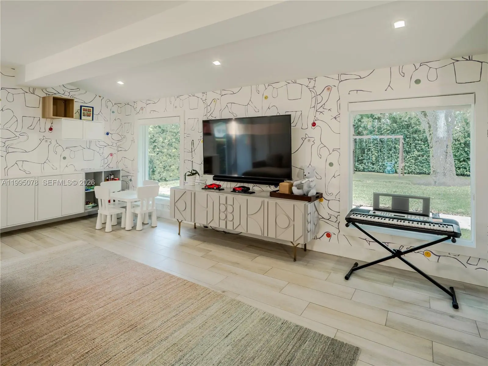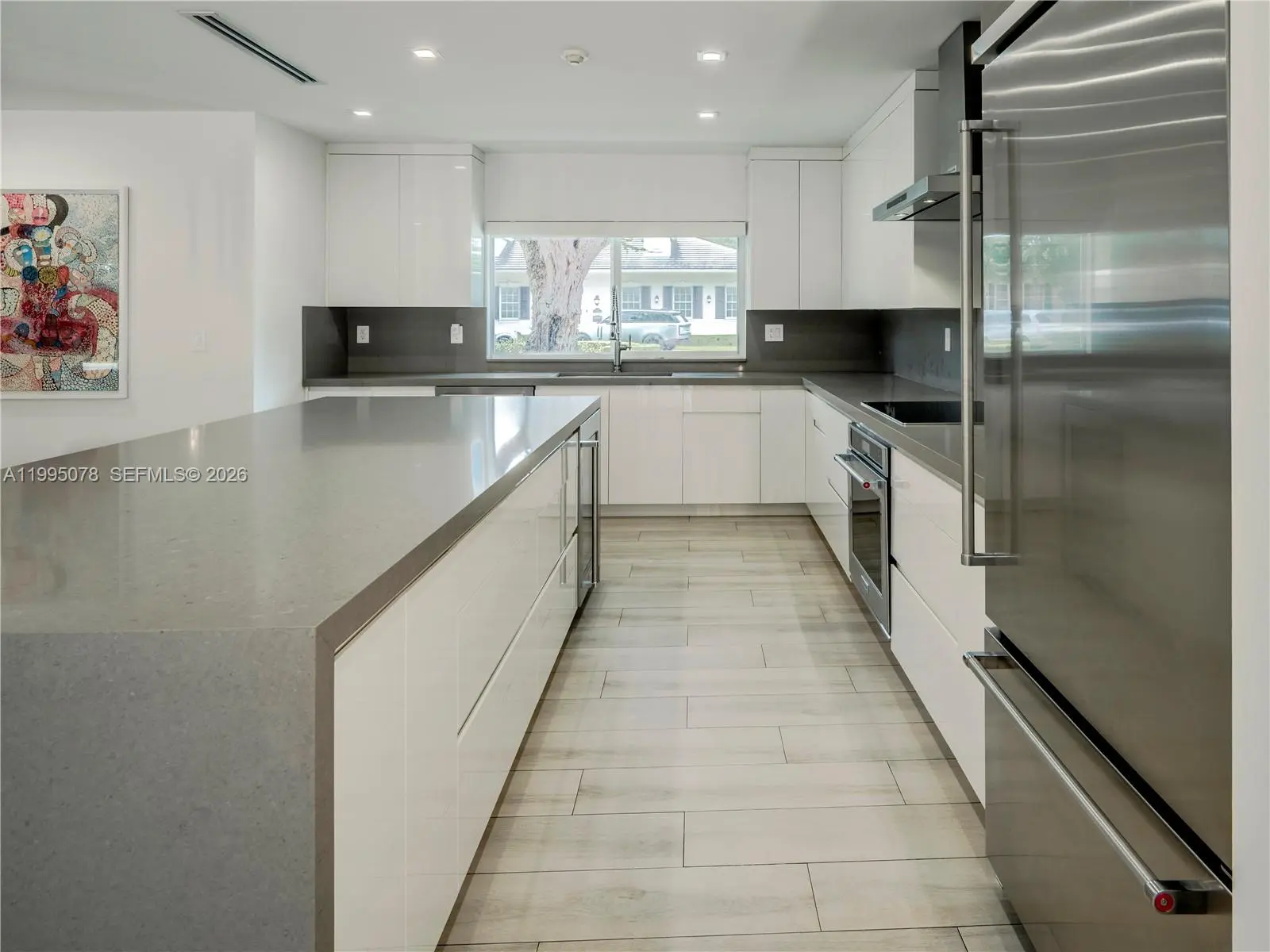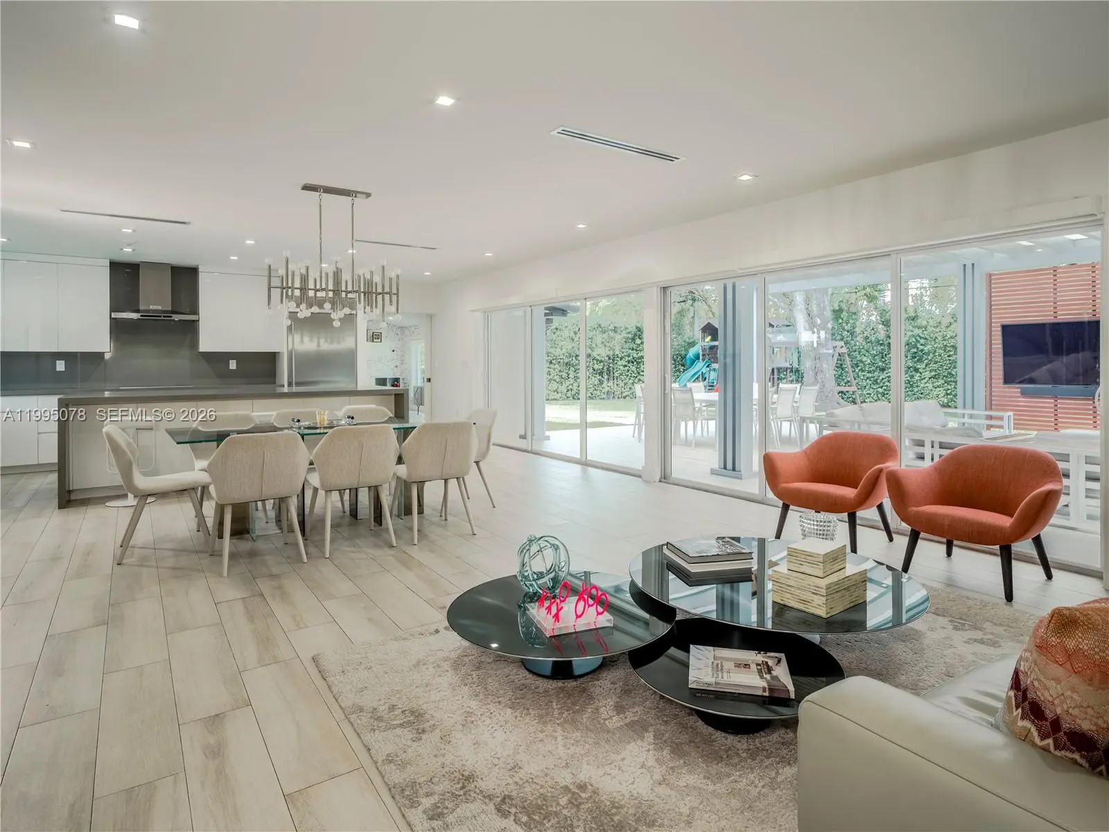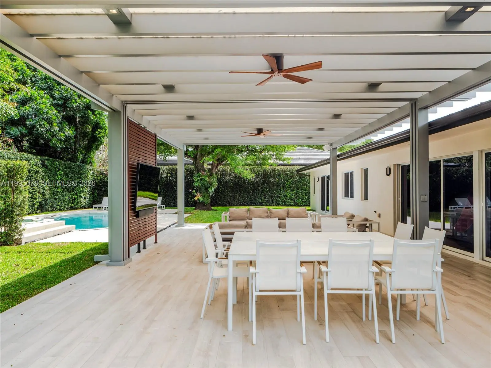Completely rebuilt in 2017 (construction permits available), this exceptional residence provides 3374 SF of indoor & covered outdoor areas. Every major system and finish has been thoughtfully upgraded, creating a turnkey home designed for both comfort and style. The renovation included electrical systems (buried utility lines), updated plumbing (removed cast iron pipes). Interior and exterior improvements include reconfigured hurricane resistant windows and doors, framing & drywall, interior doors, bathrooms, flooring. The kitchen and baths showcase modern cabinetry, countertops, and appliances. A metal roof with gutters throughout, while mechanical systems were upgraded to include two-zone air conditioning, ducts, and tankless water heaters for optimal efficiency and comfort. Designed with outdoor living in mind, the property features a resort-style heated and cooled pool, along with a custom pergola complete with ceiling fans and a built-in sound system—perfect for entertaining year-round. The lush landscaping includes a fully irrigated yard with three sprinkler zones, a dedicated children’s play area, and a mature podocarpus hedge providing privacy and greenery. Five mature trees, including three stately oaks, further enhance the property’s natural beauty and shade. This is a rare opportunity to own a home, on a 15,600 SF lot, that offers the character of a classic build with the systems, finishes, and lifestyle of a much newer residence.