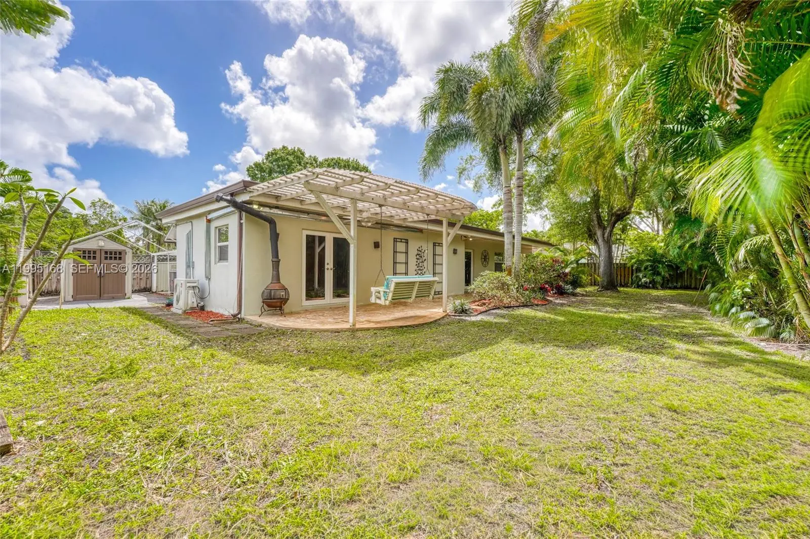 Welcome to Plantation Gardens, one of the area’s most sought-after neighborhoods, known for its mature tree-lined streets and oversized lots. This beautifully updated 5-bedroom, 3-bathroom home sits on a generous 13,000 sq ft lot and offers the perfect blend of space, privacy, and room for a pool. New roof with transferable warranty. Recent upgrades include a NEW roof, AC, and water heater (all 2023), along with a new split system in the primary suite. The home also features impact windows and doors, updated plumbing, and fully renovated bathrooms. Spacious split floor plan with wood floors throughout. The private primary suite includes a large walk-in closet, and the updated kitchen with a gas range opens to multiple living areas, including a bright 24x13 living/dining room ideal for entertaining. The fenced in backyard serves as a private retreat, featuring a wraparound patio, built-in natural gas BBQ and lush landscaping with multiple seating areas. Additional features include a 2-car garage and a shed plus room for a boat or RV. Move-in ready and vacant, priced to sell. Easy to show, by appointment only.