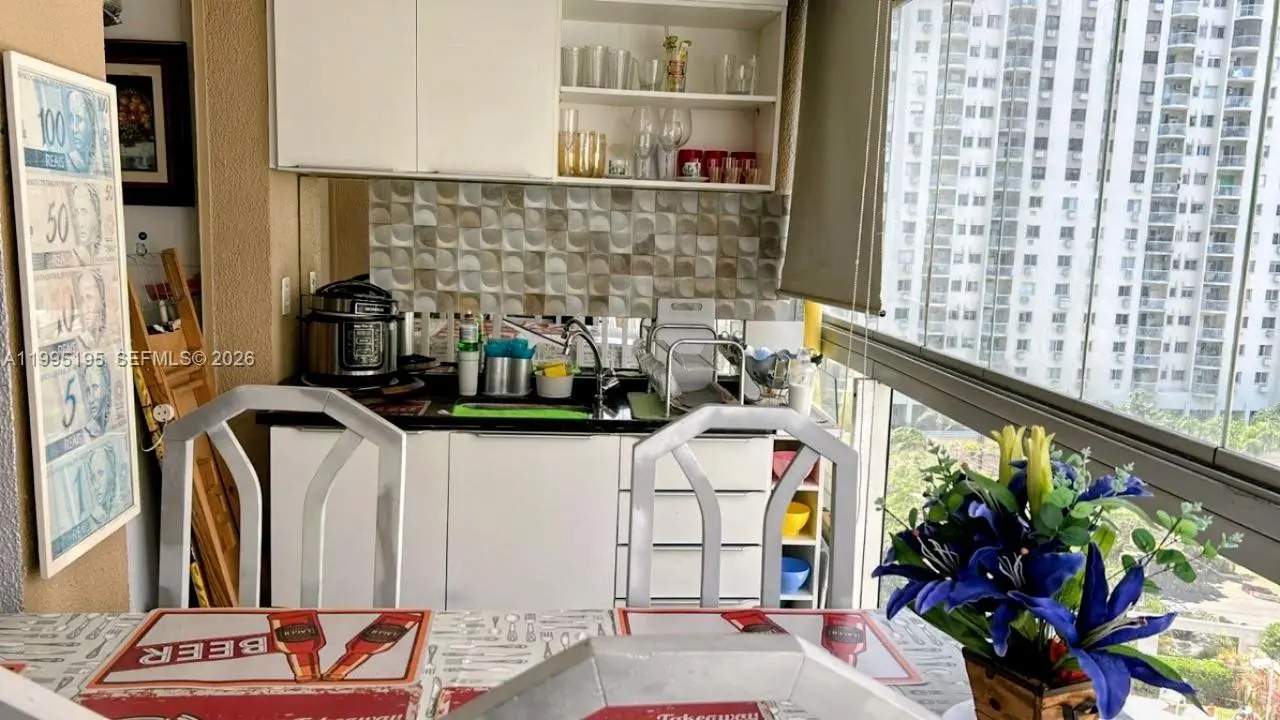 Welcome home to this cute live, work, play space, situated in the southwestern suburb of Recreio, in Rio de Janeiro, Brazil. Currently configured as a 2 bedroom, 2 bath flat, the 5th floor unit overlooks the shared outdoor amenities of the condominium, which include two swimming pools, a basketball court, soccer pitch and playground equipment. Other amenities include a children's playroom, well-equipped gym, spa and sauna. The apartment is cozy and colorful, centered around an open kitchenette with breakfast bar and windowed dining patio. It receives great morning sunlight, and may be purchased partially furnished, so you could move right and kickstart your Brazilian property acquisition journey. * * * Seja bem-vindo a este charmoso espaço para morar, trabalhar e se divertir, situado no bairro do Recreio dos Bandeirantes, na zona sudoeste do Rio de Janeiro, Brasil. Atualmente configurado como um apartamento de 2 quartos e 2 banheiros, o imóvel, localizado no 5º andar, tem vista para as áreas comuns ao ar livre do condomínio, que incluem duas piscinas, uma quadra de basquete, um campo de futebol e playground. Outras comodidades incluem uma sala de jogos, uma academia bem equipada, um spa e uma sauna. O apartamento é aconchegante e colorido, com um cozinha compacta aberta com balcão para café da manhã e um pátio com janelas para refeições. Recebe ótima luz do sol pela manhã e pode ser adquirido parcialmente mobiliado, para que você possa se mudar imediatamente.