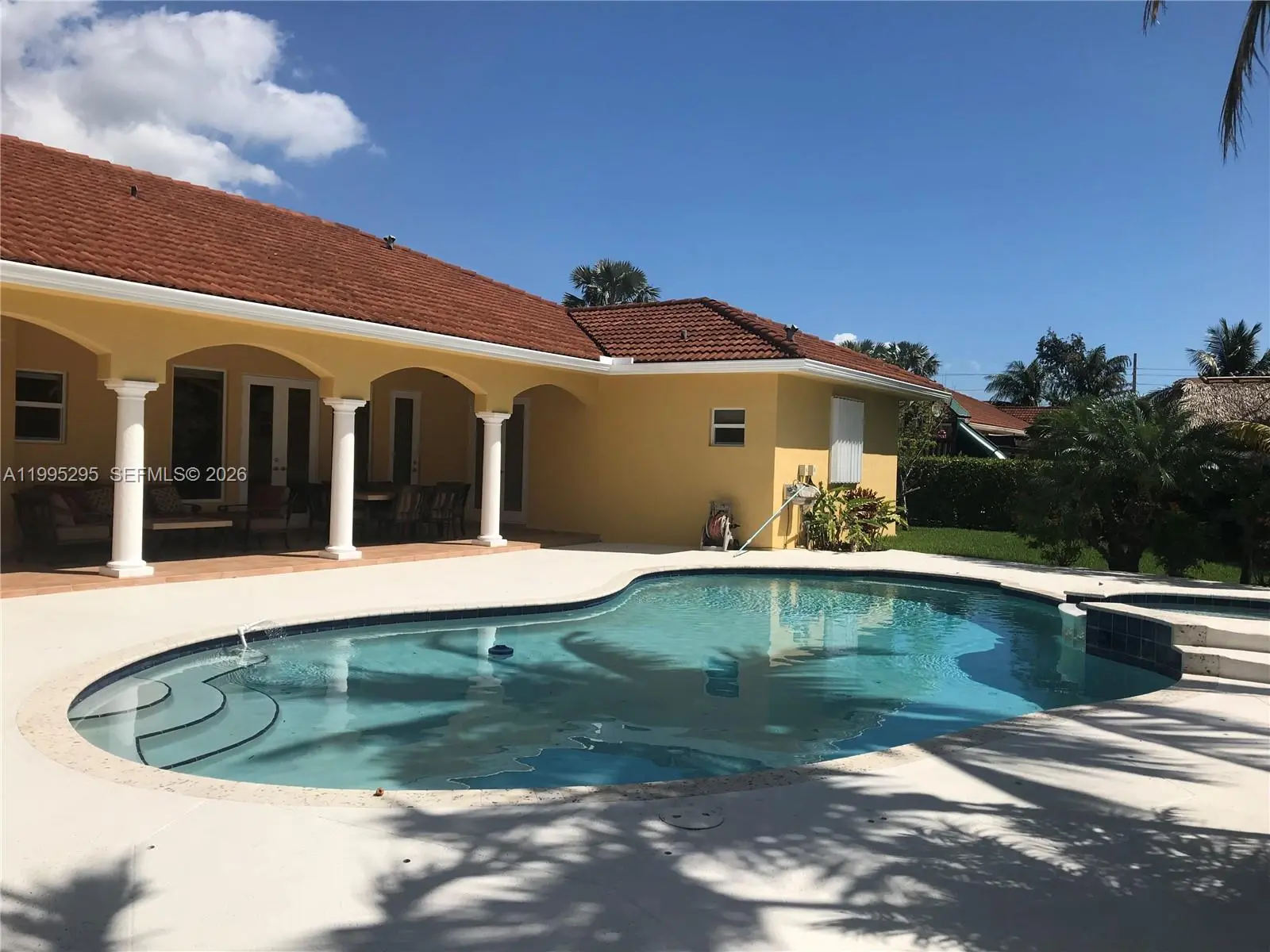 Spacious move-in ready 4 Bedroom, 3-bathroom home located in the desirable community of Palmetto Bay. The property is elegantly designed with luxurious finishes, a huge master bedroom, large family room, gorgeous pool and jacuzzi, stainless steel appliances, an oversized backyard, and a terrace perfect for entertaining. Impact Door and windows, LED lighting, custom front door, two-car garage, and circular driveway provide plenty of parking.