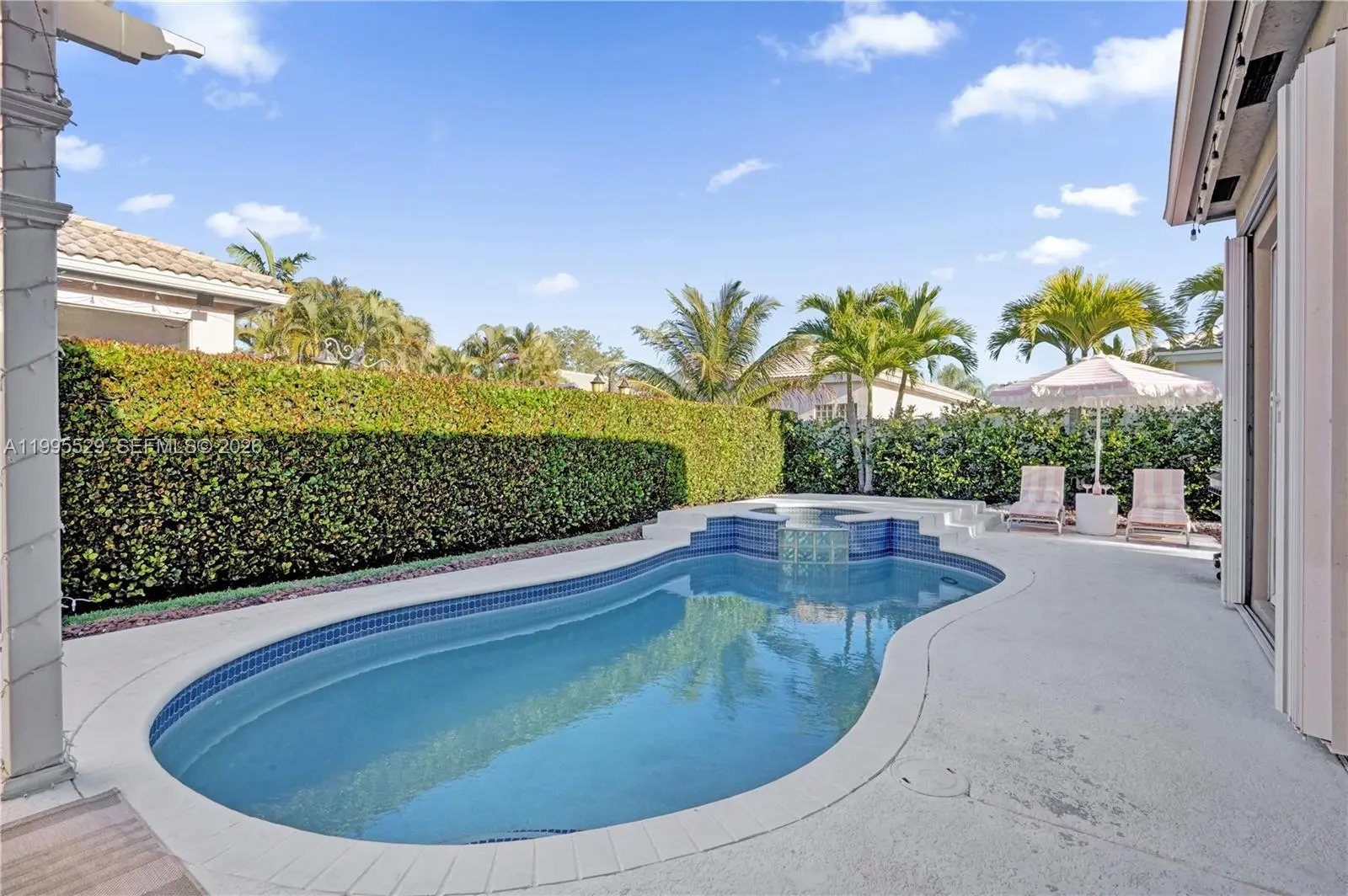 Welcome to Juniper Glen, a quiet gated community ideally located just minutes from restaurants, shopping, grocery stores, and schools. This spacious rental home offers over 1,600 sqft, larger than most in its class, featuring two oversized bedrooms and an open, airy layout filled with natural light. Multiple sliding glass doors frame the sparkling pool, creating a courtyard-style feel visible from the kitchen, family room, and primary suite. Enjoy your own private backyard oasis with a large pool and heated spa, space for lounge chairs, grill, and a pergola perfect for outdoor dining and year-round entertaining. Accordion shutters provide added protection and peace of mind. Inside, the home features tall ceilings, a spacious dining area, family room, and breakfast nook overlooking the pool. The remodeled kitchen offers quartz countertops and stainless steel appliances. The home has been freshly painted with popcorn ceilings removed, elegant light fixtures, and updated door hardware throughout. The primary suite features double-door entry, pool views, large walk-in closet, and a fully remodeled spa-like bathroom with double sinks, walk-in shower, LED mirror. The second bedroom includes its own remodeled en-suite bath and walk-in closet. Additional highlights include a laundry room, one-car garage with EV charger outlet, and driveway parking for two cars. This beautiful home can be rented fully furnished or unfurnished. Rental price includes lawn and pool maintenance.
