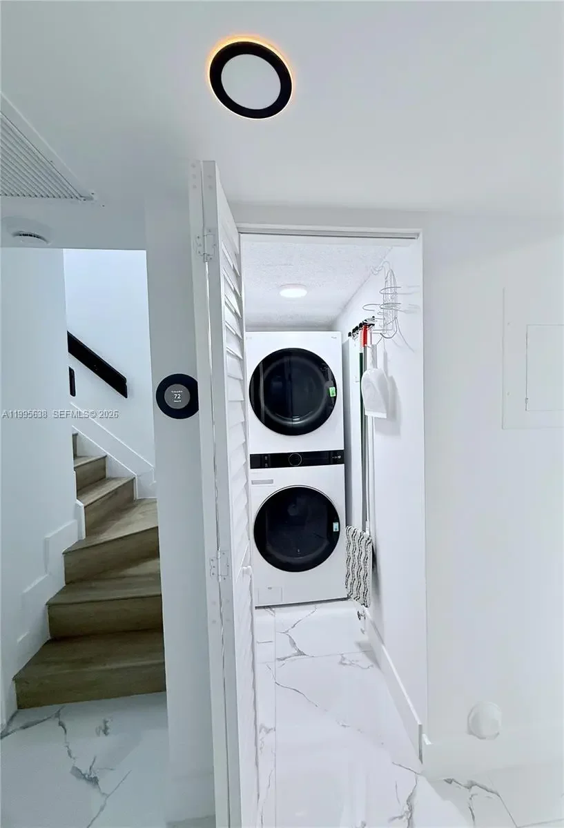 Beautifully remodeled townhouse-condo located in a central area, with easy access to major expressways, Doral, Fontainebleau, Miami International Mall, and Dolphin Mall—surrounded by dining, shopping, and everyday convenience. This fully renovated, never-lived-in home offers a modern design with high-quality finishes. Features include a newer A/C system (less than 2 years old), stainless steel appliances, brand-new washer and dryer, Nest thermostat, and LED lighting throughout. Conveniently located on the first floor, the unit offers 2 bedrooms and 2 bathrooms. The primary suite is located on the second level, featuring a private bathroom and walk-in closet, providing excellent privacy. The condominium is in the final stage of its 40-year recertification, with major improvements including a new metal roof, impact windows and doors, exterior painting, and the renovation of all common areas, including parking areas and streets. The property includes one assigned parking space directly in front of the unit, plus a second parking space available in a designated resident area, as well as guest parking. Special Assessment: The association has a $17,000 special assessment per unit; as an incentive, the seller will pay the remaining balance at closing. HOA: $300.46/month.