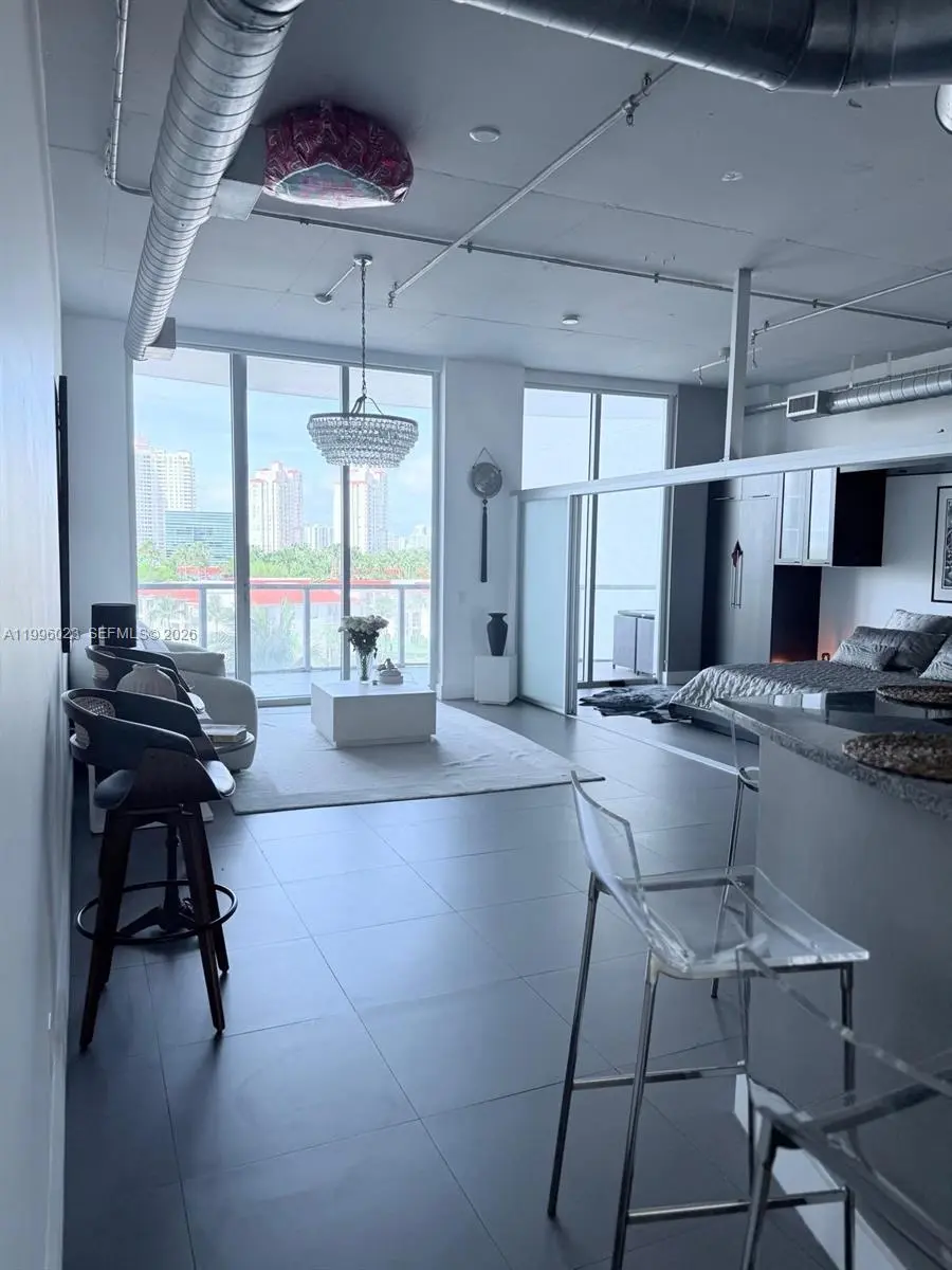 Uptown Marina Lofts in Aventura. 3 Bedroom 2 Bathroom modern flow-through NYC Loft style. Water and city views. European kitchen with stainless steel appliances and granite countertops. 11" high ceilings. 2 balconies offering northern and southern exposures and views. Amenities include a gym, sauna, swimming pool, jacuzzi, tennis court, and more. Internet and basic cable included. Designed by renowned architect Kobi Karp, the industrial chic structure stands out boldly from its surroundings.