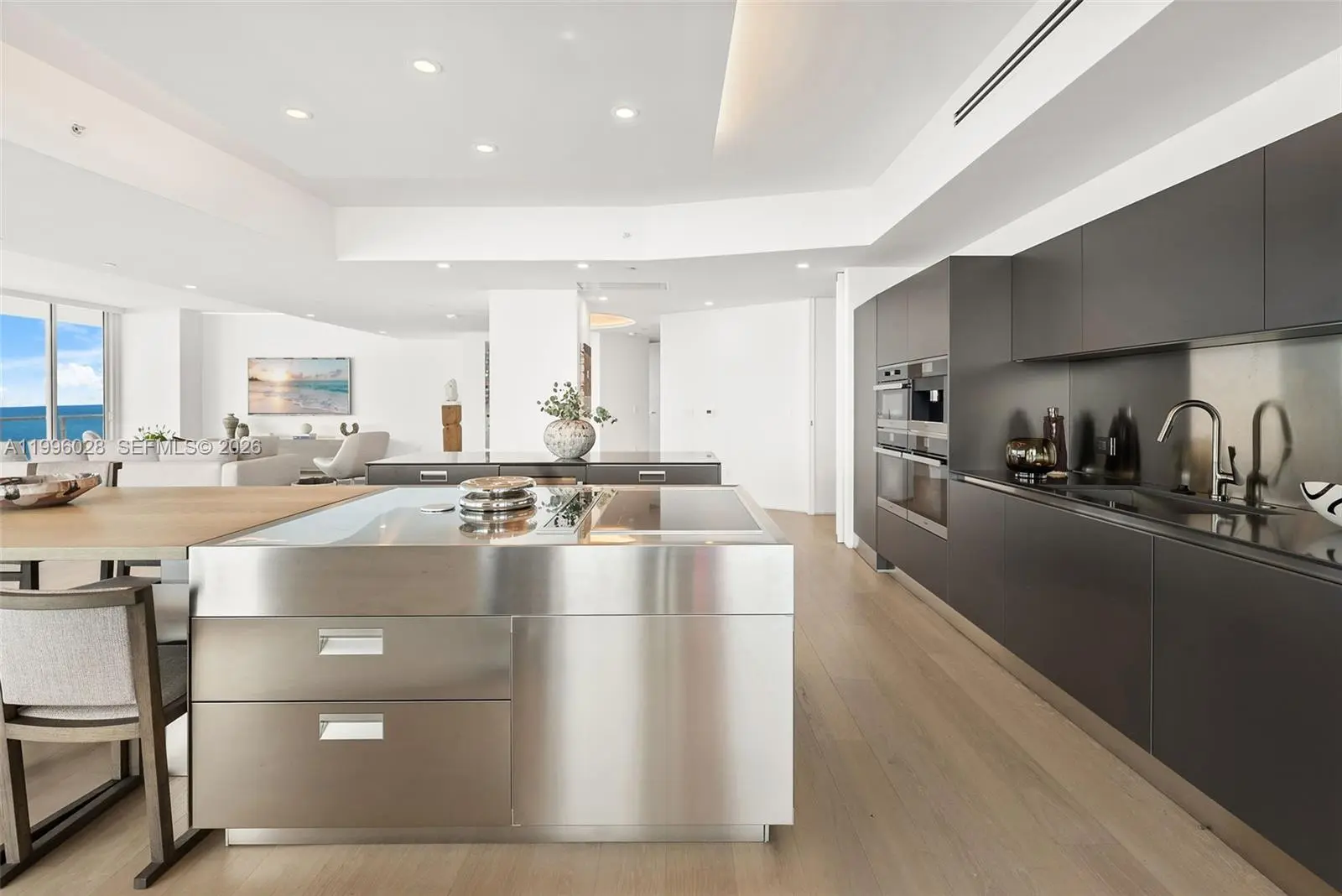 Rarely available and most coveted combination of 2 units with direct ocean views. A private foyer with direct elevator access leads into this spacious flow-thru floor plan consisting of 5 bedrooms 4 full baths and a media room, spanning 4378 sq.ft. of living space and a wrap around balcony, light Oak floors, chef's kitchen with cooking island, double ovens, double dishwashers and pantry closet perfect for entertaining and large families. Continuum offers 13 acres of luxurious resort amenities such as 1000 FT of white sandy beach, full service beach/pool club, 2 lagoon shaped pools, restaurant/bar, 3 tennis courts with Pro-Shop. Gym/spa, lap pool, security, valet and concierge, 3 assigned parking spaces.