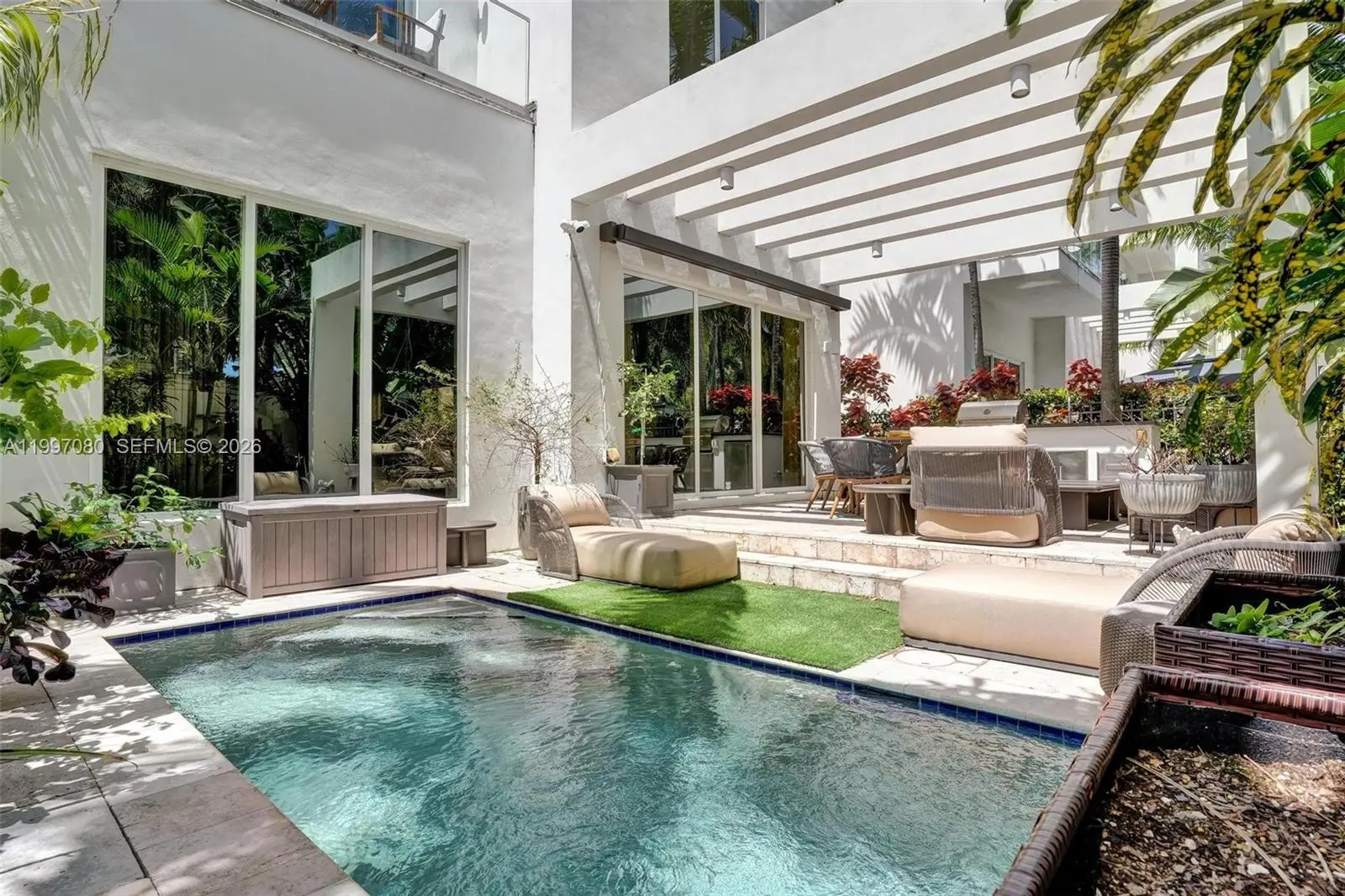 Experience elevated coastal living in this exquisitely furnished 5-bedroom luxury residence, ideally located in the heart of Sunny Isles Beach—just steps from the ocean. Rarely available and impeccably designed, this home offers the perfect blend of sophistication, comfort, and effortless elegance. From the moment you walk in, you’re welcomed by bright, sun-filled living spaces, high-end designer finishes, and a sleek modern kitchen with premium appliances—perfect for everyday living and elegant entertaining. Step outside and enjoy true indoor-outdoor living. Your private rooftop terrace is perfect for sunset gatherings or peaceful evenings under the coastal sky. The lush backyard, complete with a sparkling pool, creates a serene, resort-style escape rarely found in townhome living. Located in one of South Florida’s most prestigious beachfront communities, you’ll enjoy easy beach access along with close proximity to world-class dining, luxury shopping, and vibrant entertainment.