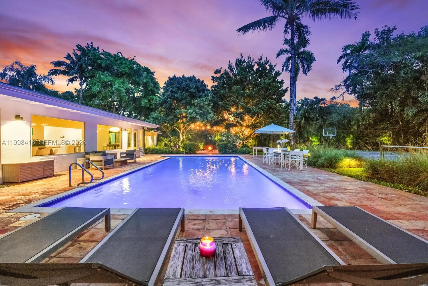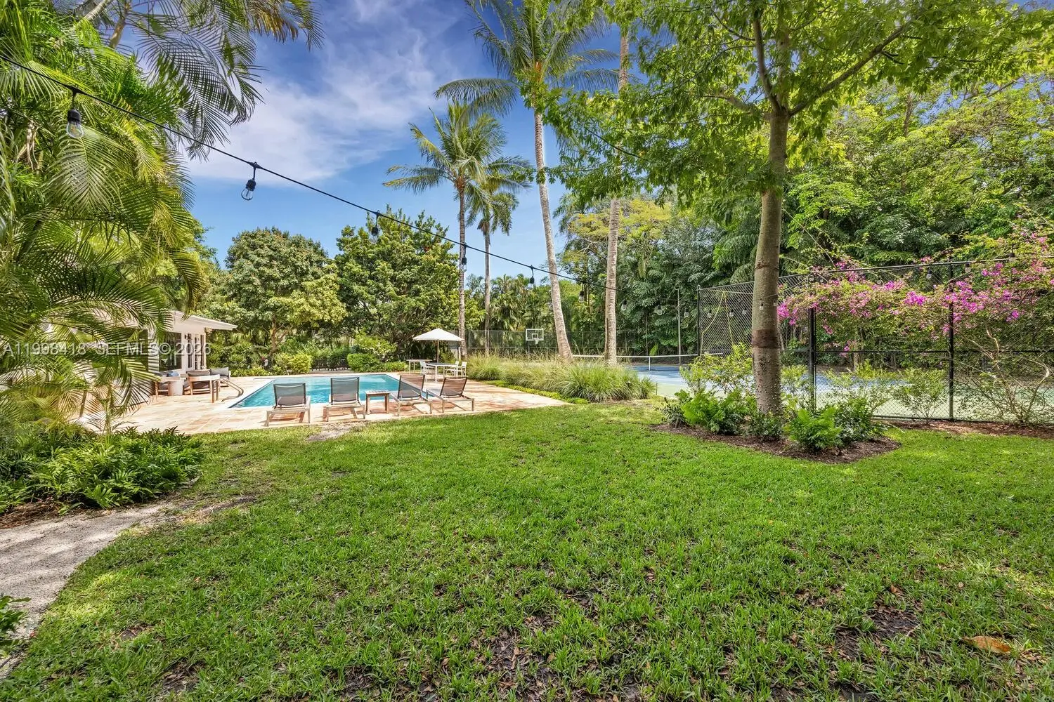 Discover a truly magical home, nestled in the heart of luxury in Pinecrest. This impeccably renovated 5-BR/ 5-BA fully-furnished home feels like a boutique style resort, offering a blend of elegance and comfort. Step inside and be captivated by two separate living spaces & dining areas overlooking a lush garden. Lounge by the sparkling pool, perfect your serve on the tennis court, shoot hoops on the basketball court or relax and unwind in a cozy outdoor area! The perfect home for hosting memorable gatherings in a picturesque setting. Situated in a highly sought-after top school district, minutes from dining and parks. Incredible features include a gated property on a quiet cul-de-sac, 2-car garage, impact windows & doors, new a/c's, laundry room, and built in BBQ.