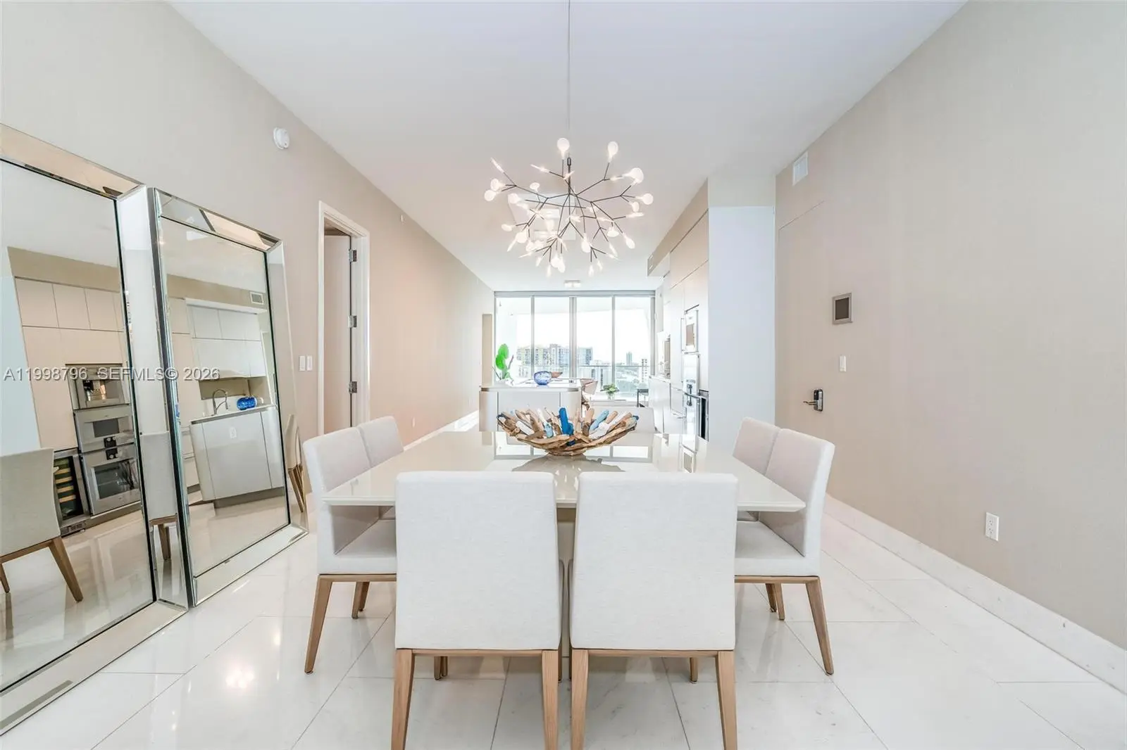 Tastefully designed and professionally decorated, this spectacular flow-thru apartment offers both direct ocean and sunset Intracoastal views. Floor to celling windows with sliding doors and balcony access in all rooms. Spacious and private primary bedroom suite features a large walk-in closet, and a spacious spa-like bathroom with separate tub, shower and spa toilet. 814 SF of additional exterior terrace space is divided amongst 2 huge terraces facing direct East and West. The elegant kitchen features Gaggenau and Sub-Zero appliances, wine cooler, cappuccino maker, speed oven/microwave. Laundry room with sink, and den with full bath provide the perfect space for live-in help. Private elevator leads you in to your private foyer directly from the garage, lobby and beach. Designed by Herzog de Meuron, Jade Signature is a beach front luxury full service building with 3 full floors of amenities: Beach Bar & Grill, toddler’s sensory playroom, teen lounge, clubroom, breakfast & teatime lounge, 2 pools billiard table & poker room, as well as a signature Tata Harper spa, full gym and more. 1 year or less rental possible.