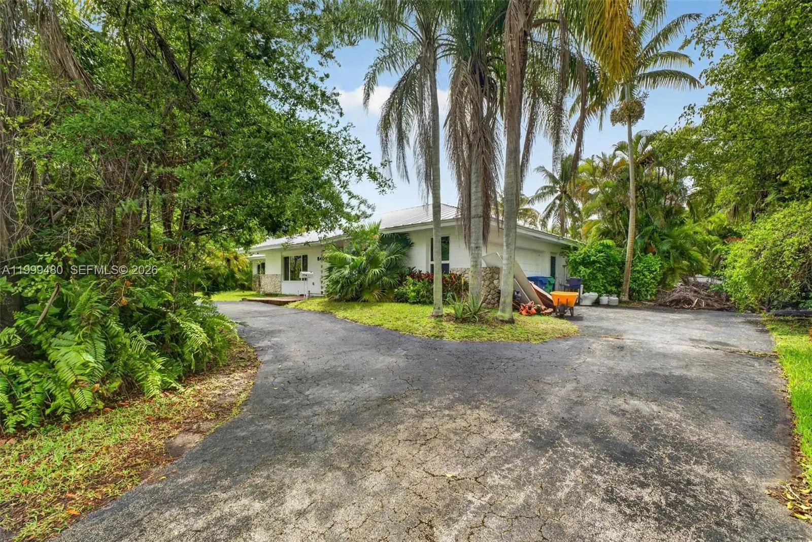 Beautifully maintained home in the heart of Palmetto Bay, offering 4 bedrooms, 2.5 bathrooms and 2,860 SF, set on a lush 18,750 SF corner lot on a quiet, low traffic street. Features a desirable split floor plan with a private primary suite, tile floors throughout, and abundant closet space. Spacious family room and a well equipped kitchen, perfect for everyday living and entertaining. Laundry room with sink adds convenience. Enjoy your private saltwater pool, ideal for relaxing or hosting year round. Additional highlights include a circular driveway, 2 car garage, and durable metal roof. Gas water heater, washer and dryer. Located near top rated schools, including Coral Reef Senior High School and Elementary, plus parks, shopping, and dining nearby. DU required with offer.
