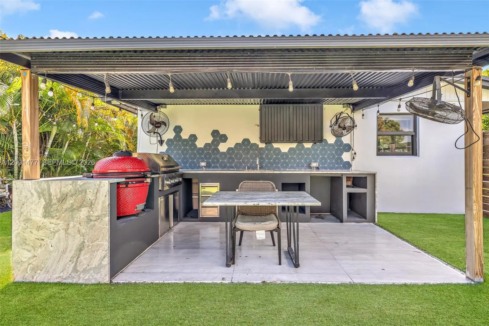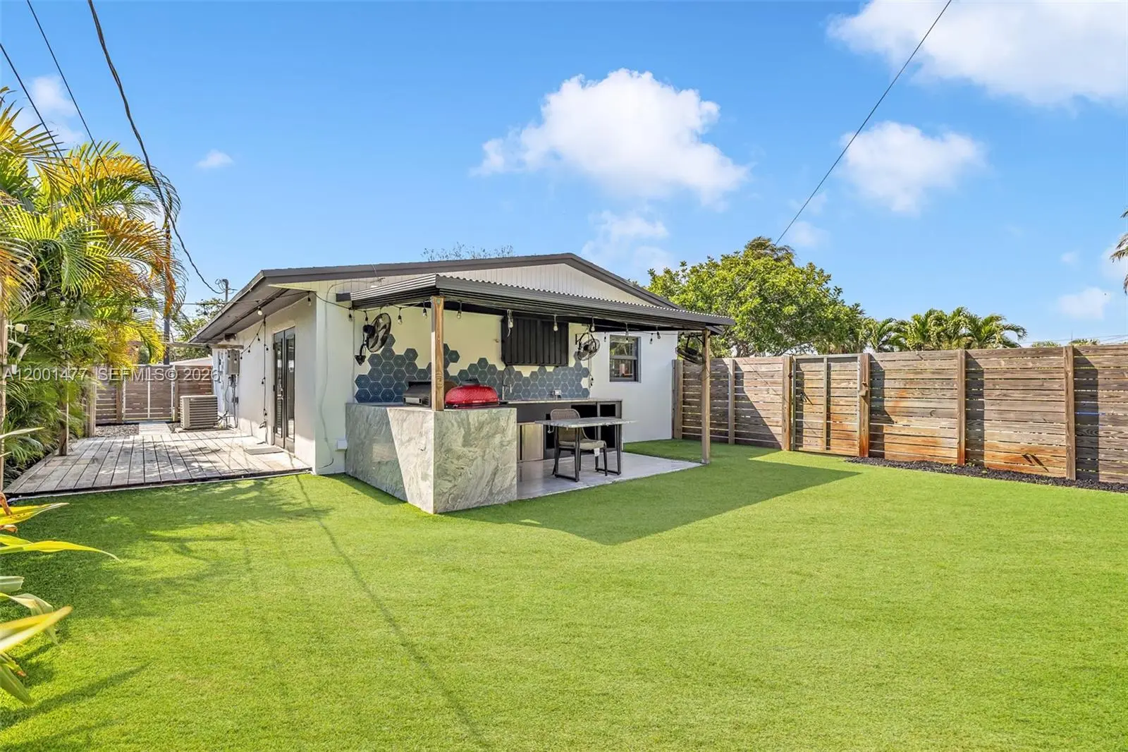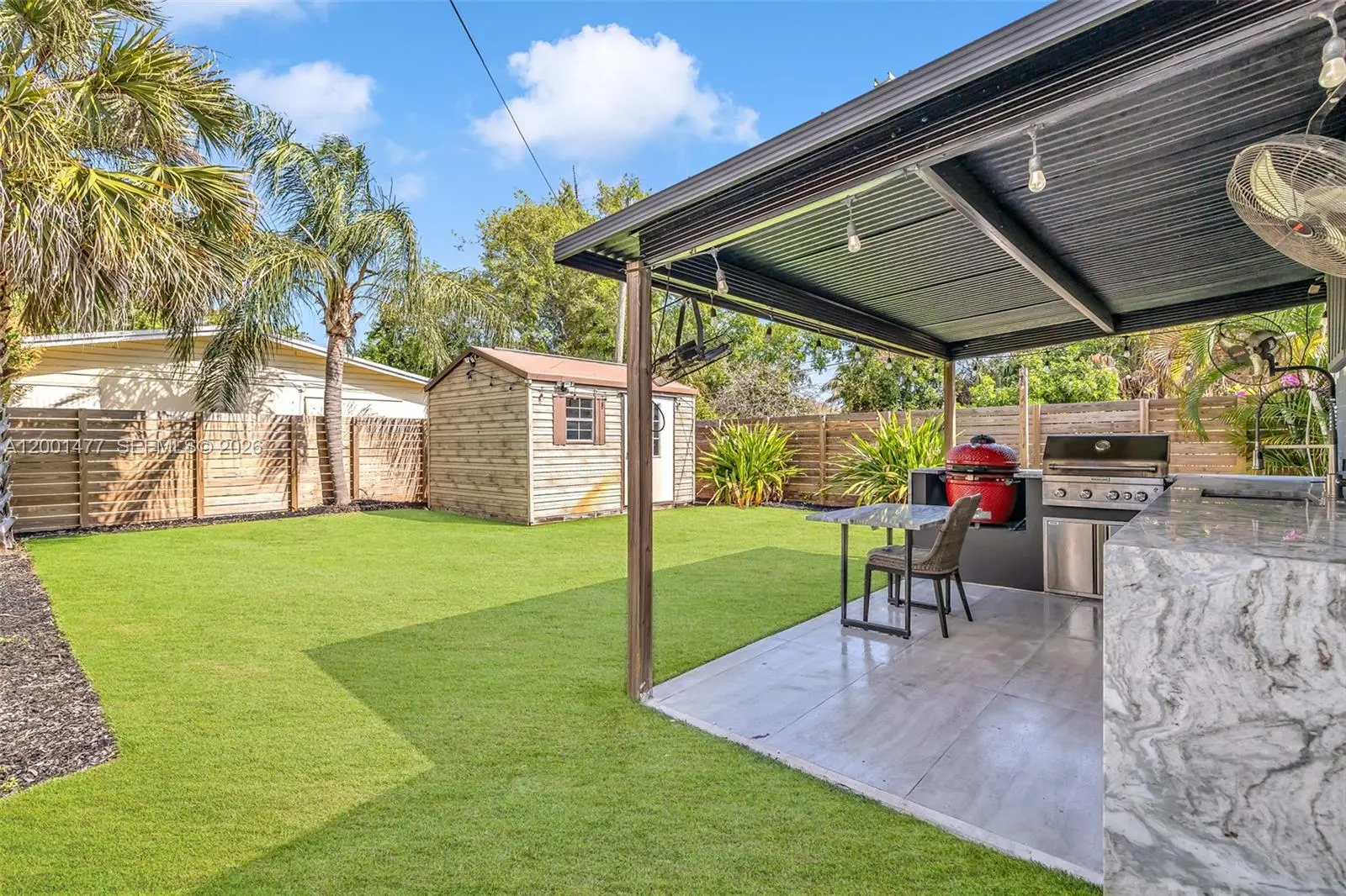 Welcome to the home where everyone ends up hanging out. Located on a desirable corner lot, this property delivers the ultimate Florida lifestyle with an outdoor setup built for hosting, relaxing, and making memories. Out back, enjoy a turf yard designed for low-maintenance living and maximum fun, plus a covered porch featuring outdoor TV and fans—perfect for game days, family parties, or laid-back nights outside. The backyard is fully equipped with a true outdoor kitchen that conveys with a Louisiana Egg and a fully functioning KitchenAid gas grill, plus an additional BBQ grill setup—ready for serious entertaining from day one. Need storage? You’ve got it: a large storage shed plus a second shed dedicated for lawn mower/equipment, keeping everything organized and the yard always guest-ready. Inside, enjoy tasteful updates including a recently remodeled bathroom and a home that’s been improved where it matters most: New roof (2025) Fence replaced (2023) AC replaced approx. 6 years ago (2020), Impact Windows & Doors. This is a rare combination of corner-lot space, privacy, upgrades, and a backyard that feels like a destination. Come see it—this one lives like your personal entertaining headquarters Unit Vacant and ready to move.