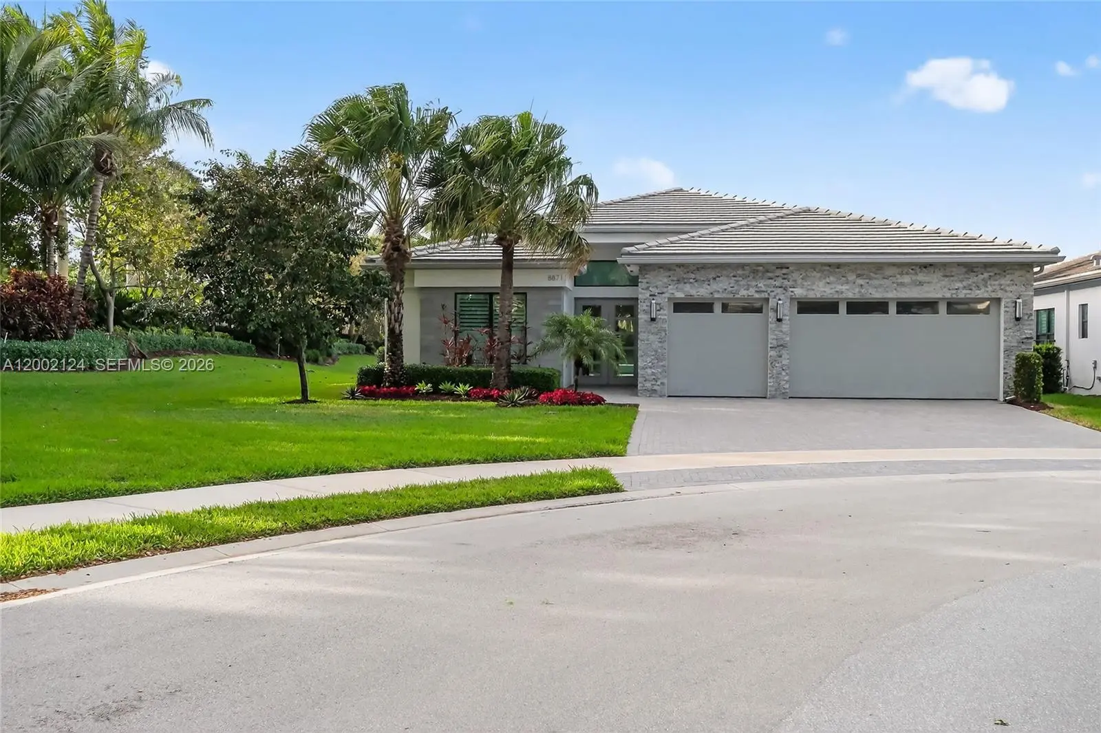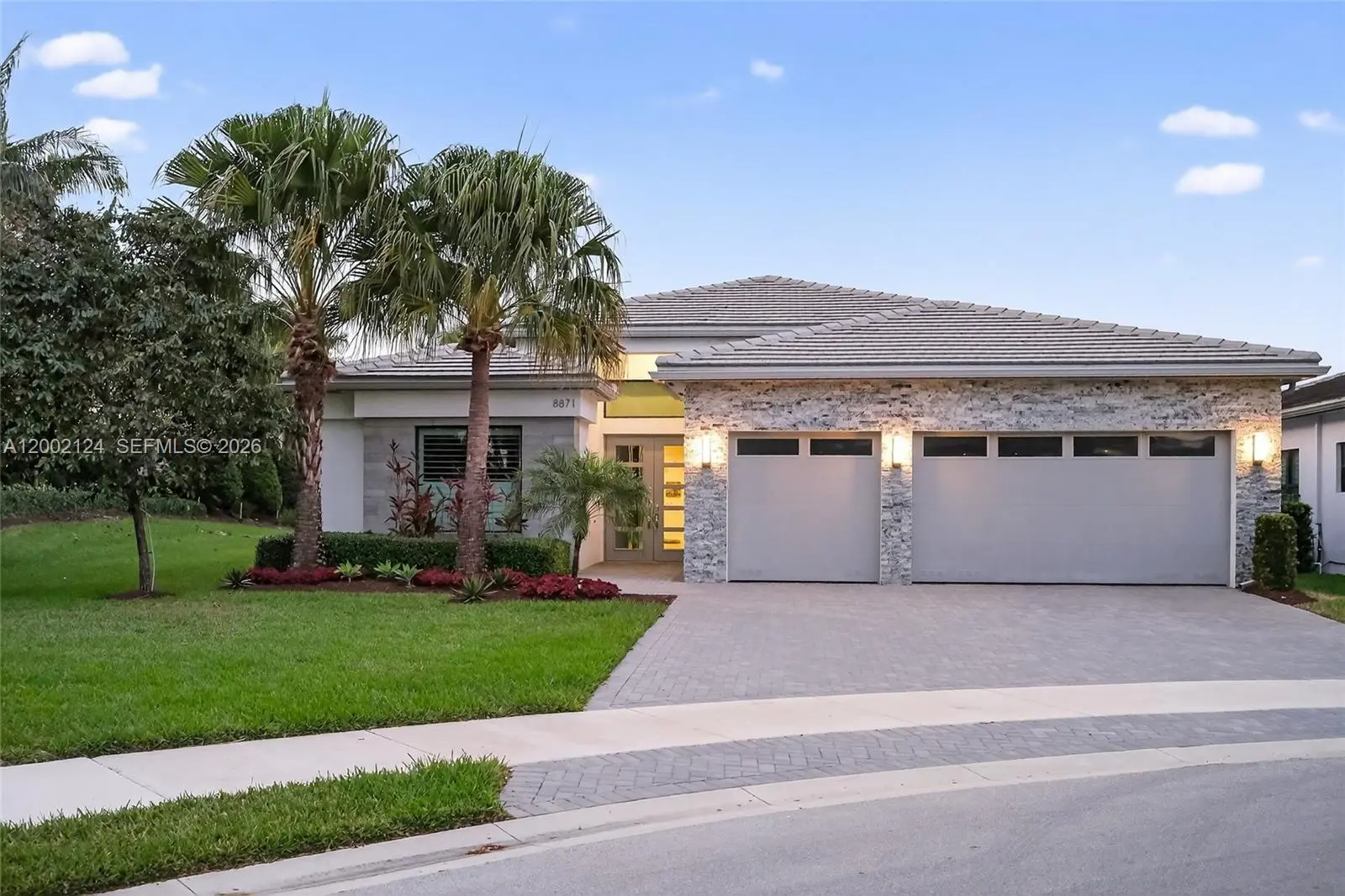 Rare waterfront cul-de-sac opportunity in the highly sought-after Lotus community of Boca Raton. Situated on a private 8,753 sq ft corner lot with beautiful lake and garden views, this upgraded home offers 2,759 A/C sq ft with 3 bedrooms, 3.5 baths and a versatile den/office easily convertible to a 4th bedroom. Features include Italian wood-look tile throughout main living areas, premium hardwood flooring in the primary suite, 10’ & 11’ coffered ceilings, custom barn doors, Cambria quartz countertops, ceiling-height cabinetry, GE Profile & Café appliances and extensive custom lighting. Outdoor living features a covered patio and a custom pool & spa with heater, salt system and Jandy controls. Hurricane impact glass, 3-car garage with epoxy floor and custom storage. Home may be available furnished. Enjoy resort-style living in Lotus with clubhouse, restaurant, pools, fitness center, tennis and pickleball.
