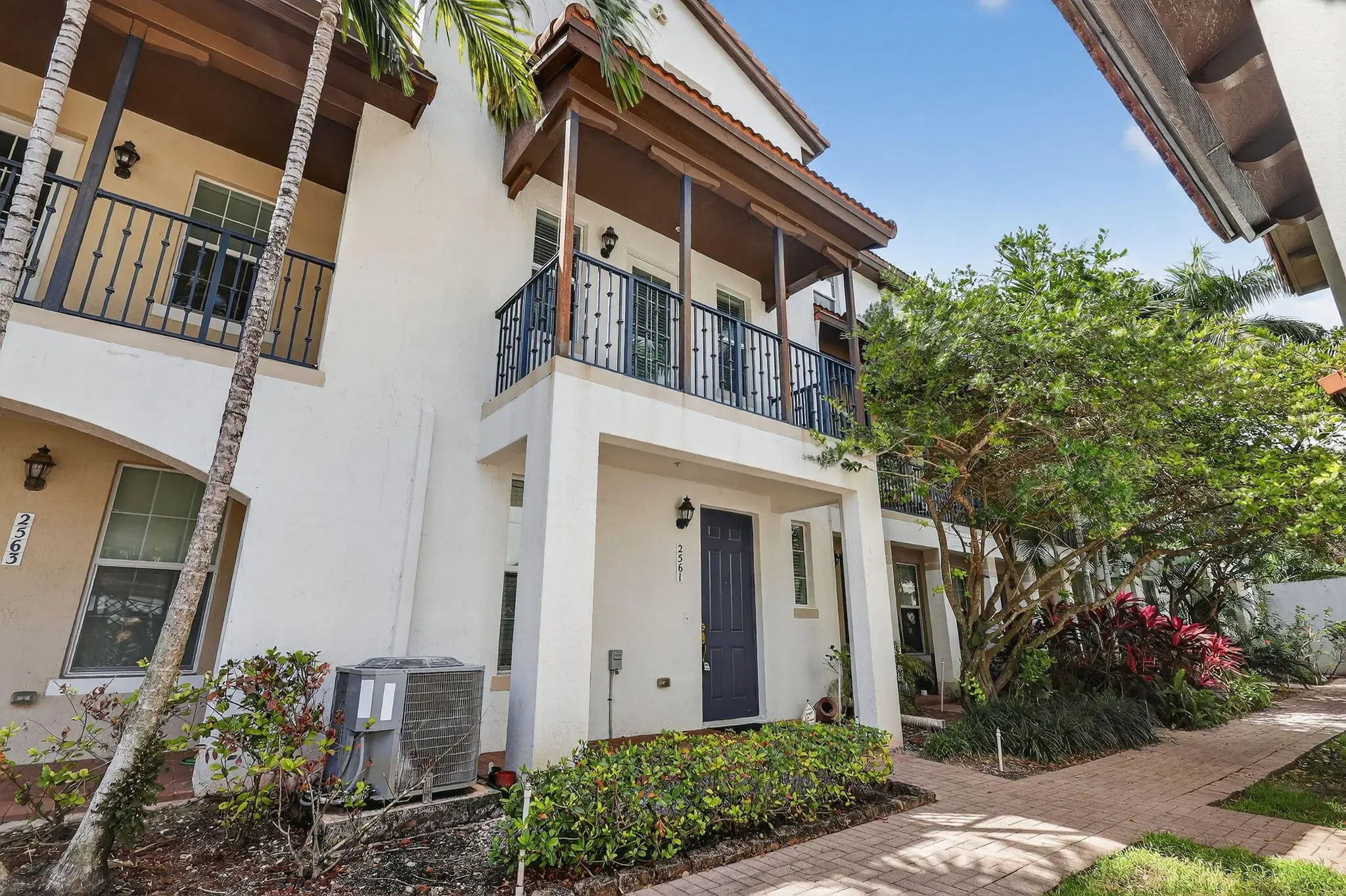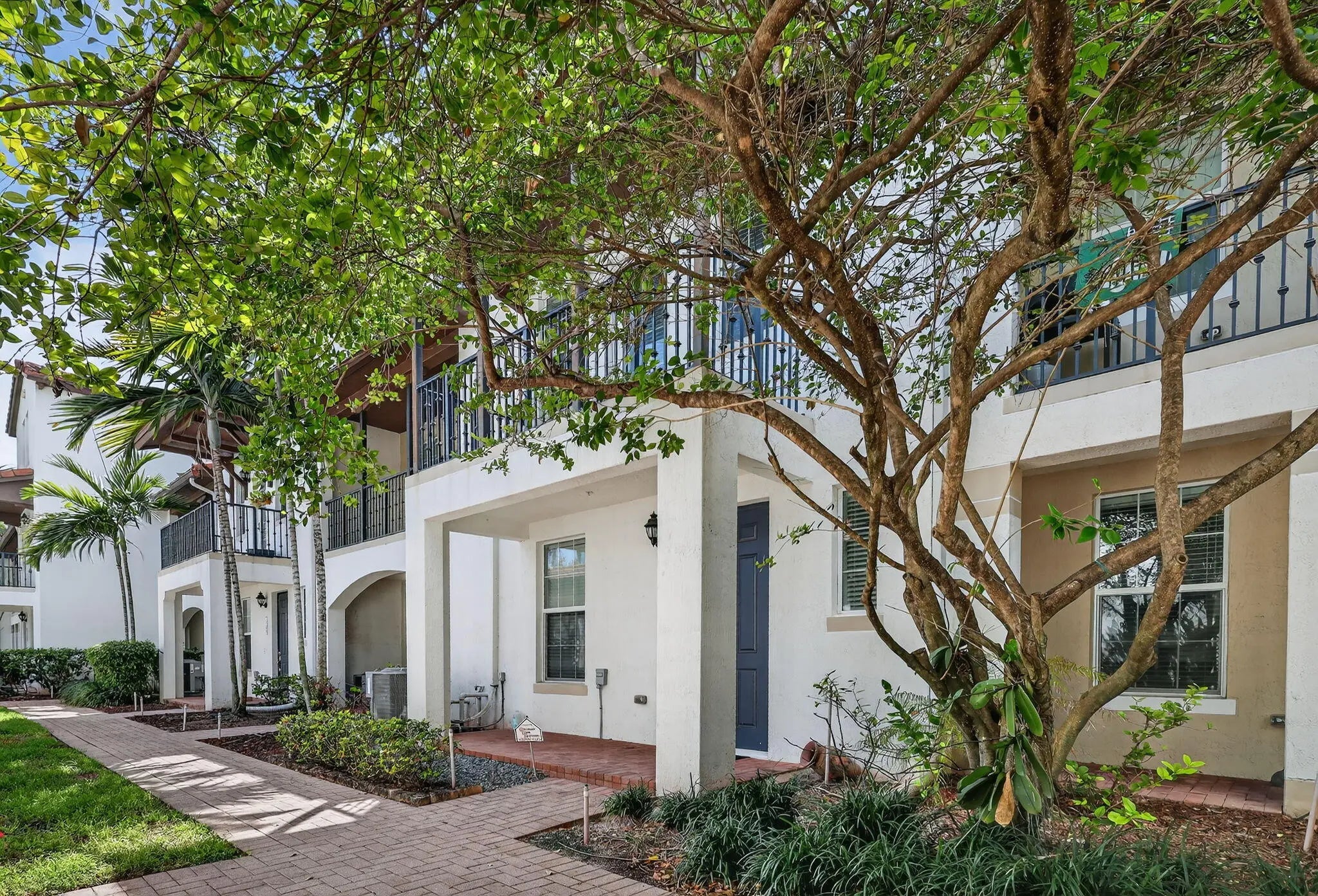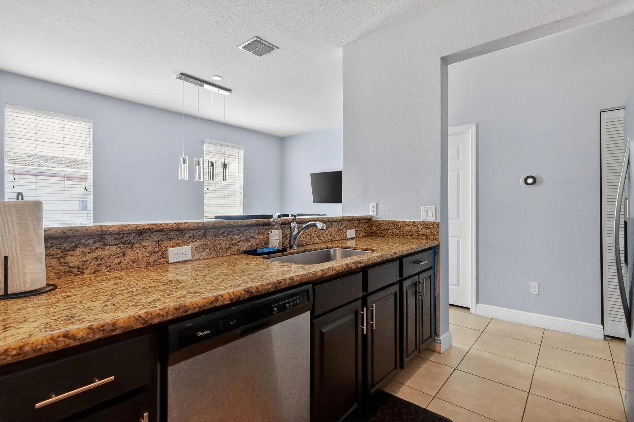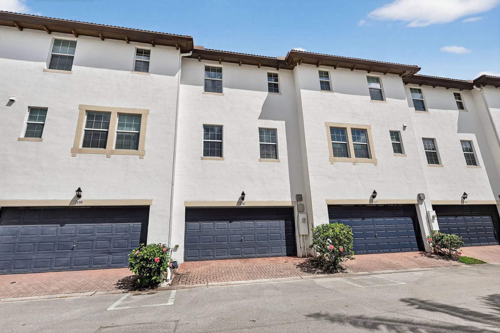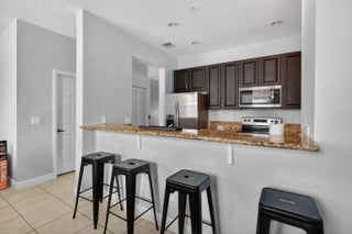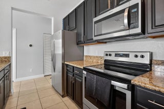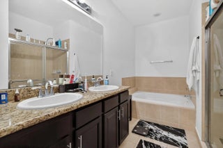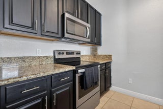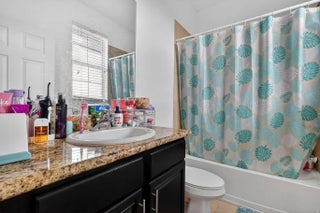 3BR/3.5BA home with 2-car garage and 2+ parking spaces. Kitchen features granite countertops, electric range, dishwasher, microwave, and disposal. Tile and carpet flooring throughout. Full bedroom and bathroom with walk-in shower on the 1st floor—ideal for guests or multigenerational living. Upstairs primary suite includes walk-in closet, dual sinks, and tub/shower combo. Guest bath upstairs also features a tub/shower. Private balcony and in-unit washer/dryer.