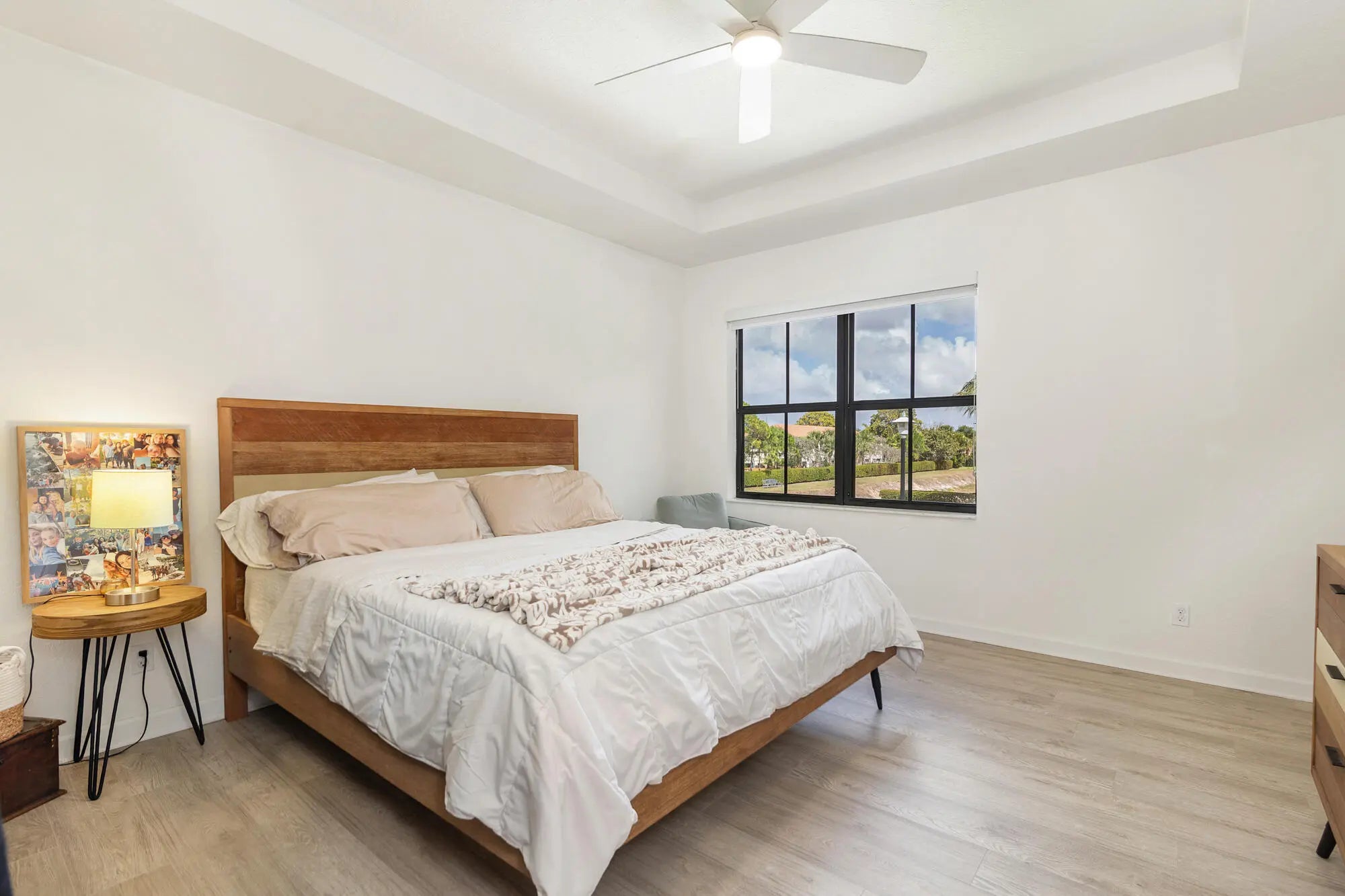 Beautifully maintained 3-bedroom, 2.5-bath end-unit townhome built in 2018 with durable CBS construction and peaceful lake views. The open-concept floor plan features a modern kitchen with granite countertops that flows seamlessly into the main living and dining areas—perfect for both everyday living and entertaining. Enjoy tile and upgraded wood flooring throughout, adding style and easy maintenance. Half of the garage has been thoughtfully converted into additional interior living space, ideal for a home office, gym, playroom, or flex space to suit your needs. Residents benefit from low HOA fees, a community pool, and the flexibility of immediate rentals, making this an excellent option for both homeowners and investors. Ideally located close to shopping, dining, and local schools, this home offers comfort, convenience, and beautiful surroundings in the heart of town.