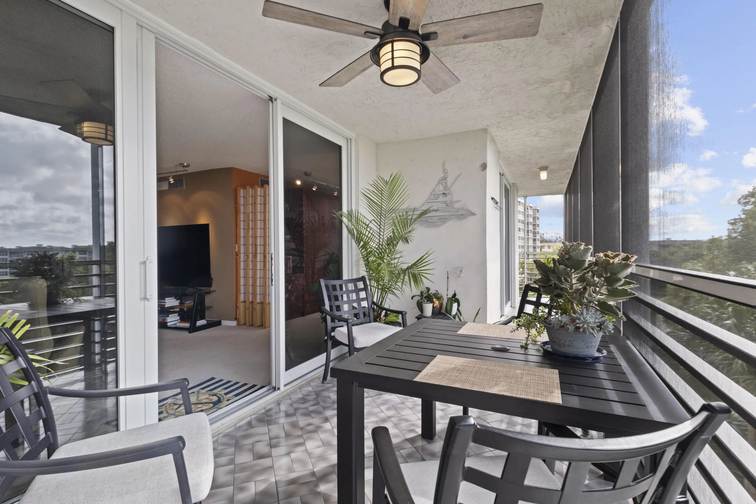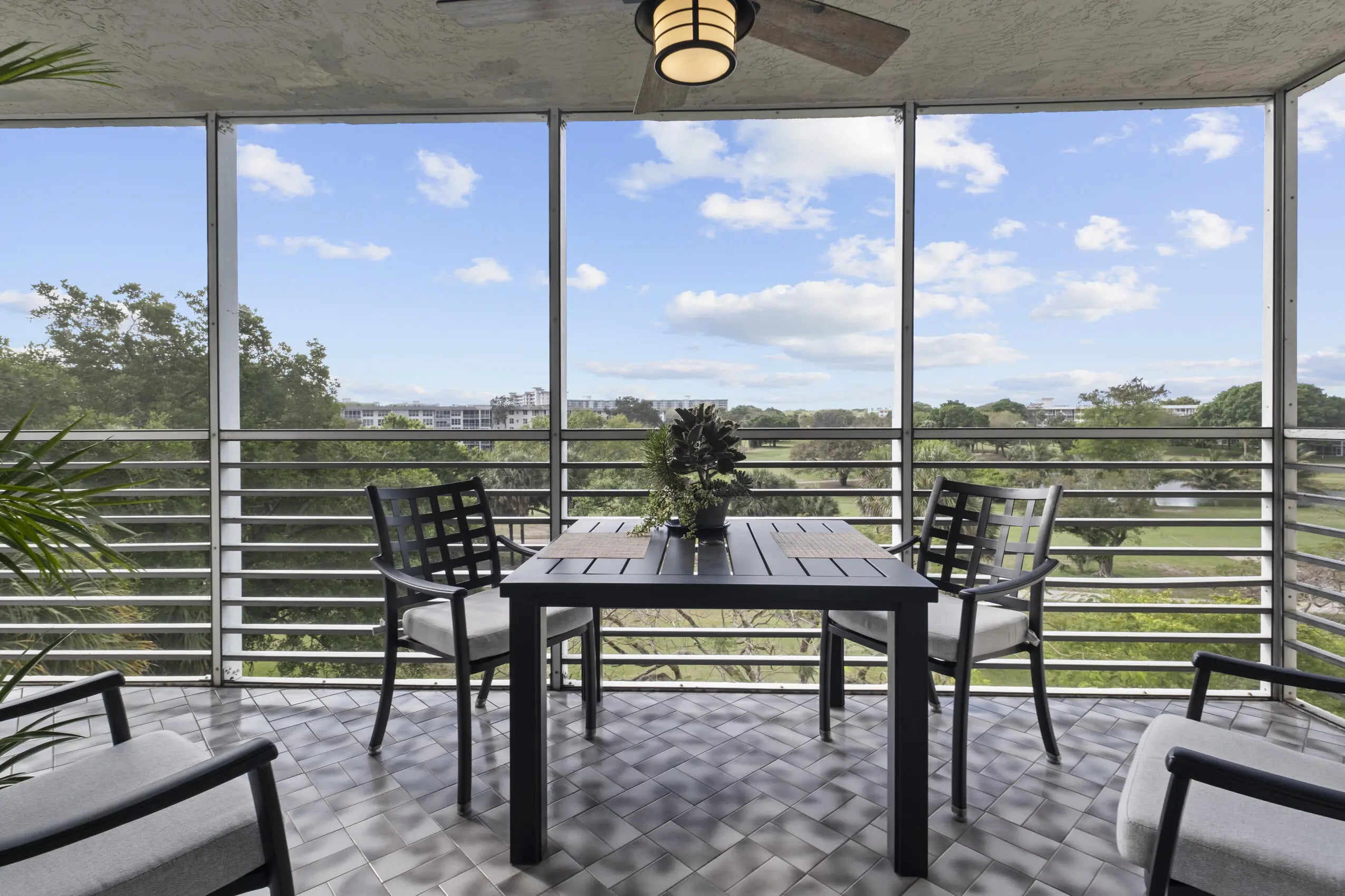 Bright and spacious 3-bedroom, 2-bath corner unit offering abundant natural light throughout—an advantage unique to corner residences. This well-maintained home features new impact windows installed in 2024 and plantation shutters throughout. Enjoy golf course views from the screened patio, perfect for relaxing outdoors. AC installed in 2019 and brand-new hot water heater (2026). Residents have access to three community pools. The building is financially strong and well-managed, offering long-term peace of mind—something savvy buyers appreciate. Fire sprinklers installed (no future retrofit required), 40-year inspection completed and certified, assessments paid, fully funded reserves, and conventional loan eligibility. Minimum 700 credit score, 10% down required by association.