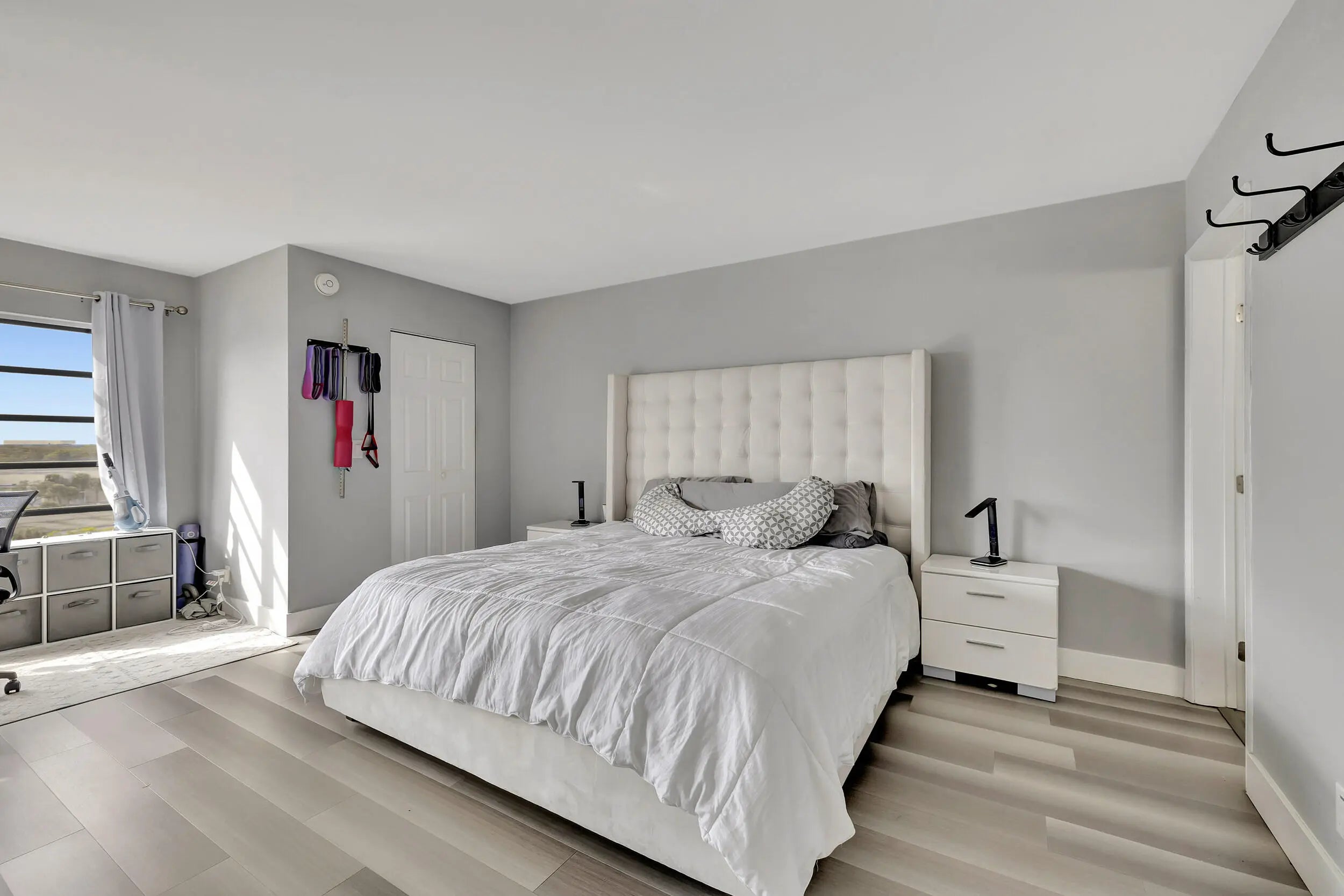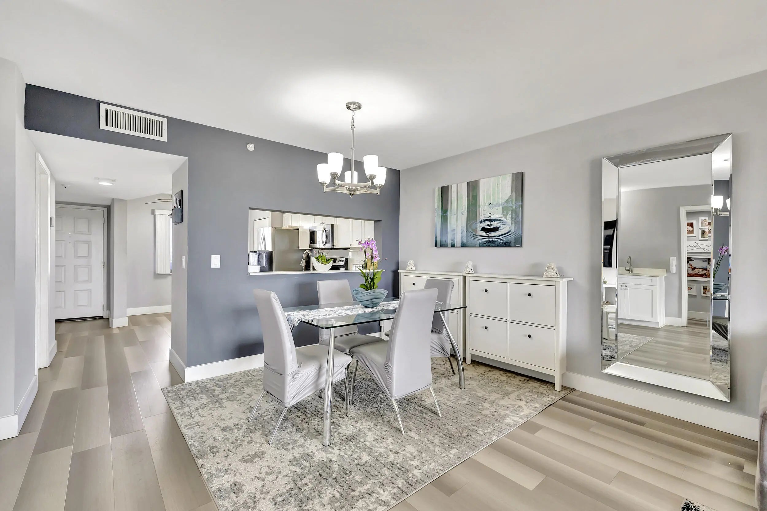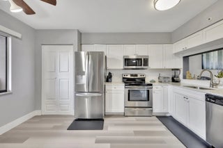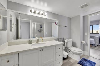 Discover this spacious 2-bedroom, 2-bath condo with stunning skyline and water views from its desirable 7th-floor location. The open and well-designed layout offers generous living, complemented by a private screened-in balcony—perfect for morning coffee or evening relaxation. The updated kitchen features stainless steel appliances and a contemporary design. Both bathrooms have been recently updated. A custom wet bar with sink is located off the dining area, ideal for entertaining. The oversized primary suite opens to the balcony and includes two walk-in closets plus a bonus sitting area with beautiful views, perfect for a home office. Separate laundry room with full-size washer+dryer. AC and W/H replaced in 2019. Fire sprinklers updated in 2020. All-age community and pet friendly.