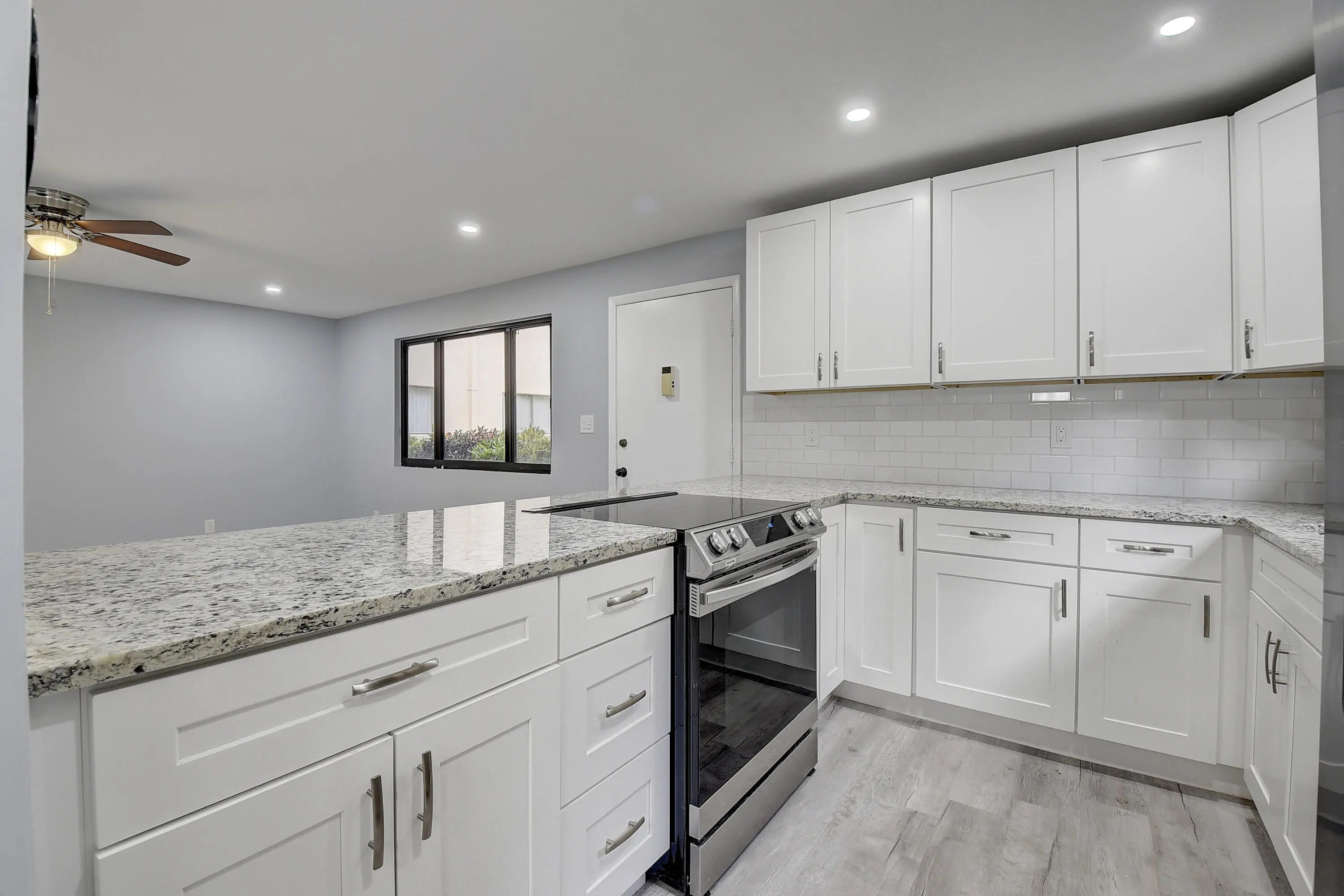 REDUCED! Highly Motivated seller offering a value-driven opportunity in the heart of Delray Beach. Welcome to the "Fort Knox Condo" (all offers given consideration) — a fully renovated 2-bedroom, 2-bath lakefront residence featuring full impact glass, new A/C, new hot water heater, & an upgraded electrical panel for peace of mind. Interior highlights include luxury vinyl flooring, a modern kitchen with white shaker cabinets, stainless steel appliances, and updated bathrooms with granite countertops & designer finishes. Both bedrooms offer walk-in closets and access to a screened & glass-enclosed patio with lake views, storage, & laundry. Located in a quiet, well-maintained community close to shopping, dining, & major South Florida conveniences. Seller is open to contributing toward buyer costs & incentives— contact listing agent for details. Priced to encourage activity and serious offers.