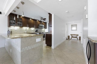 Enjoy coastal South Florida living in this updated 3-bedroom, 2-bath condo in the desirable Palm Aire at Coral Key community in Lighthouse Point. The bright, open layout features neutral tile flooring, spacious living and dining areas, and large sliding doors leading to a private screened balcony with direct water views—ideal for morning coffee or watching boats pass. The kitchen includes granite countertops, stainless steel appliances, custom wood cabinetry, and a breakfast bar that opens to the main living space. Both bathrooms are renovated with modern tile, updated vanities, and a glass-enclosed tub/shower. Dockage is available for lease, offering convenient boating access. Community amenities include a heated pool, clubhouse, BBQ areas, shuffleboard, and landscaped waterfront ground
