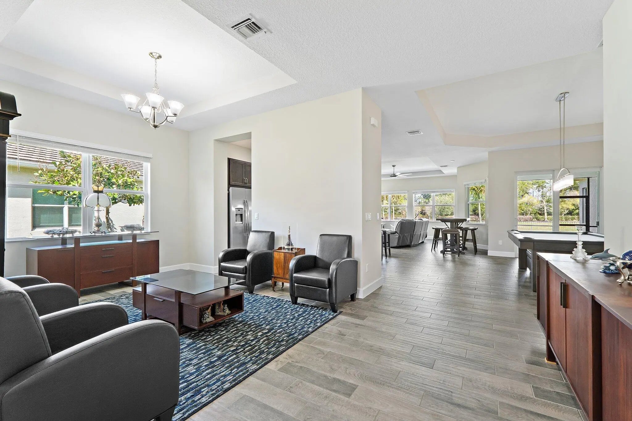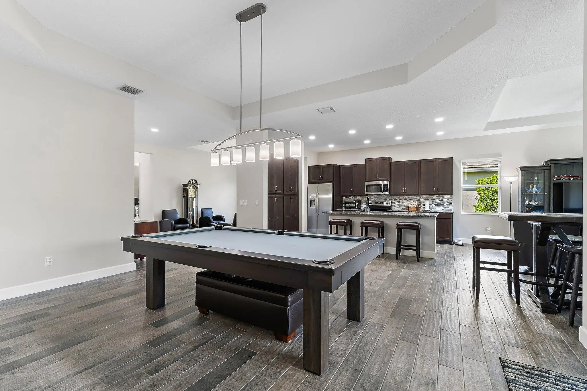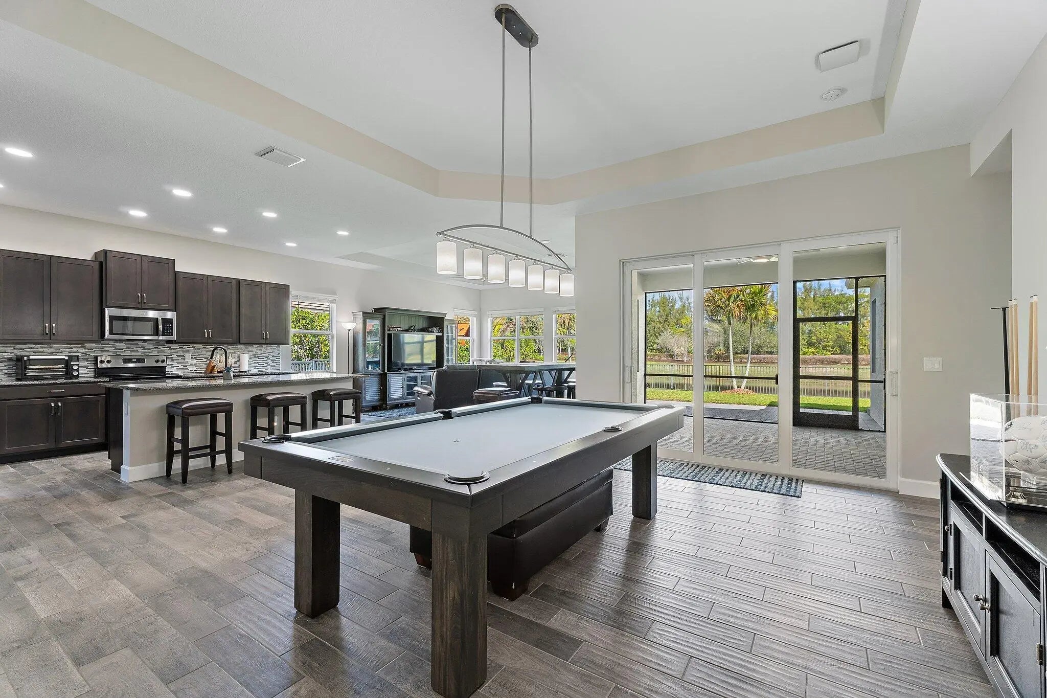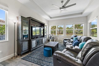 Rarely available Sanderling model located in the highly sought-after community of Westlake, Palm Beach County's newest city. This spacious residence offers a 3-way split floor plan with 4 bedrooms plus an office/den, 4 full bathrooms, and a 3-car garage, providing both comfort and functionality. Newer construction built in 2020, this home features impact windows and doors throughout, offering peace of mind and energy efficiency. The garage is upgraded with epoxy flooring and custom wall built-ins, ideal for organization and storage. This premium lot provides a fully fenced in oversized backyard with private preserve and water views, perfect for relaxing and entertaining with an extended and screened in back patio. Ideally located with convenient access to major highways, top-rated schools, shopping, dining, and beaches. Please note: The commercial-grade IC real-time security camera system installed throughout the home does not convey with the sale, but may be negotiated.