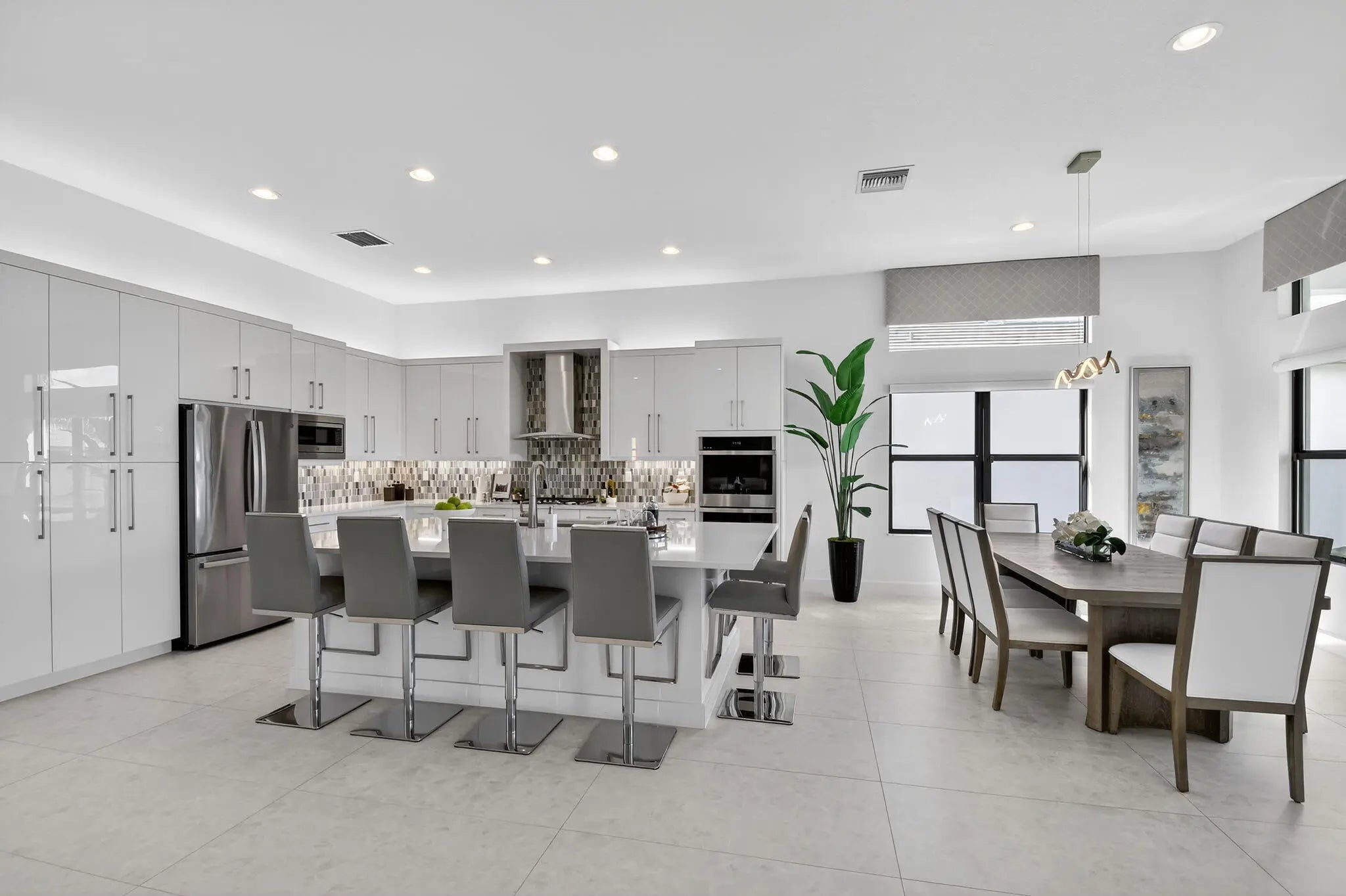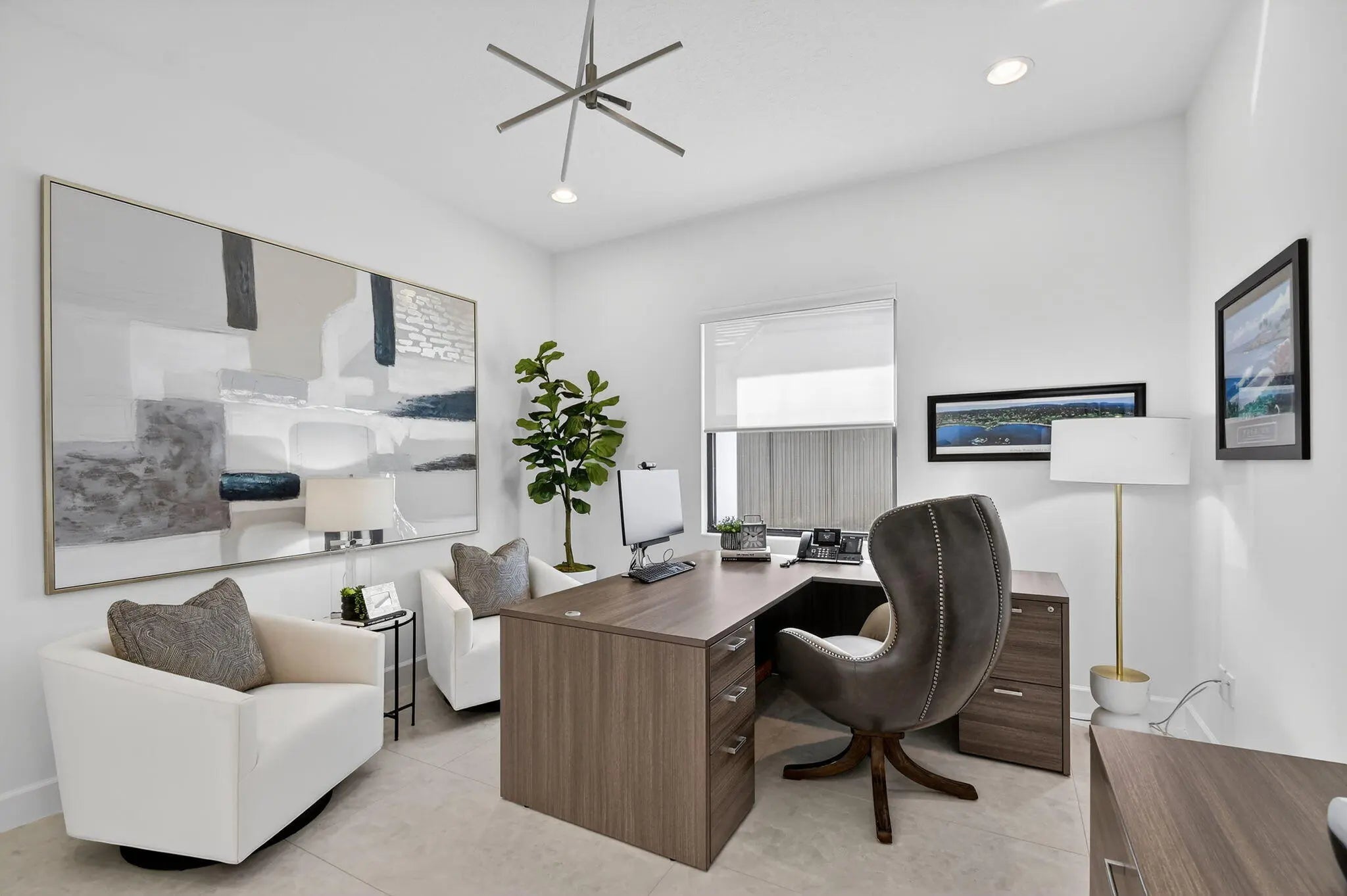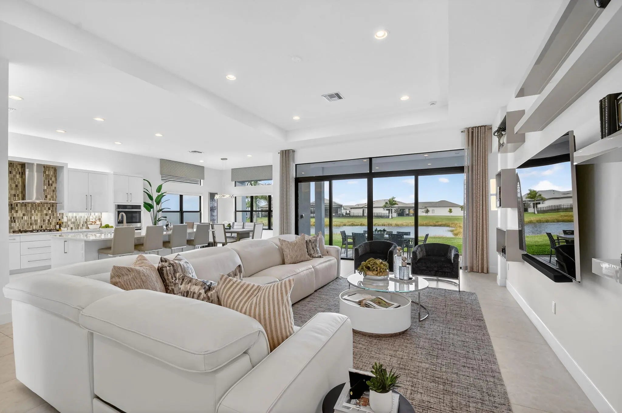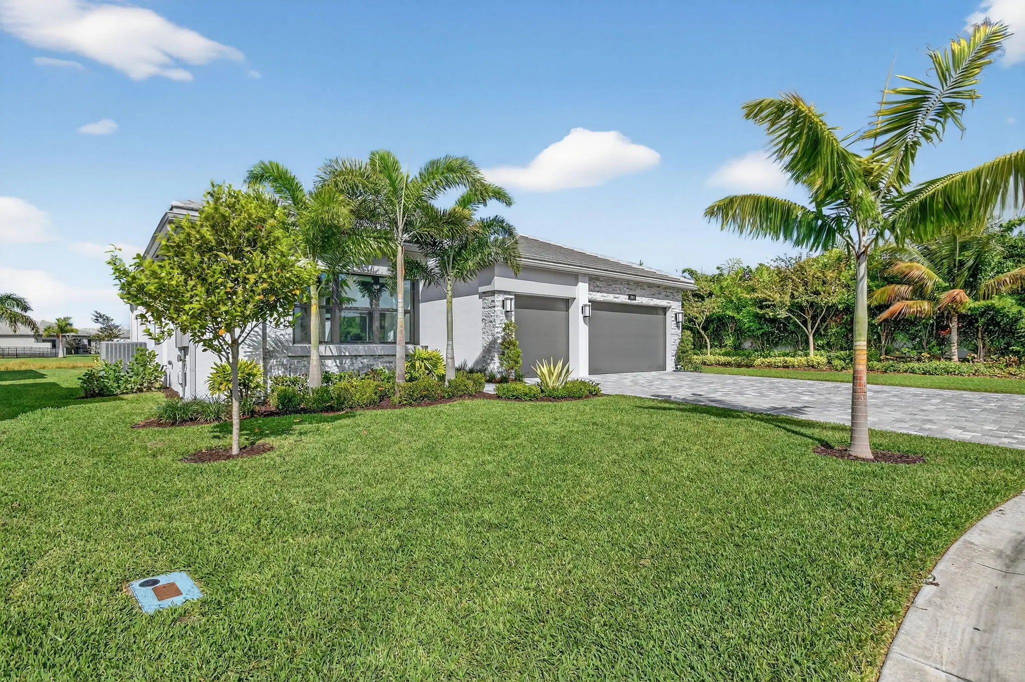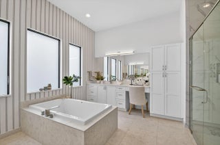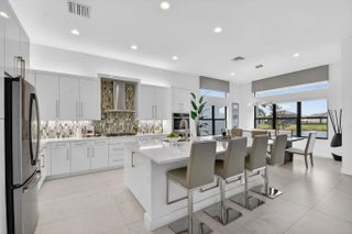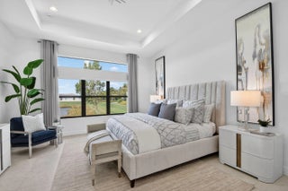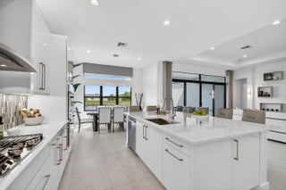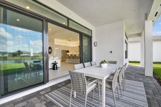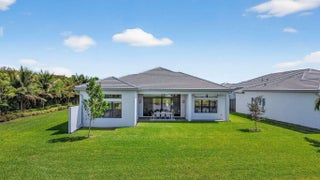 This exquisite lakefront home with a prime cul-de-sac location, offering gorgeous sunsets & privacy galore. This bright, move-in-ready 2025 Jade in Valencia Grand features an open, spacious floor plan w/3 BR plus a den/office, 3.5 BA, and an expansive great room ideal for entertaining. The gourmet kitchen w/quartz countertops, tiled backsplash, upg cabinets, gas cooking & double oven. The primary suite boasts a coffered ceiling, two large outfitted walk-in closets, & a spa-like primary BA featuring a soaking tub & lg shower. Add'l features include designer 24x48 porcelain tile flooring, 11-foot ceilings, a utility room with sink & cabinetry, remote window treatments, a full-house Generac generator, epoxy-finished 3-car garage--and so much more. Every element has been meticulously selected to make this residence truly one of a kind. Valencia Grand embraces a resort-style lifestyle. Residents enjoy access to a sophisticated clubhouse featuring a full-service restaurant and bar, multiple pools, indoor and outdoor pickleball and tennis courts, bocce, a state-of-the-art fitness center, spa, salon, yoga garden, entertainment venues with live shows and events, and much more. This exceptional property is ready for immediate occupancy, allowing you to begin enjoying the finest Florida living today.