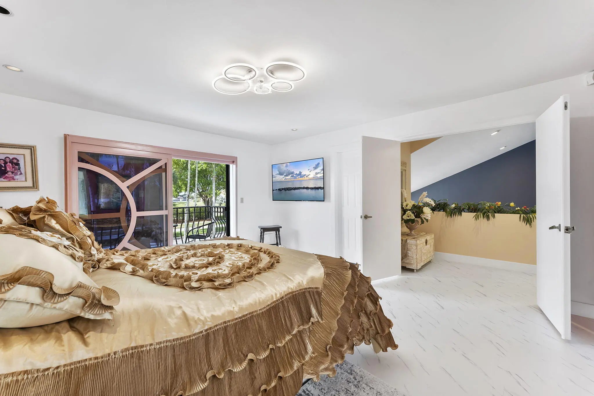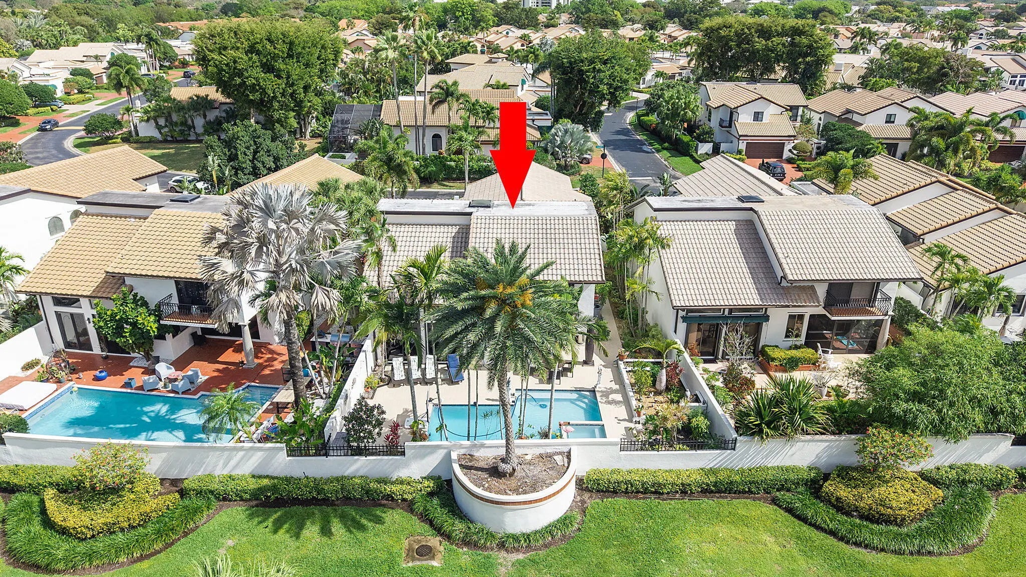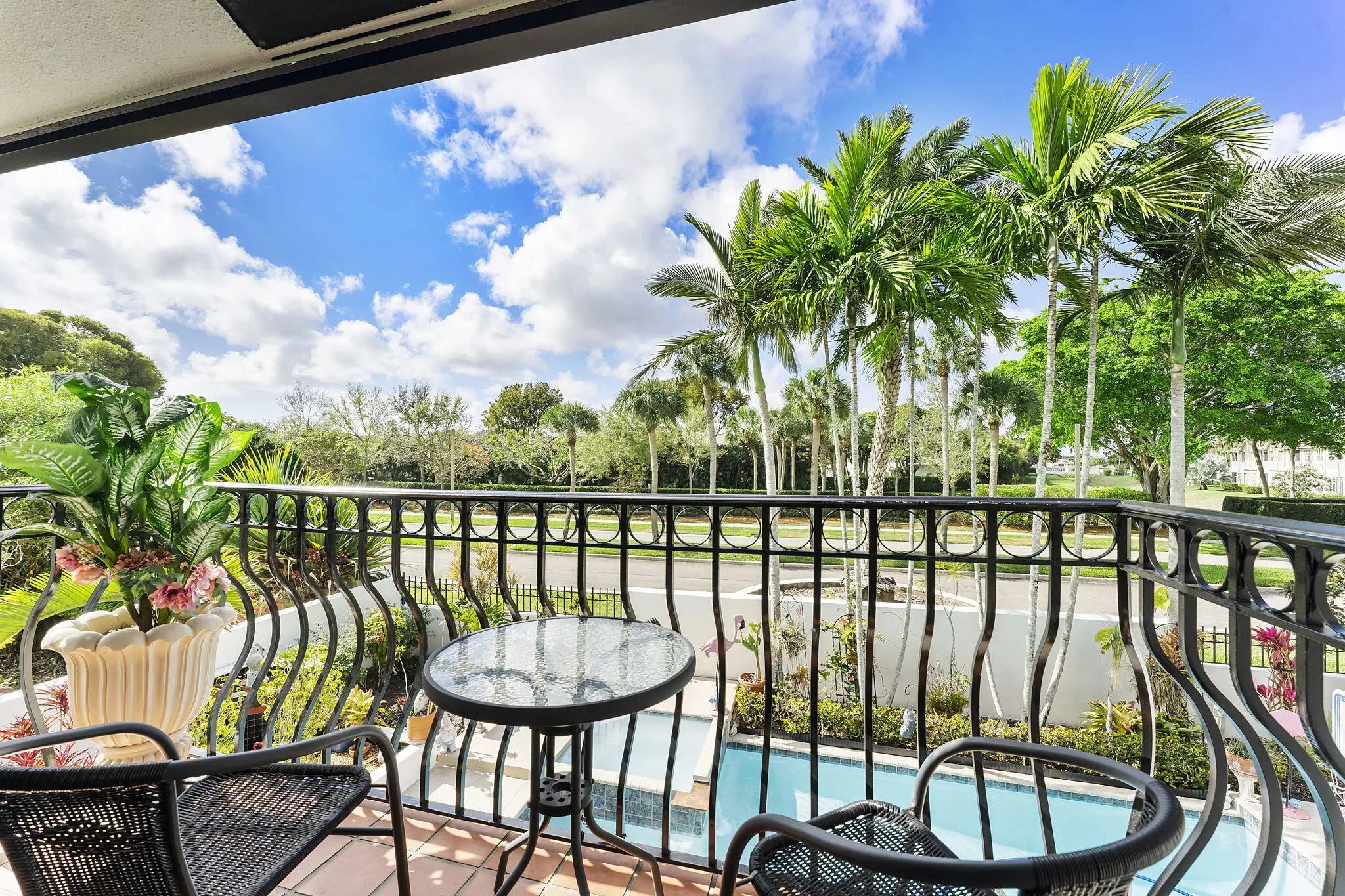 Experience the best of Florida living in this beautifully maintained single-family home, rarely available in the prestigious guard-gated community of Villa Flora at Boca Pointe, where country club membership is optional. This spacious residence features 4 bedrooms, 3 full bathrooms, and over 3,000 square feet of living space, offering a versatile layout ideal for both everyday living and entertaining. Step outside to your private heated pool with spa, complemented by an expansive updated covered patio and lounging area—perfect for relaxing or hosting guests in true South Florida style. Inside, the home offers multiple living areas designed for family gatherings and casual get-togethers. The kitchen features a center island and peninsula with countertop seating, providing both functionality and ample workspace. Upstairs, the primary suite includes an updated bathroom and walk-in closet. Two additional bedrooms are generously sized and can easily accommodate king-size beds, sharing an updated bathroom. Downstairs features a full bedroom and bathroom, ideal for guests, a home office, or multi-generational living. Additional highlights include two newer air conditioning systems and a tankless water heater, completing this exceptional home.