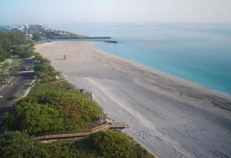 Jupiter is 12 miles north of Palm Beach Shores via I-95 and Rte. 706. Jupiter is one of the few little towns in the region not fronted by an island. Beaches here are part of the mainland, and Route A1A runs for almost 4 miles along the beachfront dunes and beautiful estates.