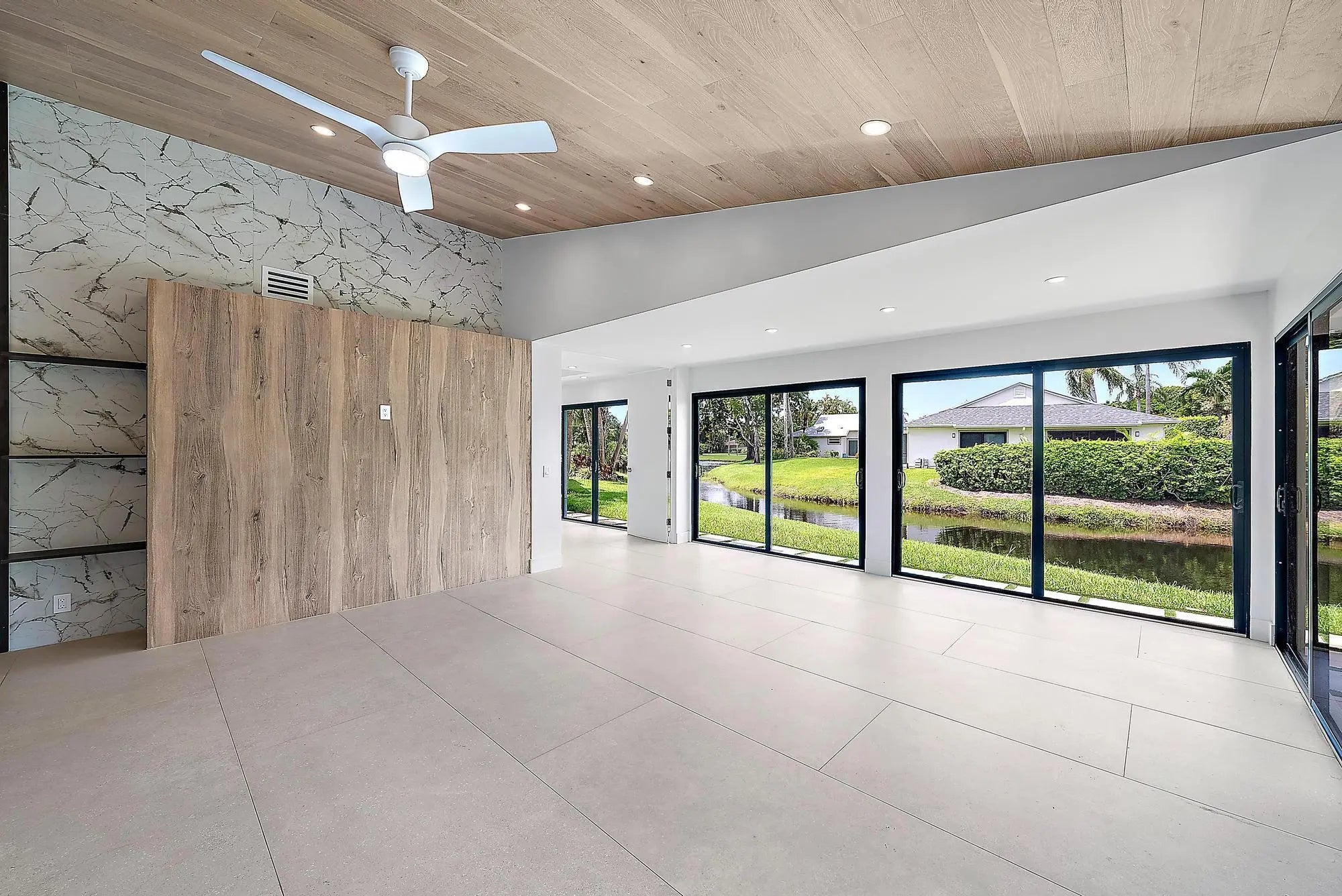 This home has been fully remodeled with Italian porcelain tile throughout. There are designer bathrooms, custom lighting, and Impact windows and sliding glass doors for peace of mind. An open floor plan with Vaulted ceilings and gourmet kitchen featuring a large center island, high-end European cabinetry, and premium appliances such as a gas stove and Miele refrigerator. The home boasts panoramic lake and Fazio-designed golf courses. With a 24 Hour manned gates for entry to country club community, Eastpointe offers a brand-new clubhouse, resort-style pool, restaurant, fitness center. Enjoy breathtaking views of a serene lake, perfectly capturing the essence of South Florida's sunshine. Nestled within the prestigious Eastpointe Country Club, this hidden gem offers unparalleled amenities. Tennis courts, pickleball courts, and two (2) Championship golf courses.
