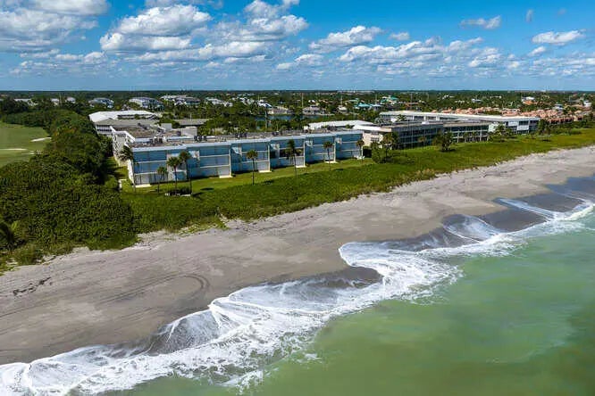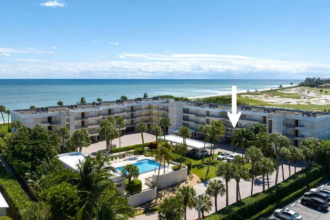 Just steps from the sand, this beautifully updated 2 bed + office/den or additional bedroom, 2 bath condo located in the coveted Royal Homestead building is ready for you, complete with 2 garage parking spaces. This light-filled, coastal inspired residence features 10' ceilings, newly updated wood flooring, fresh interior paint, and a thoughtfully designed layout perfect for both everyday living and entertaining. The spacious living area showcases a custom wet bar with shaker-style cabinetry and wine refrigerator, creating an inviting space to host guests. Enjoy ocean breezes from both the primary and main living area balconies, bringing the best of Juno Beach living right to your doorstep. Both en-suite bedrooms offer newly built-out walk-in closets and beautifully renovated bathrooms. Impact sliding doors and roll-down shutters provide full hurricane protection. Additional features include a private storage closet, heated community pool, clubhouse, guest cottage for owner use and private gated beach access. The building also features a new roof adding additional peace of mind for residents. This exclusive 55+ beachfront community is ideally located directly next to the world-famous Seminole Golf Club and just minutes from the dining, shopping, and lifestyle attractions of Jupiter and Palm Beach Gardens. Bring your beach chair and experience the relaxed elegance of true oceanfront living in one of Juno Beach's most desirable communities!