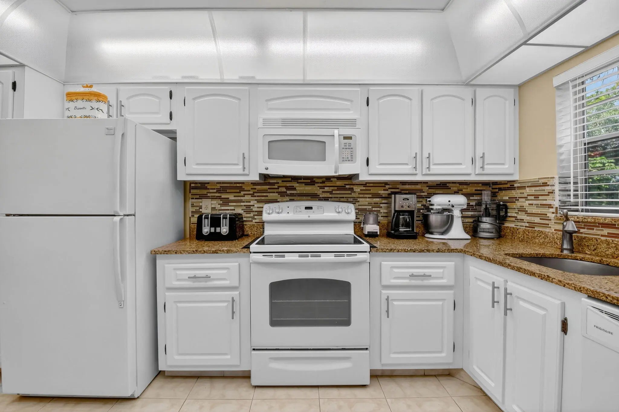 This seller is packed and ready to head up North. Step into this beautifully updated 2 BR, 2 BA condo featuring gleaming while tile floors and stylish laminate in both bedrooms. Natural light and fresh air flow effortlessly through sliding glass doors in the kitchen, living room and primary bedroom. The split bedroom layout offers privacy for guests, with updated bathrooms. New electrical panel, GFI outlets in kitchen and guest bathroom. Stay cool with a newer AC unit (2022). Enjoy the convenience of a well maintained home that is truly move in ready.