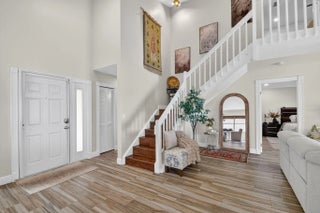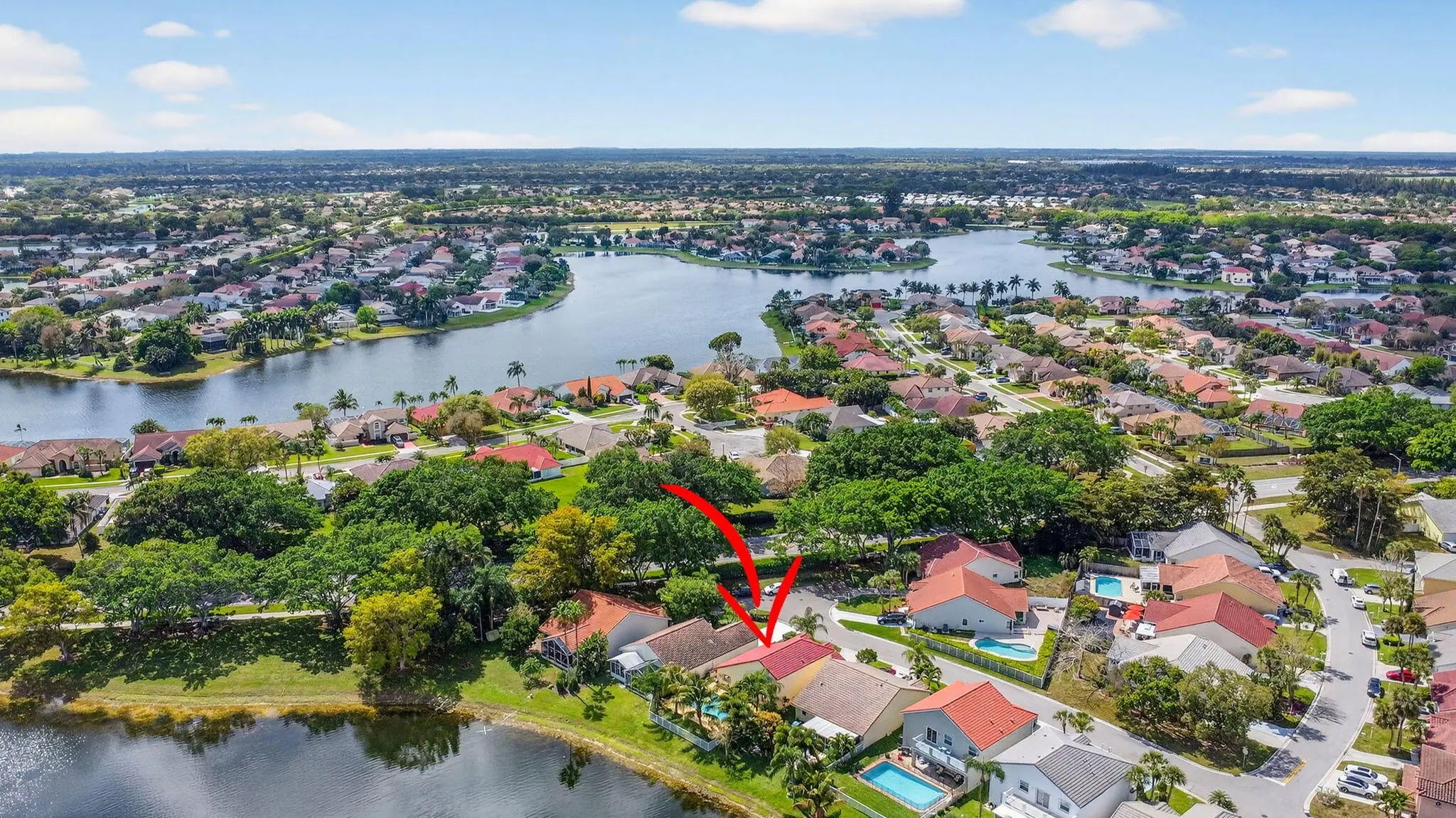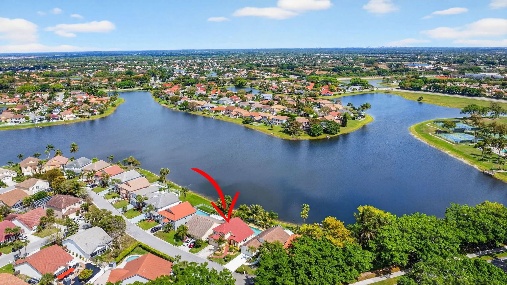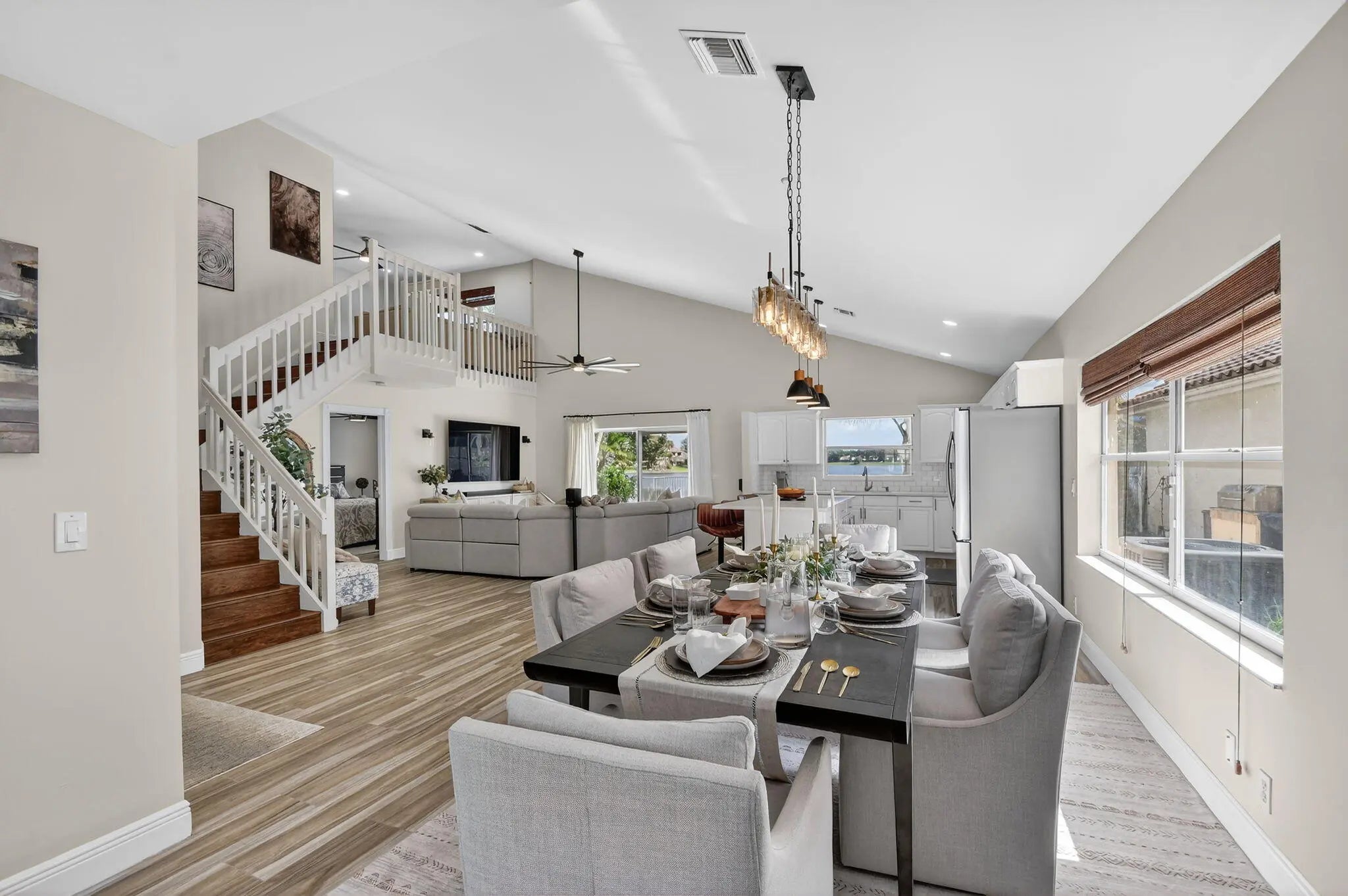 Elegant lakefront pool home offers 3BR/2.5BA plus a versatile loft & spectacular water views. Soaring vaulted ceilings & a light-filled, open layout create a refined yet inviting atmosphere. The spacious living and dining areas are ideal for entertaining, while the first-floor primary suite provides comfort and privacy. A beautifully appointed gourmet kitchen features a large island & stainless steel appliances, tastefully upgraded bathrooms with luxurious finishes. Step outside to your private pool overlooking the lake, perfect for relaxing or hosting guests. Updates include a 2016 roof & 2021 AC. Located in the highly sought after Lake Charleston community with parks, pool, pickleball, low HOA, & top-rated schools near shopping, dining, & major highways. Don't miss this RARE Opportunity
