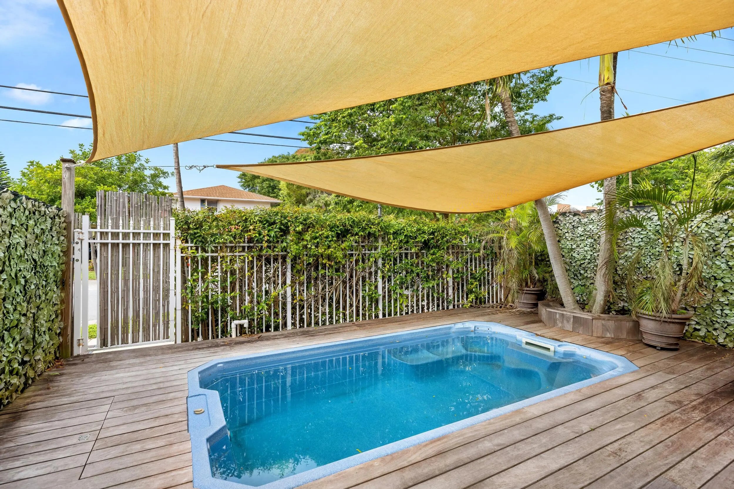 Live effortlessly in this stylish, updated Lake Ridge corner townhome, Unit #1, designed for modern professionals who crave both comfort and convenience. This beautiful two-story home features soaring ceilings, an open-flow living, dining, and eat-in kitchen, plus double French doors leading to a private fenced entertainment patio with a plunge pool and Ipe wood deck —perfect for hosting or unwinding. Retreat to the spacious main suite with vaulted ceilings, a spa-like bath, and a walk-in closet. Enjoy guest rooms, updated baths, a two-car garage, impact windows-doors, and modern appliances —all in a boutique community near the beach, Galleria, and top dining spots