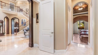 Experience refined luxury living in the heart of Boca Raton's coveted Millionaire's Mile at Azura on the Jog Road corridor. Ideally located near Boca's top-rated private and public schools, this exceptional residence is tucked away on a quiet cul-de-sac with no rear neighbors, offering a rare sense of privacy in a highly sought-after setting. An extended driveway leads to a three-car garage and welcomes you into an impressive interior. The thoughtfully designed floor plan features five bedrooms, four and one-half baths, a private office, and a spacious loft. Soaring 23-foot ceilings enhance the home's grand, open feel. The primary suite is conveniently located on the main level and includes an additional sitting area, perfect for a home office or workout space. The primary bath offers