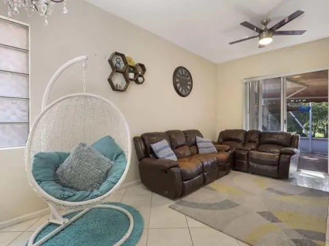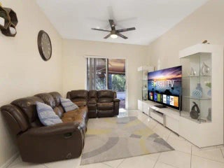 Brand New AC 2026. New Toilet in Master Bath, New Vanity in 2nd Bath. Nicely maintained 3-bedroom, 2-bath single-family home. The primary suite features a walk-in closet, dual sinks, and a split layout for added privacy. Enjoy high ceilings that create an open and airy feel throughout. The home offers a double-door entrance, a spacious kitchen with an island and ample cabinetry, separate living and dining areas, and a cozy family room. Big screened Patio, new screen. Mango, Jackfruit Trees. Additional highlights include a 2-car garage, proximity to a nearby high school, and access to a large community pool. Conveniently close to shopping, dining, and entertainment. Highest and Best Offer.
