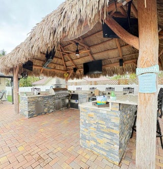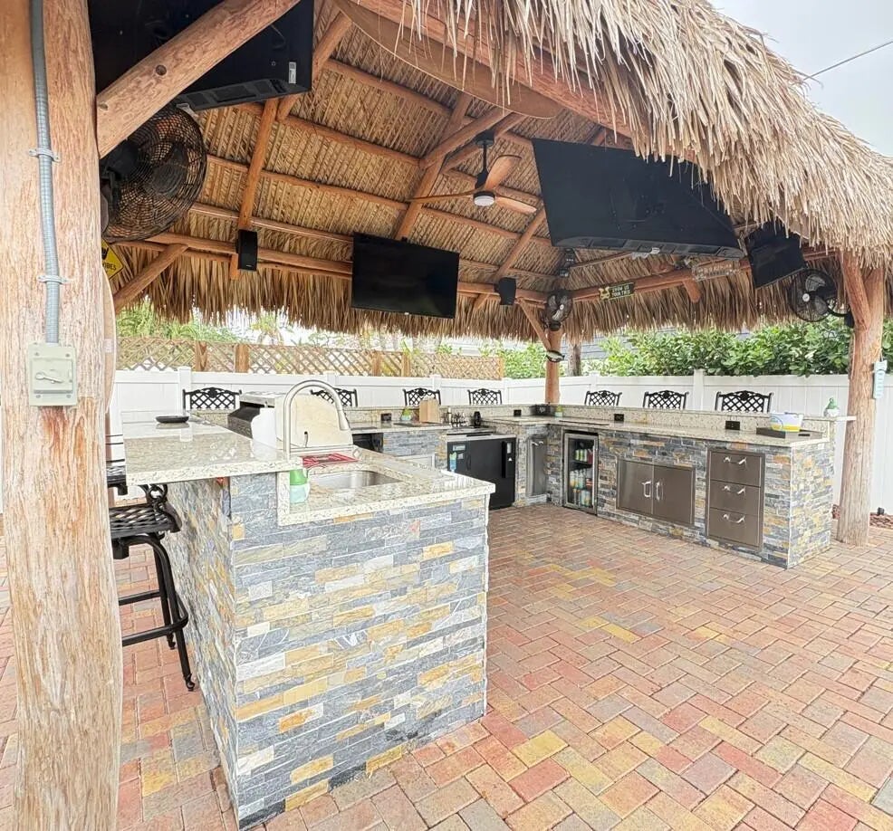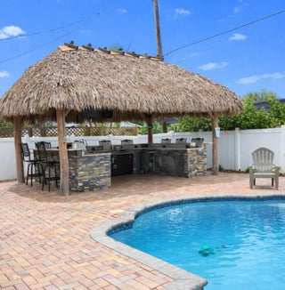 Welcome to your private South Florida retreat where luxury living meets resort-style entertaining. This stunning home features a bright open floor plan with soaring vaulted ceilings, crown molding, wood plank tile, plantation shutters, and a desirable split-bedroom layout designed for both comfort and style. The spacious chef's kitchen anchors the home with an oversized island, abundant cabinetry, and seamless flow into the dining and living areas—perfect for gatherings. Step outside and experience the true showpiece of the property: an incredible backyard built for entertaining.Enjoy the resort-style salt water pool surrounded by an expansive paver patio and a spectacular tiki hut outdoor kitchen and bar complete with pizza oven, gas BBQ connection, outside OFFICE and seating for guests. The backyard also features turf landscaping, a PVC privacy fence, mosquito repellent system, and a detached shed/office space. Additional highlights include a 2025 A/C, 2026 water heater, 24kw Generac whole-home generator (500 Gallon natural gas tank for BBQ/TIKI Torch and optional for the inside), Tesla charger, Vivint smart home features, Govee lighting, Vivint camera security system, pool ran by full Aqaulink system, and partial impact windows with storm panels. The property also offers a spacious paver driveway and two-car garage. This home delivers the ultimate Florida lifestyle in a NO HOA Neighborhood —perfect for entertaining, relaxing, and enjoying indoor-outdoor living at its finest. Enjoy your showing!